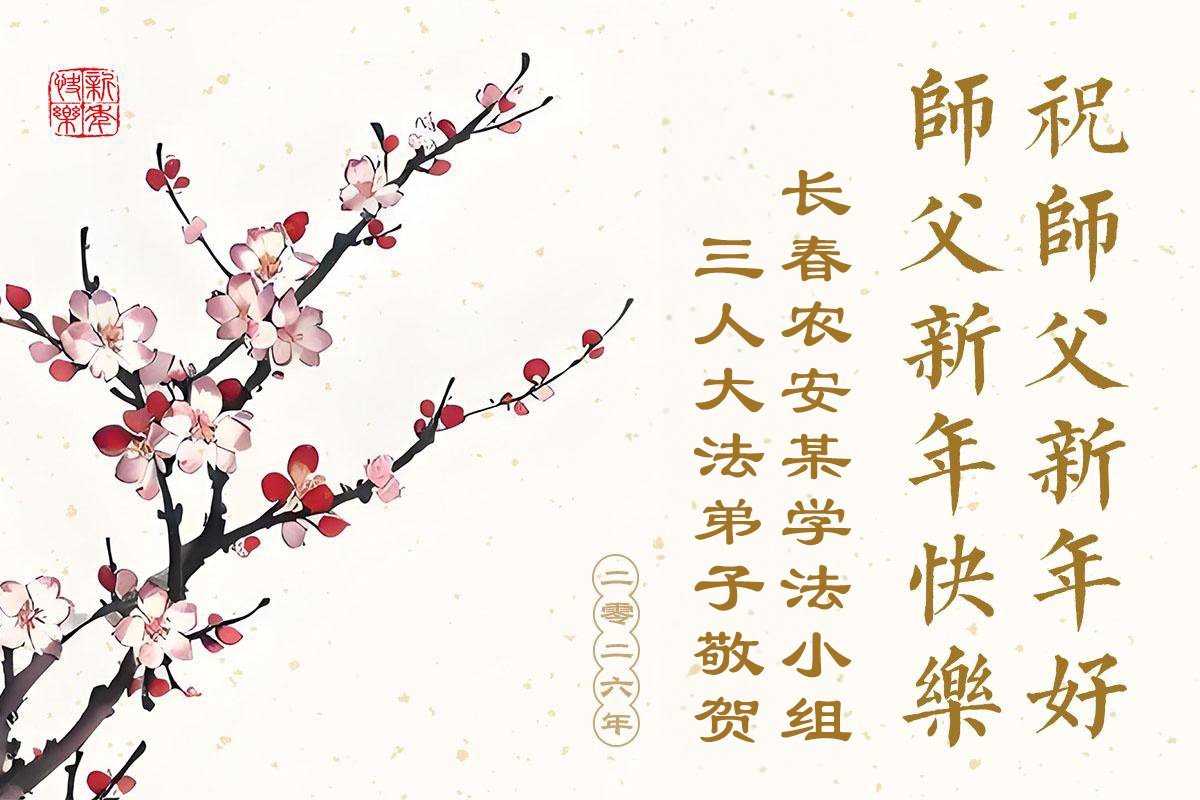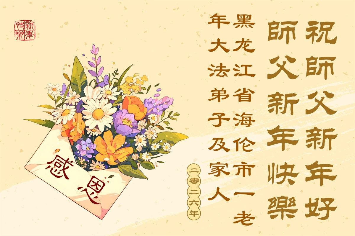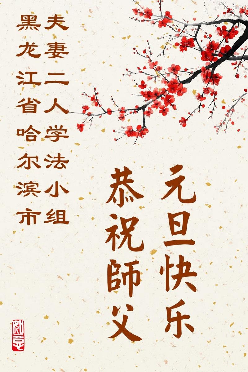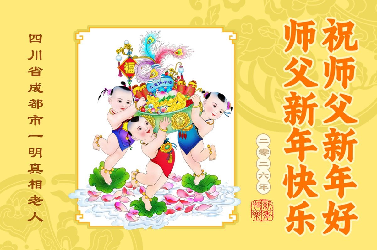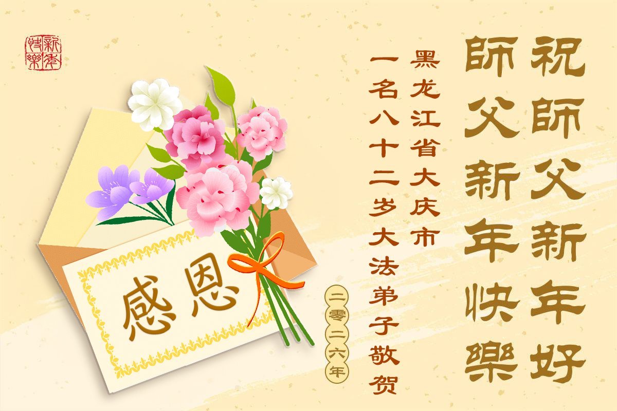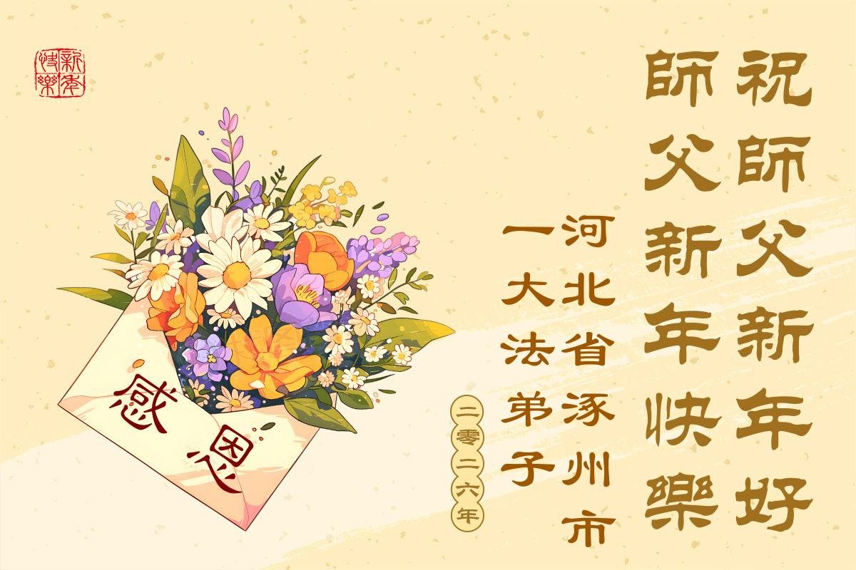 以下是部份来自中国各省、市、地区的学法炼功小组、讲真相小组、资料点大法弟子们敬致师尊的新年贺词贺卡: