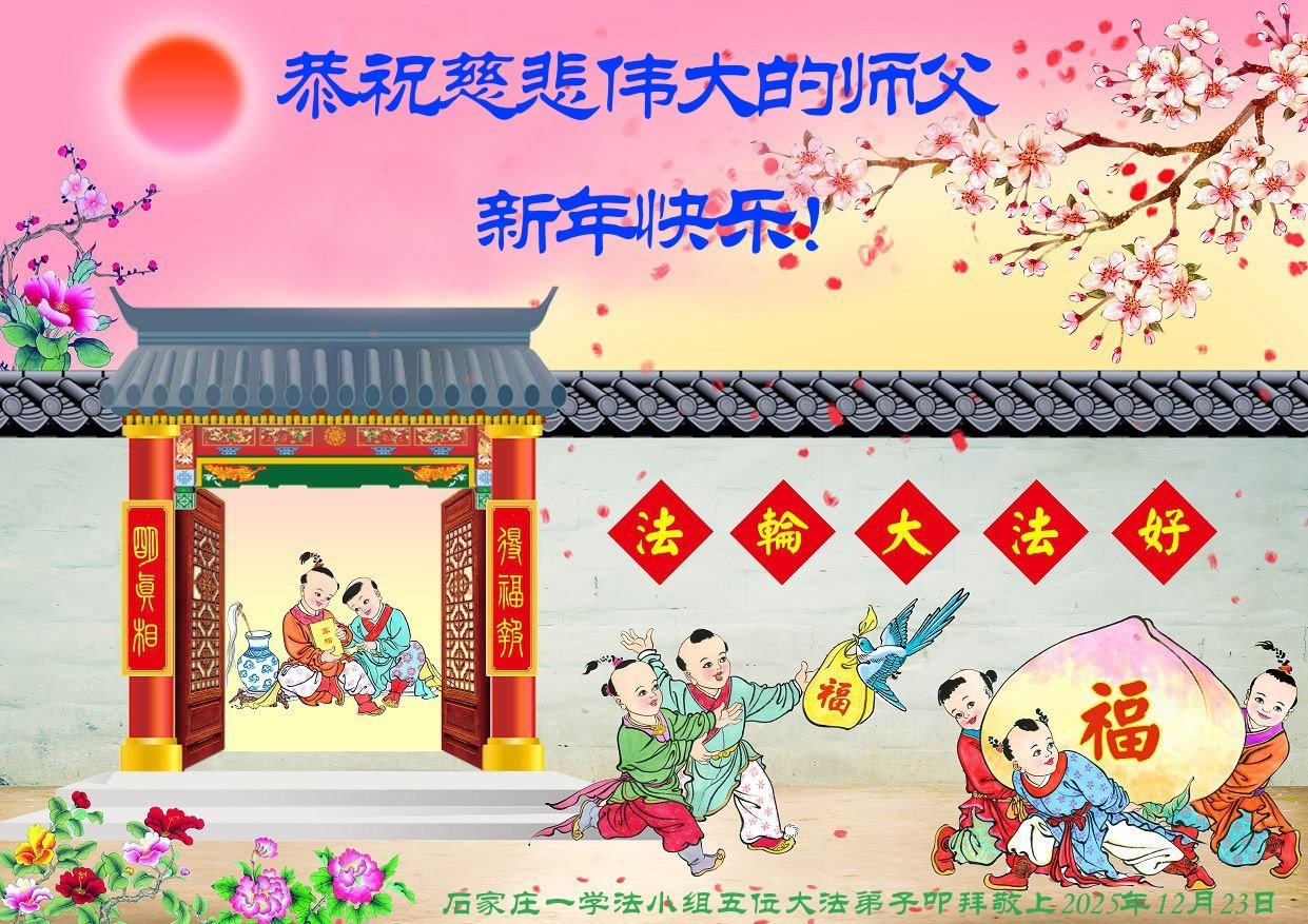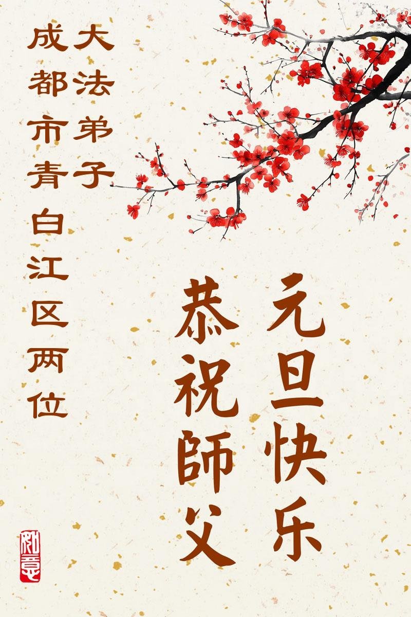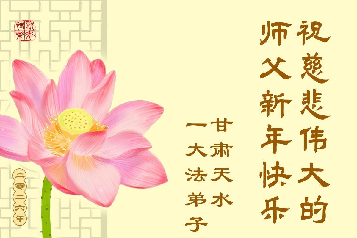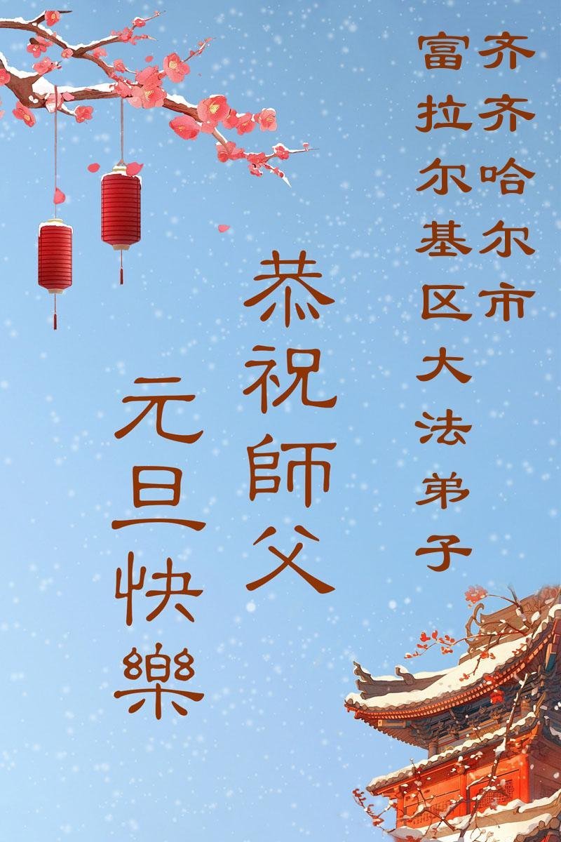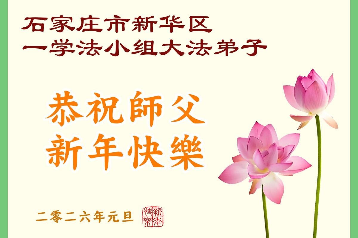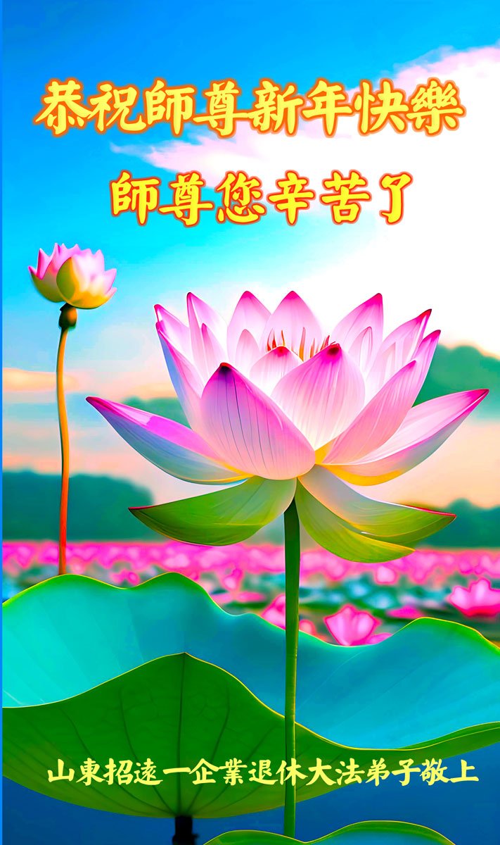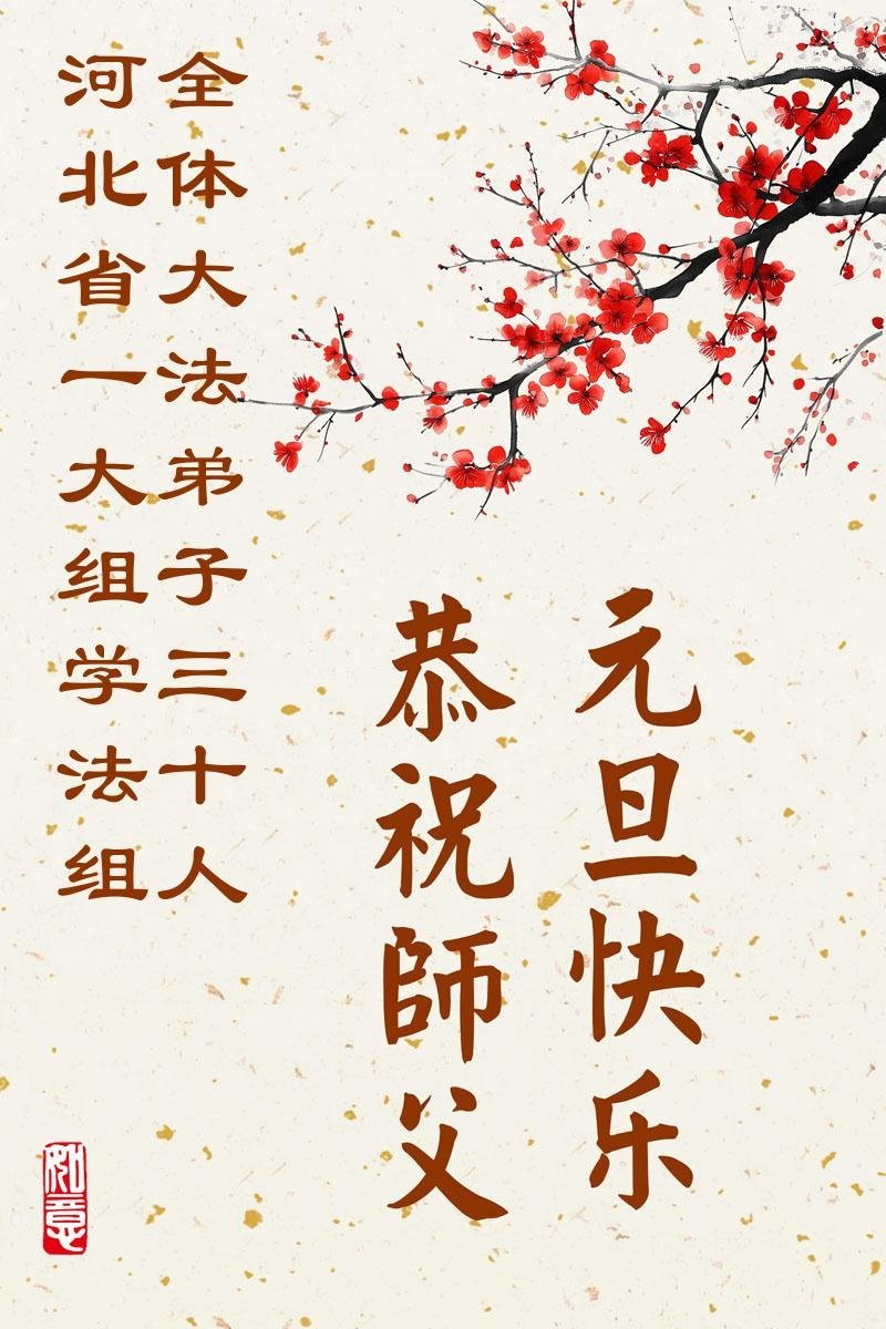 以下是部份来自中国各省、市、地区的学法炼功小组、讲真相小组、资料点大法弟子们敬致师尊的新年贺词贺卡: