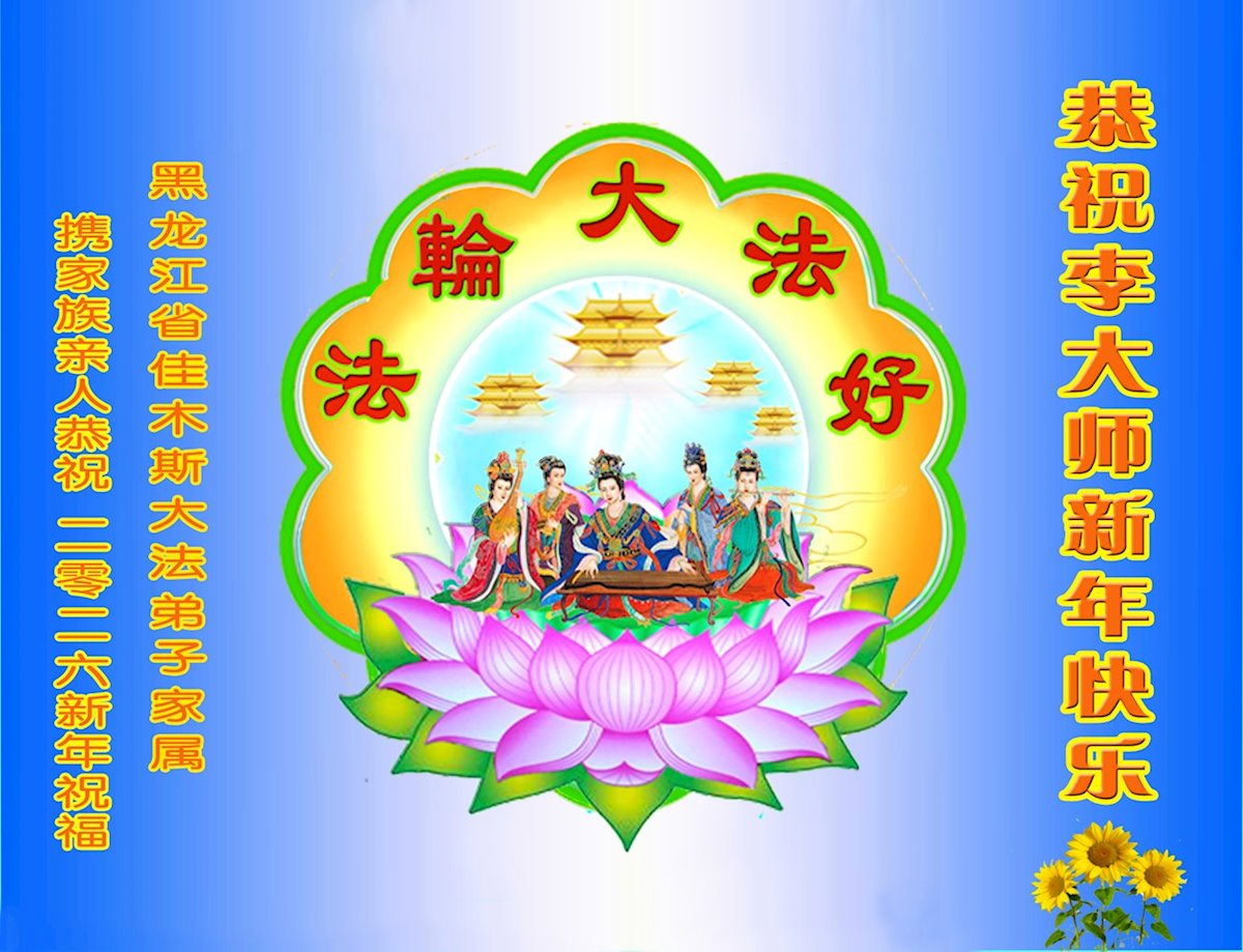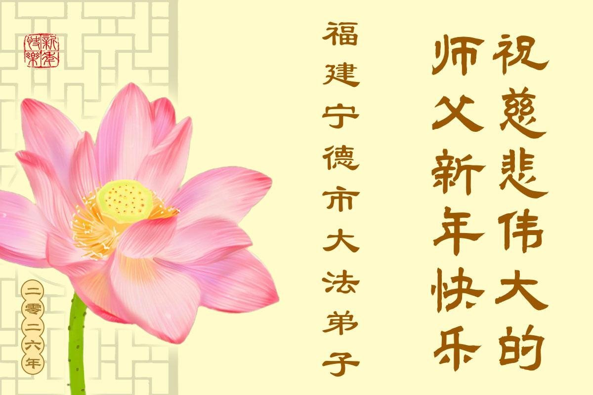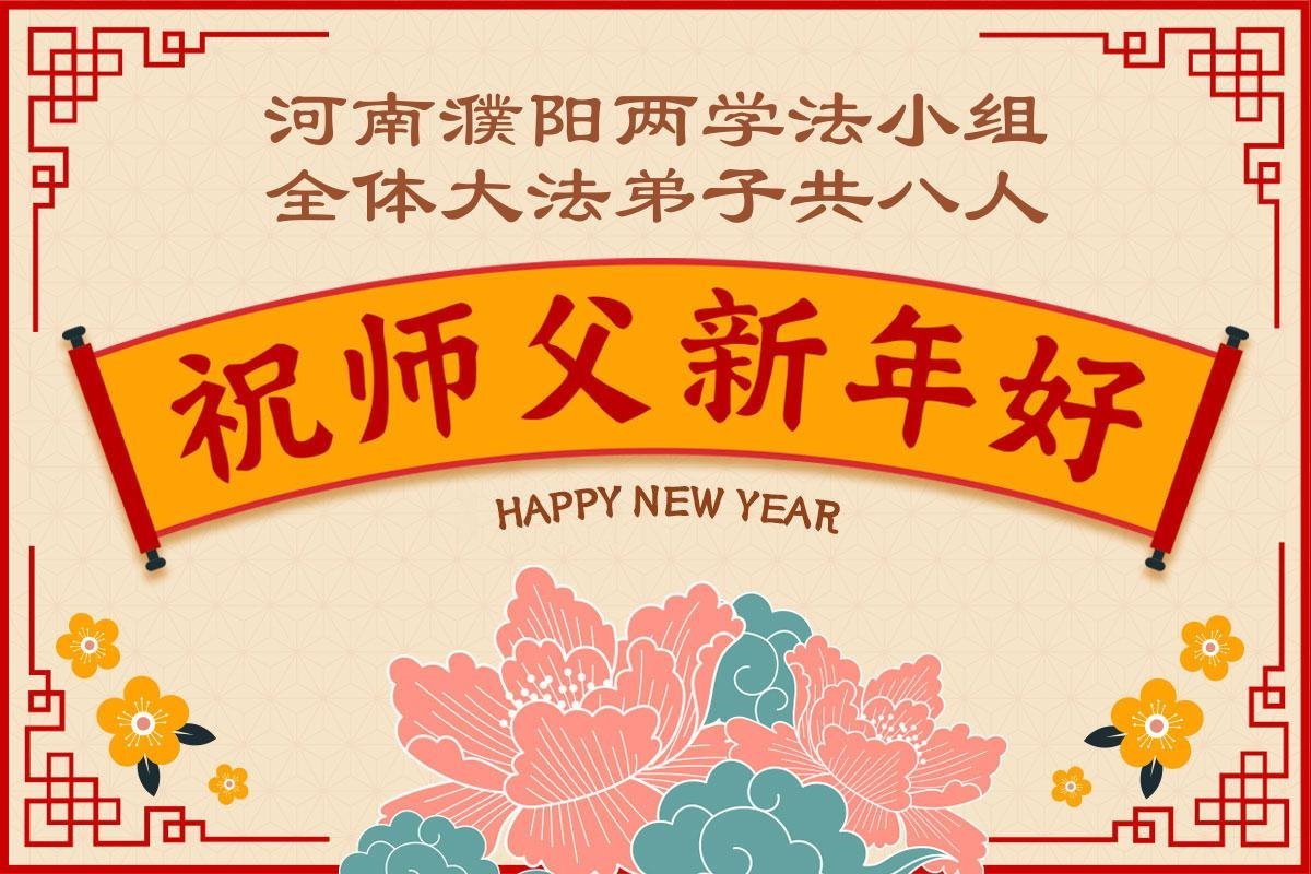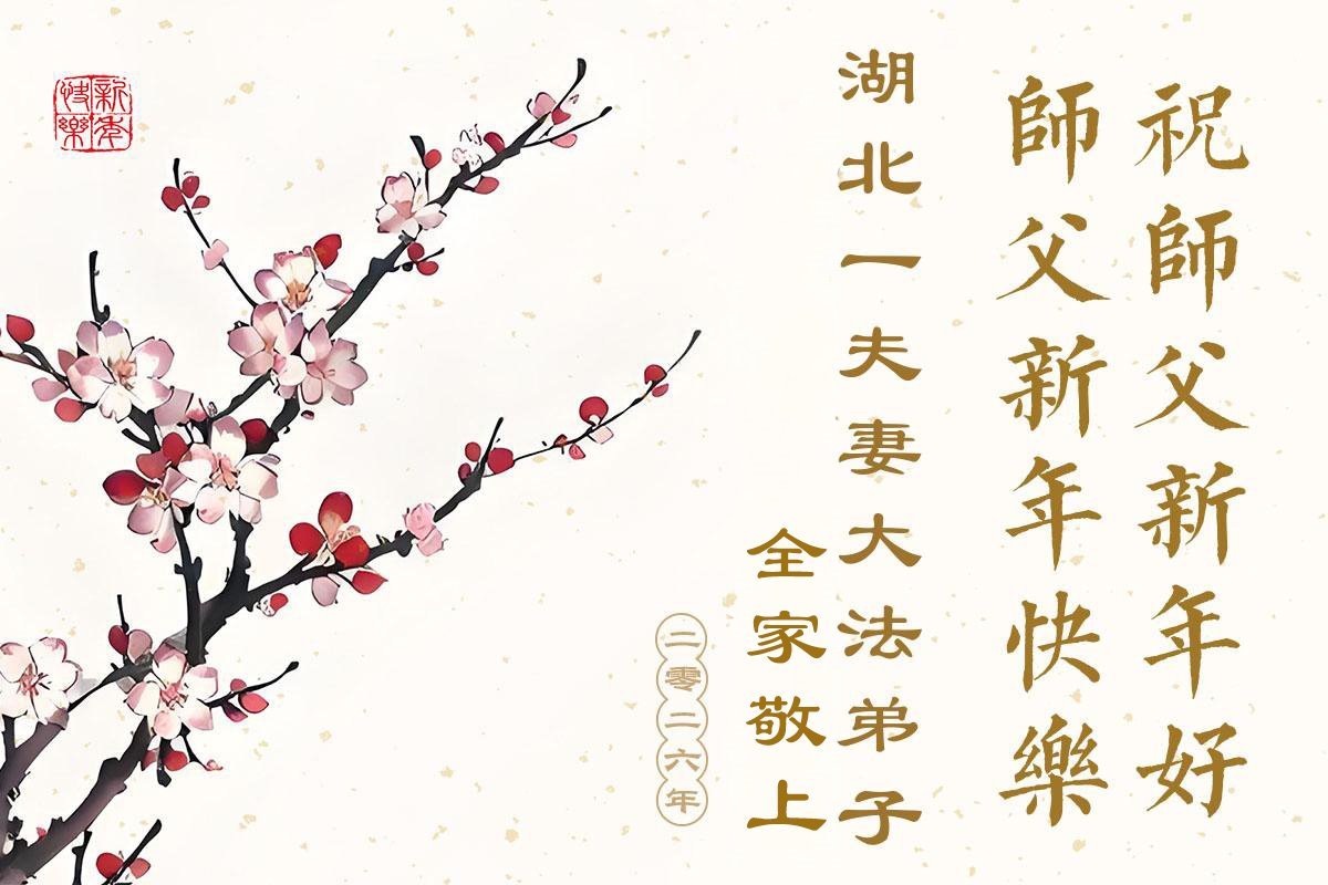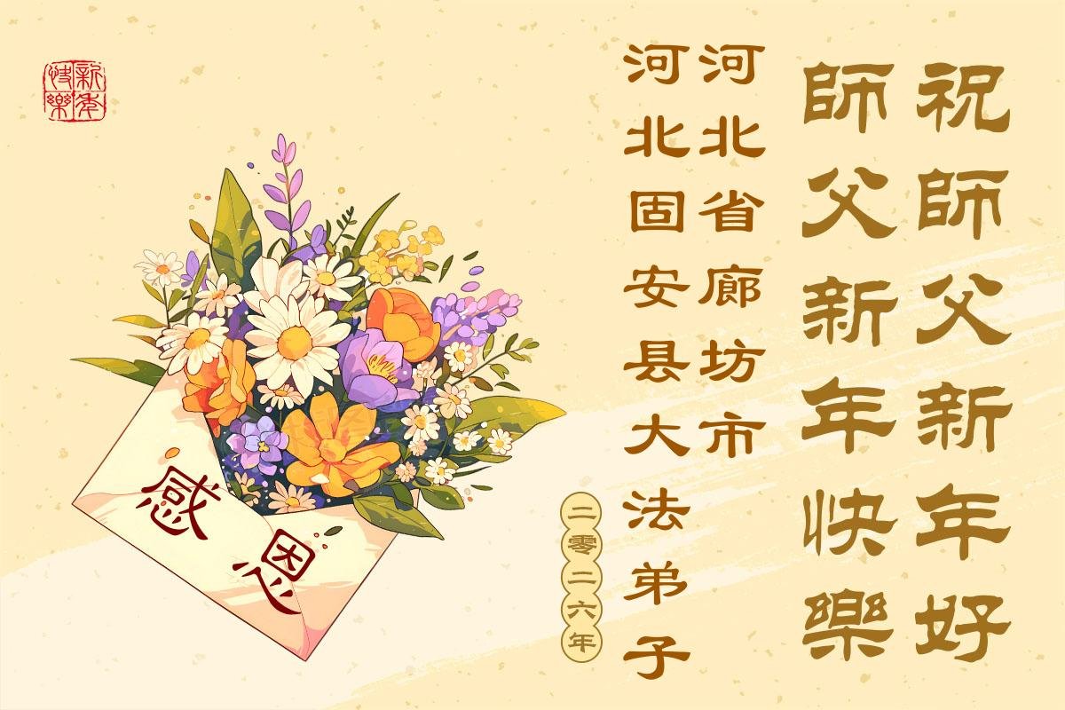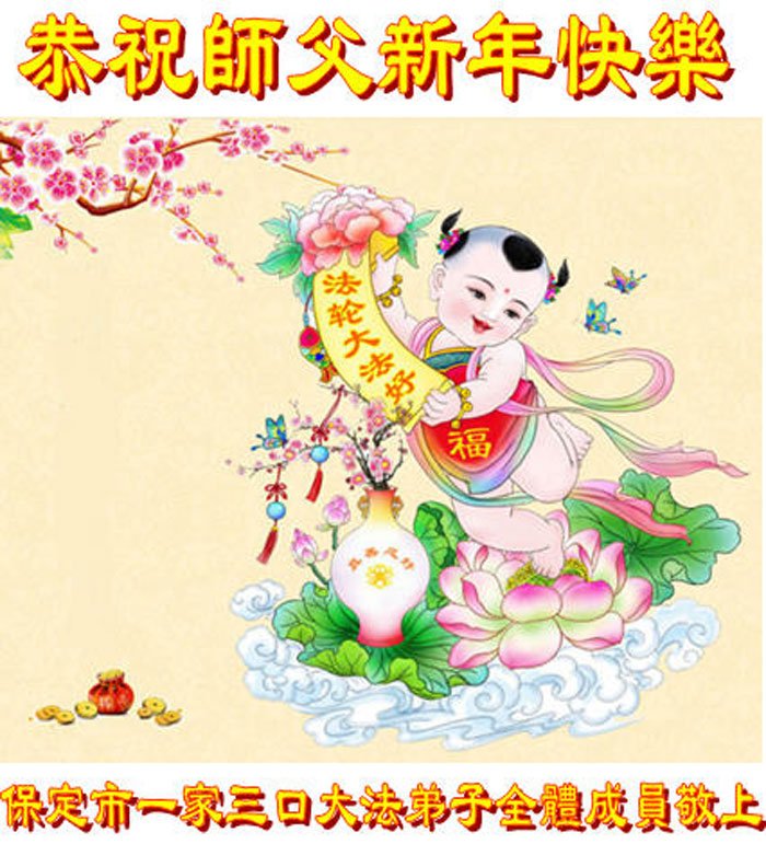 以下是部份来自中国各省、市、地区的学法炼功小组、讲真相小组、资料点大法弟子们敬致师尊的新年贺词贺卡: