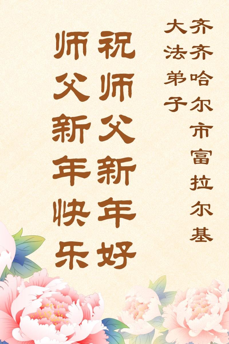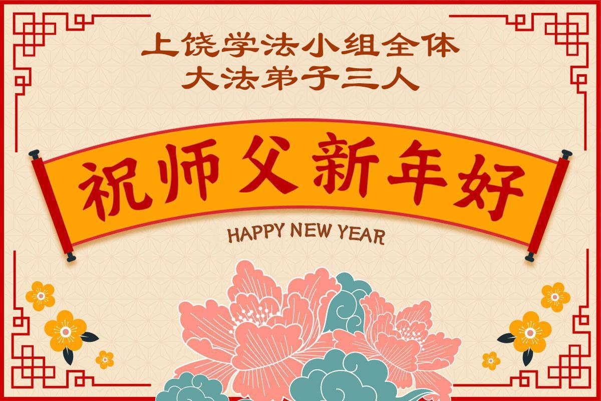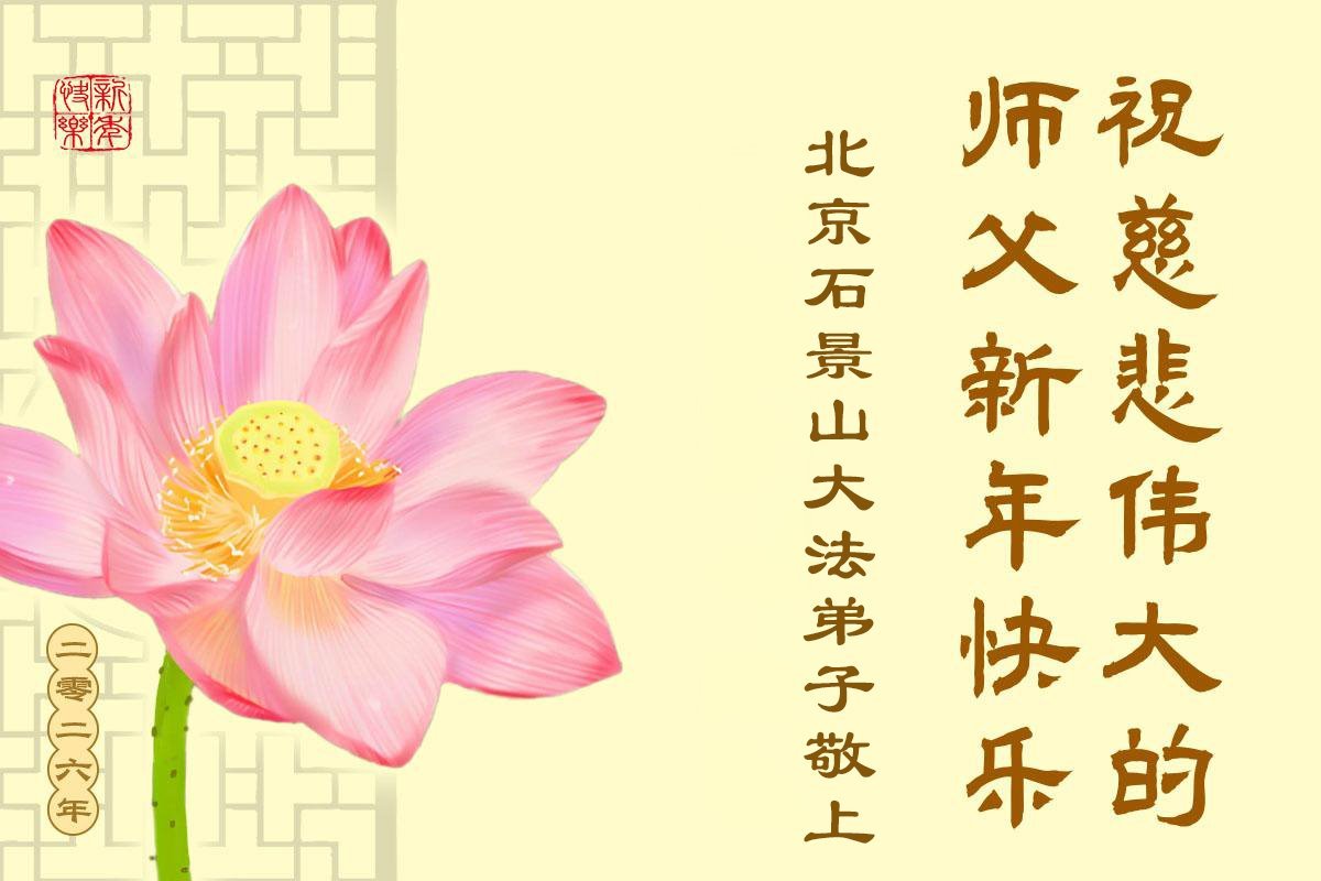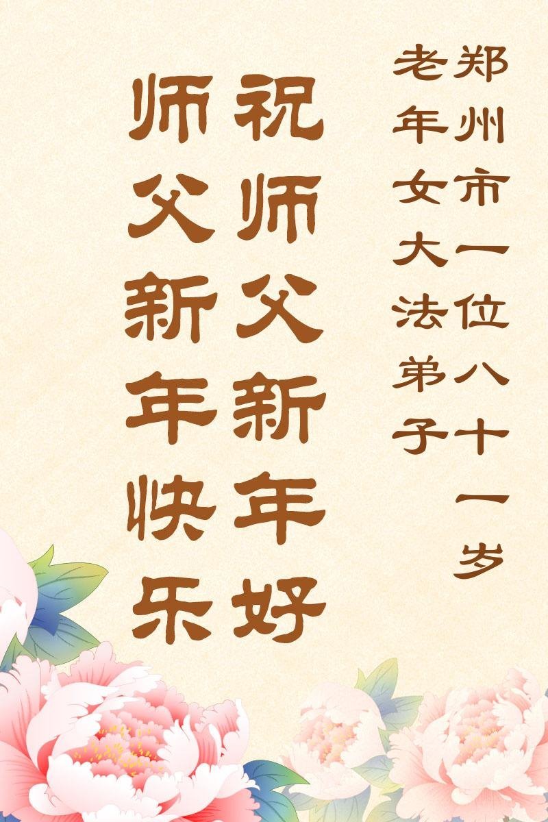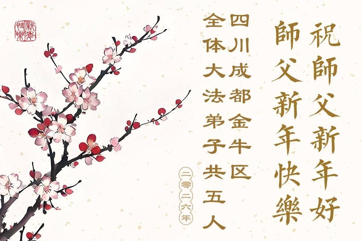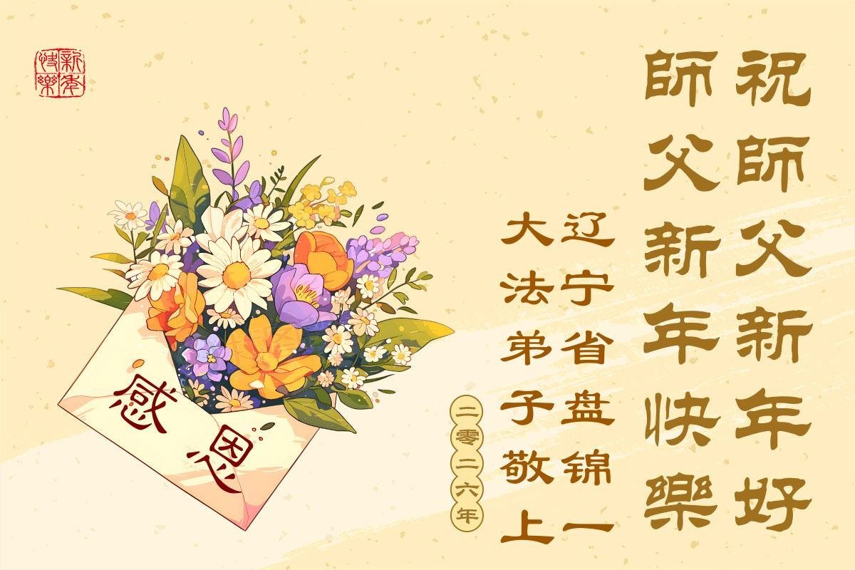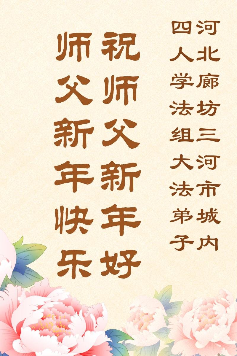 以下是部份来自中国各省、市、地区的学法炼功小组、讲真相小组、资料点大法弟子们敬致师尊的新年贺词贺卡: