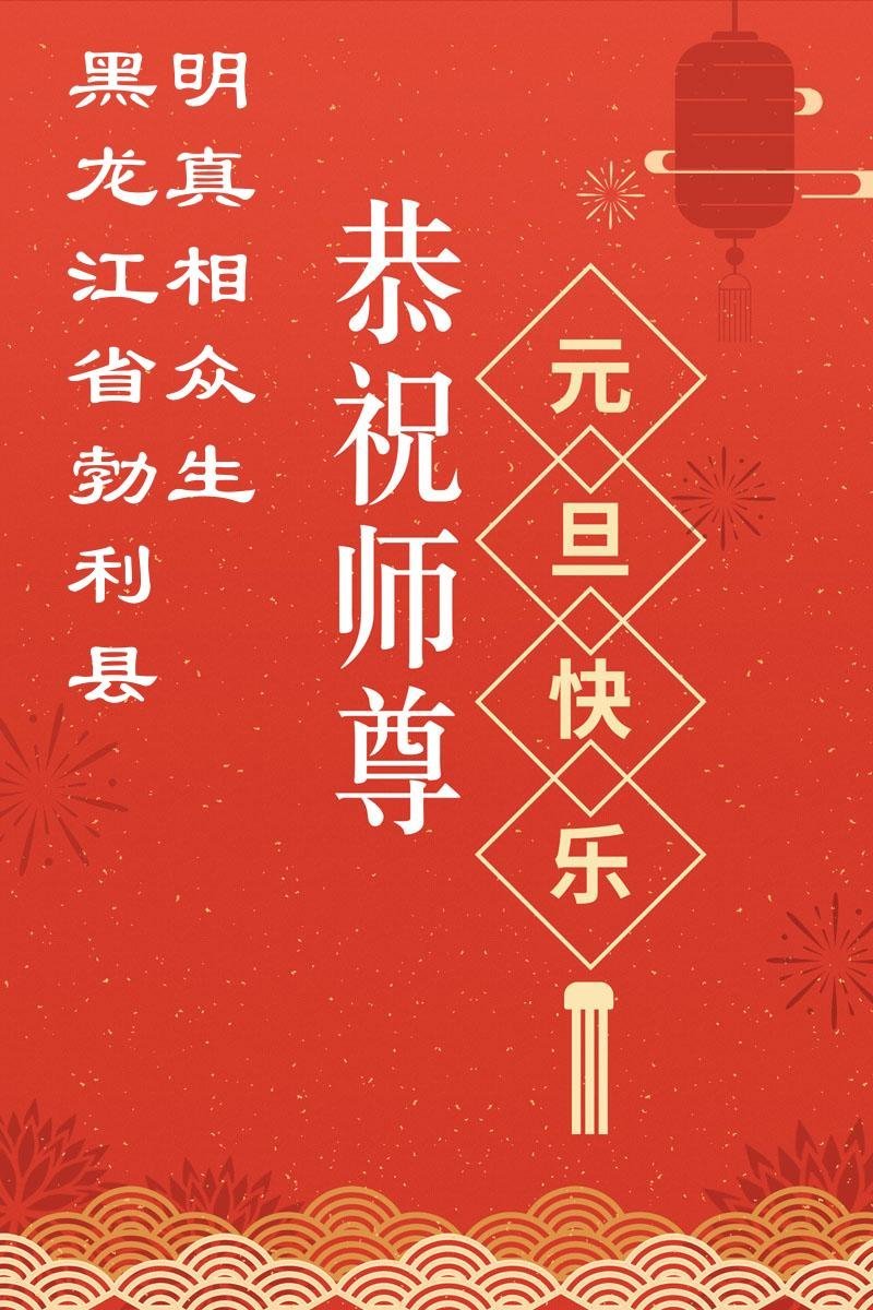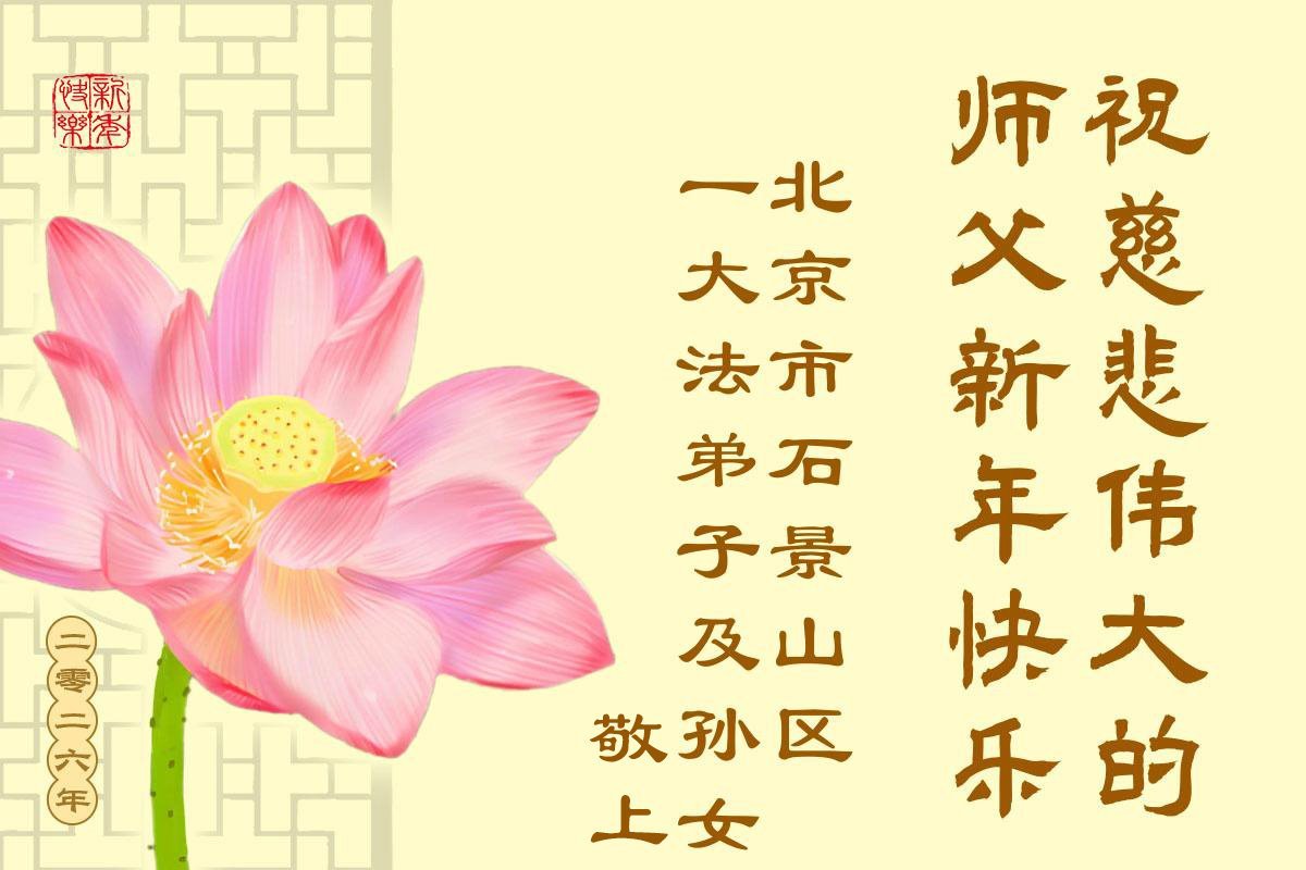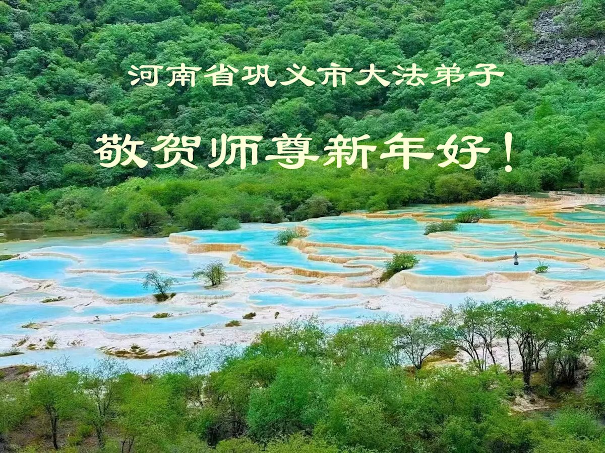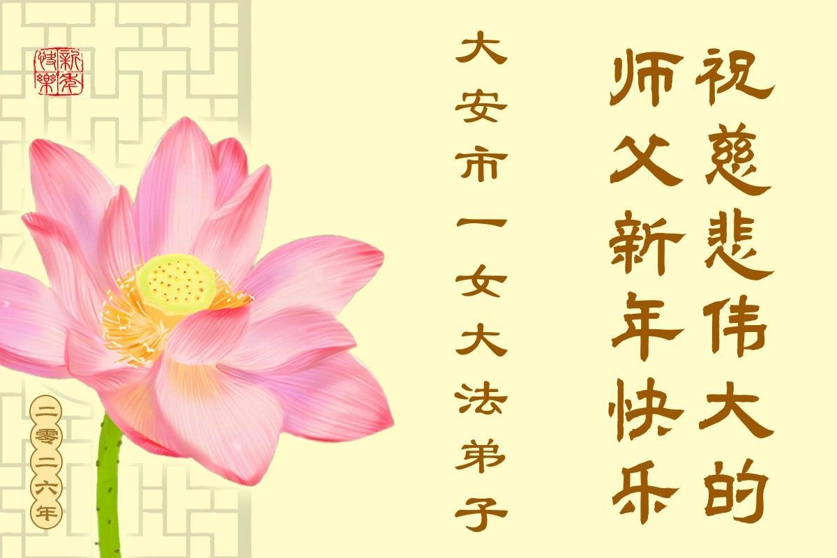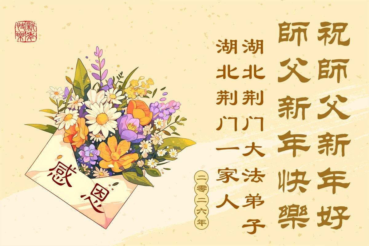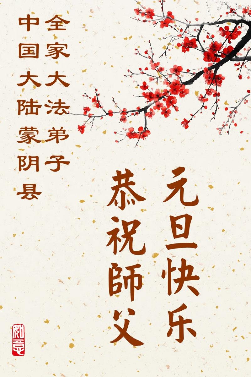 以下是部份来自中国各省、市、地区的学法炼功小组、讲真相小组、资料点大法弟子们敬致师尊的新年贺词贺卡: