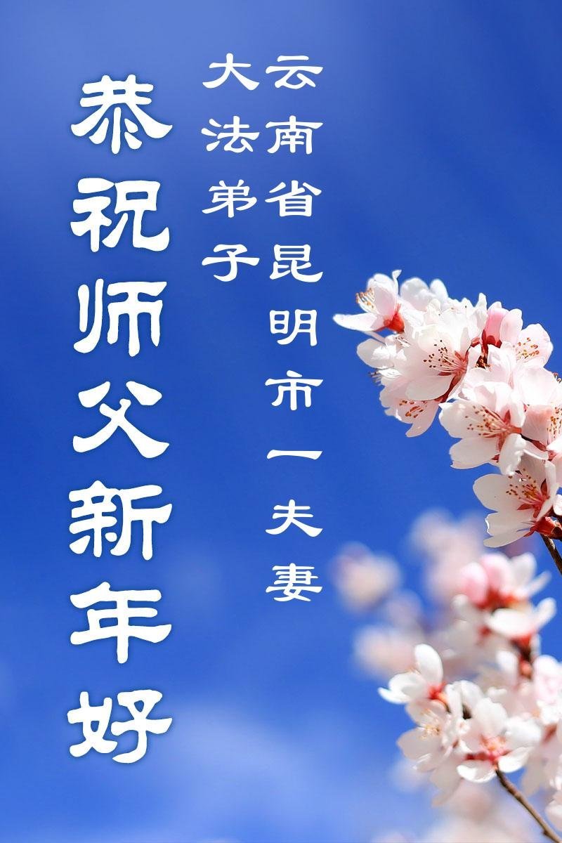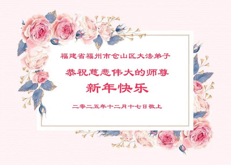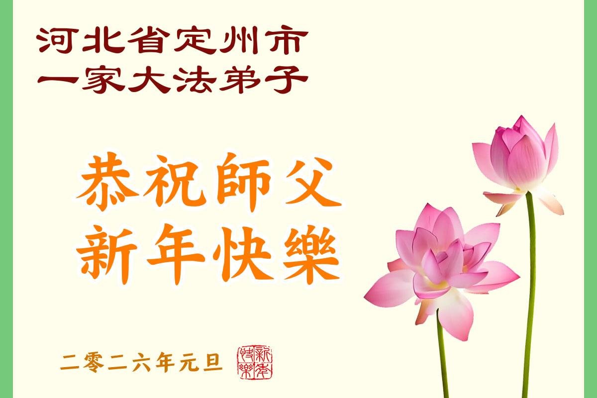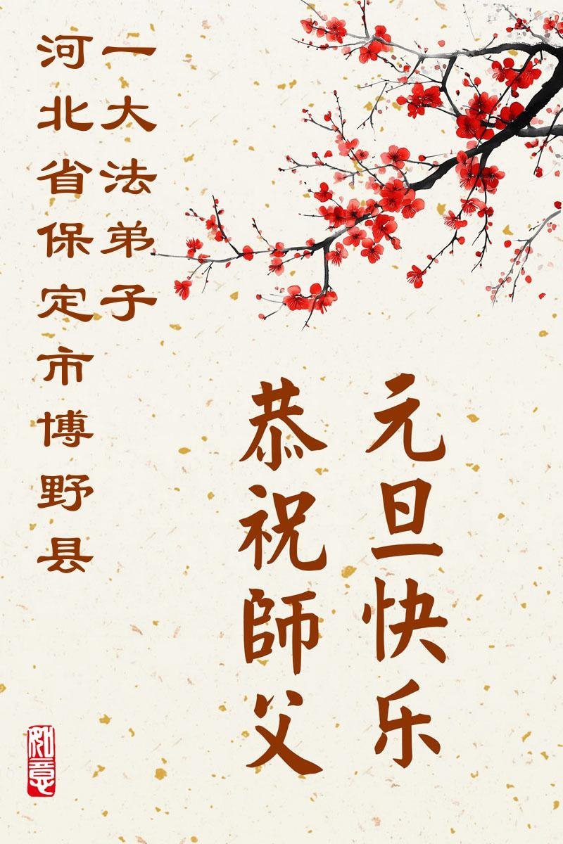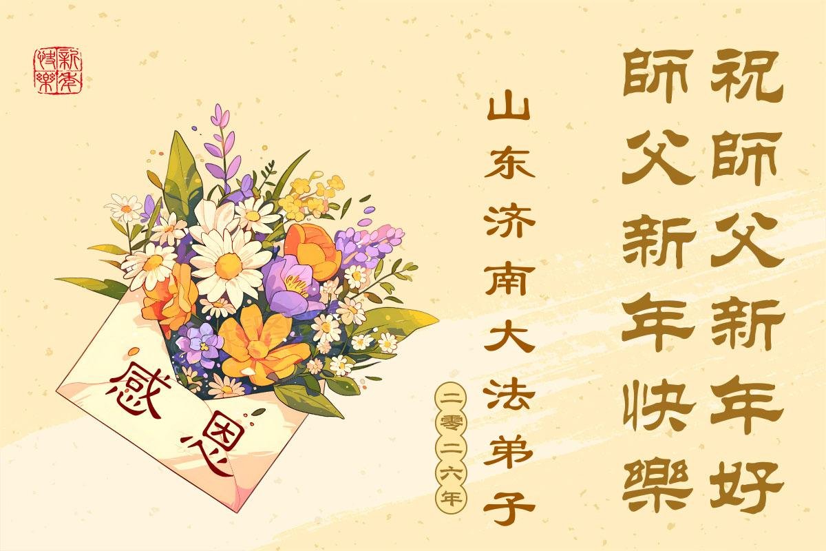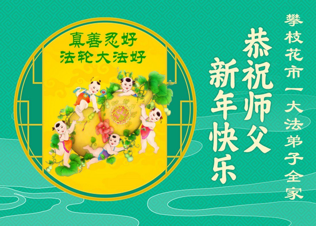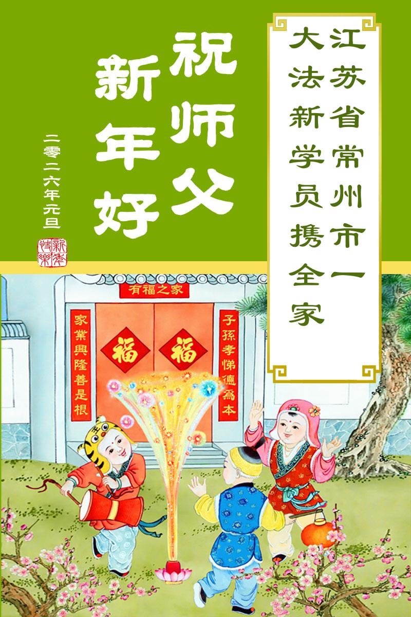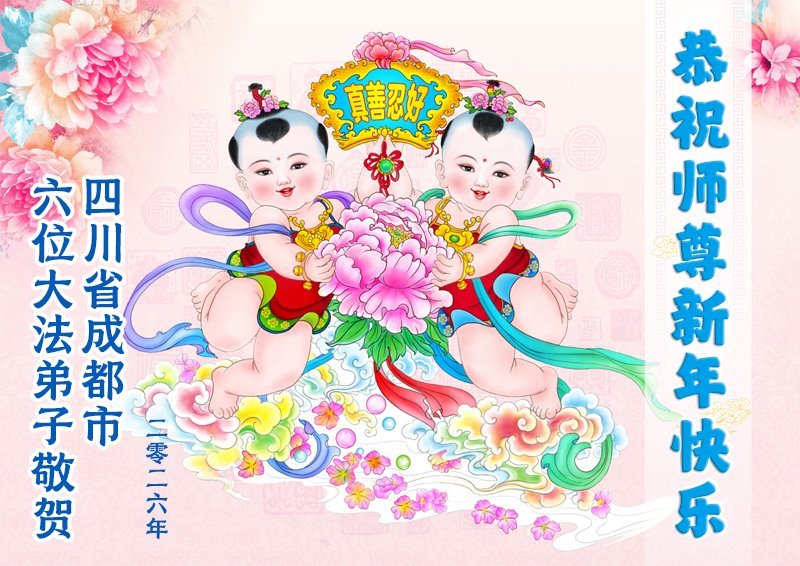 以下是部份来自中国各省、市、地区的学法炼功小组、讲真相小组、资料点大法弟子们敬致师尊的新年贺词贺卡: