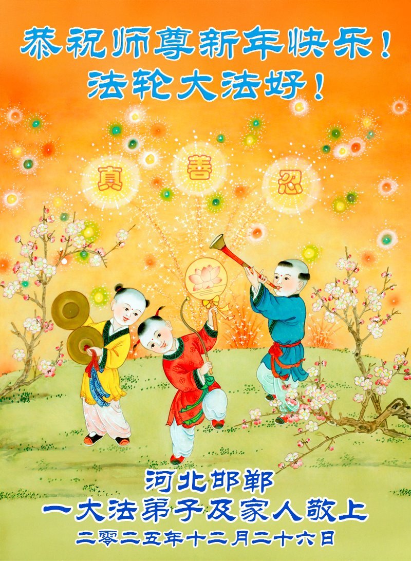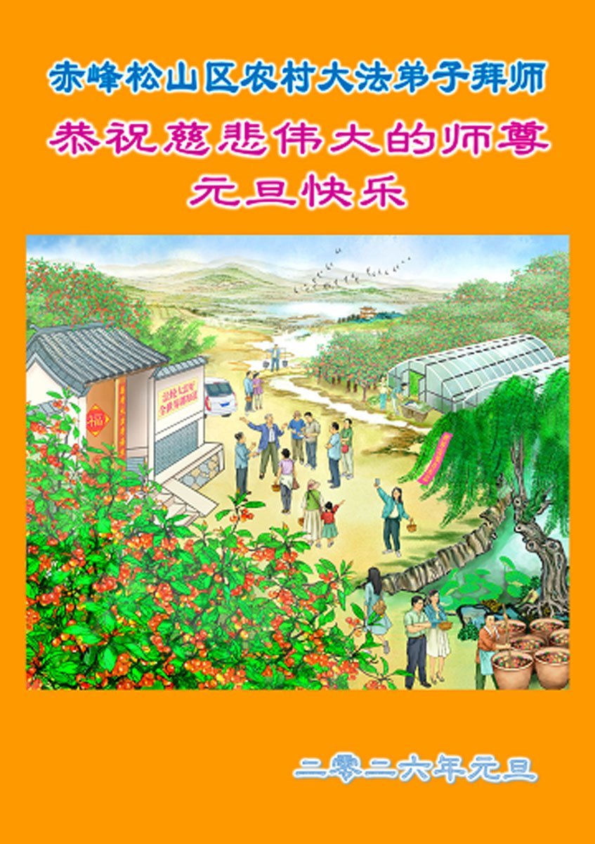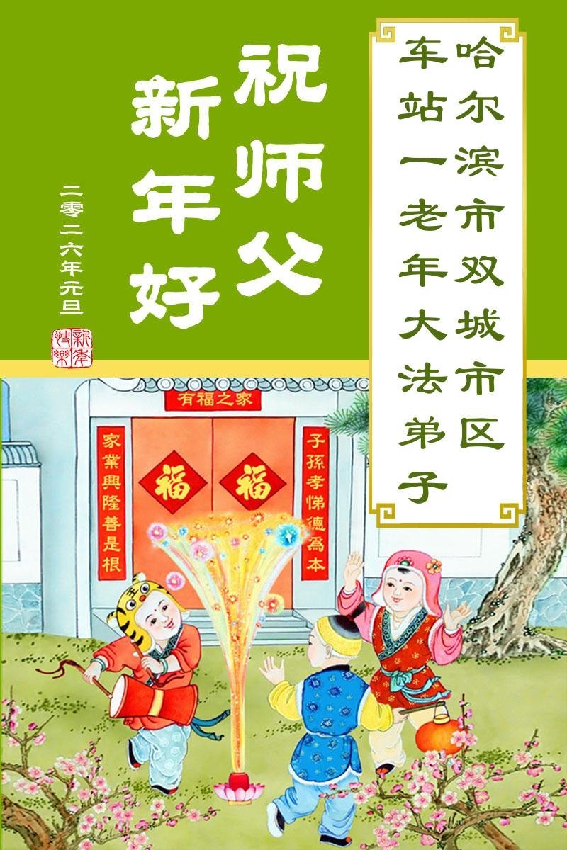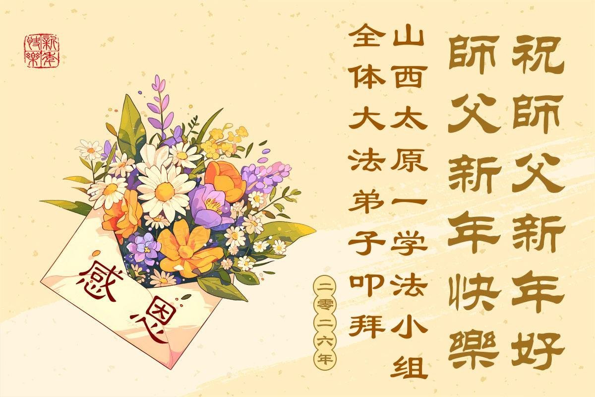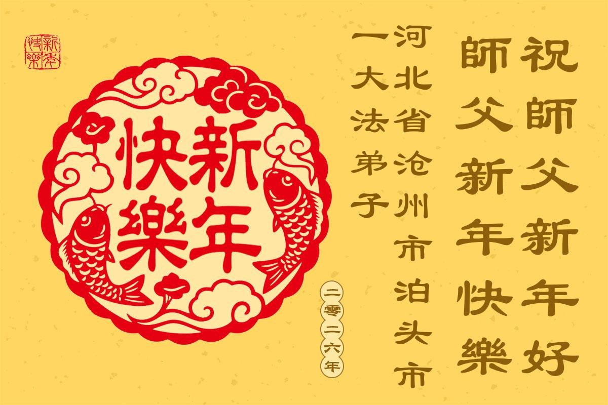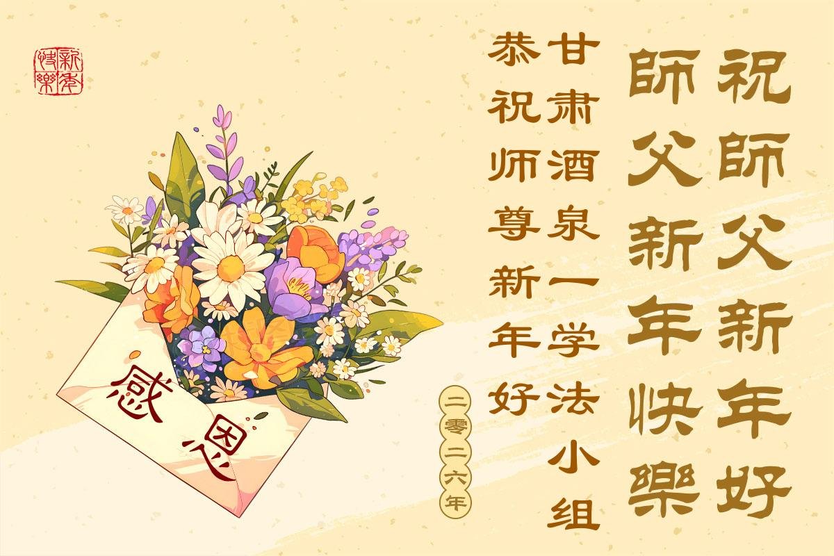 以下是部份来自中国各省、市、地区的学法炼功小组、讲真相小组、资料点大法弟子们敬致师尊的新年贺词贺卡: