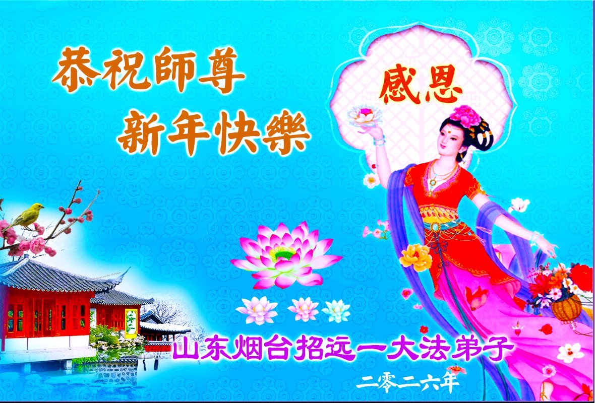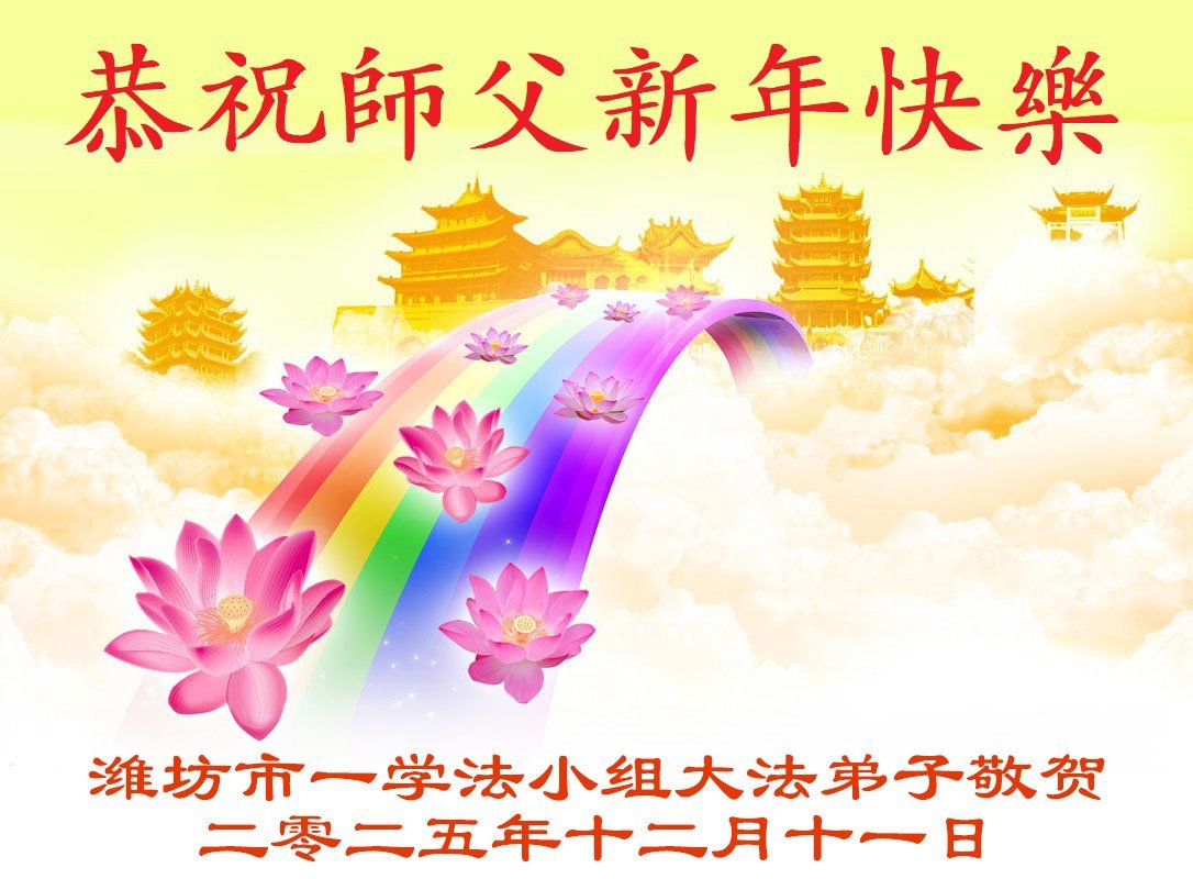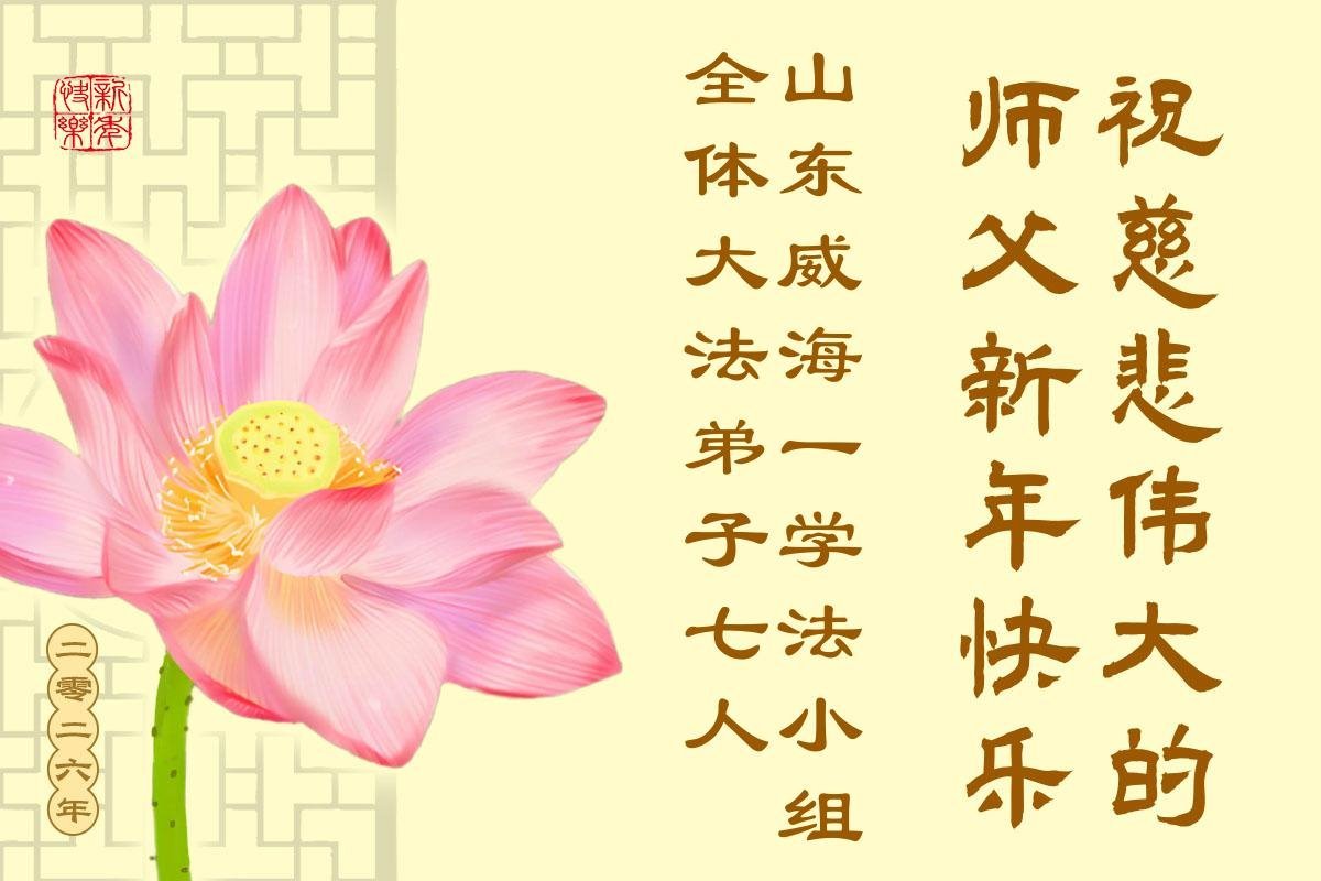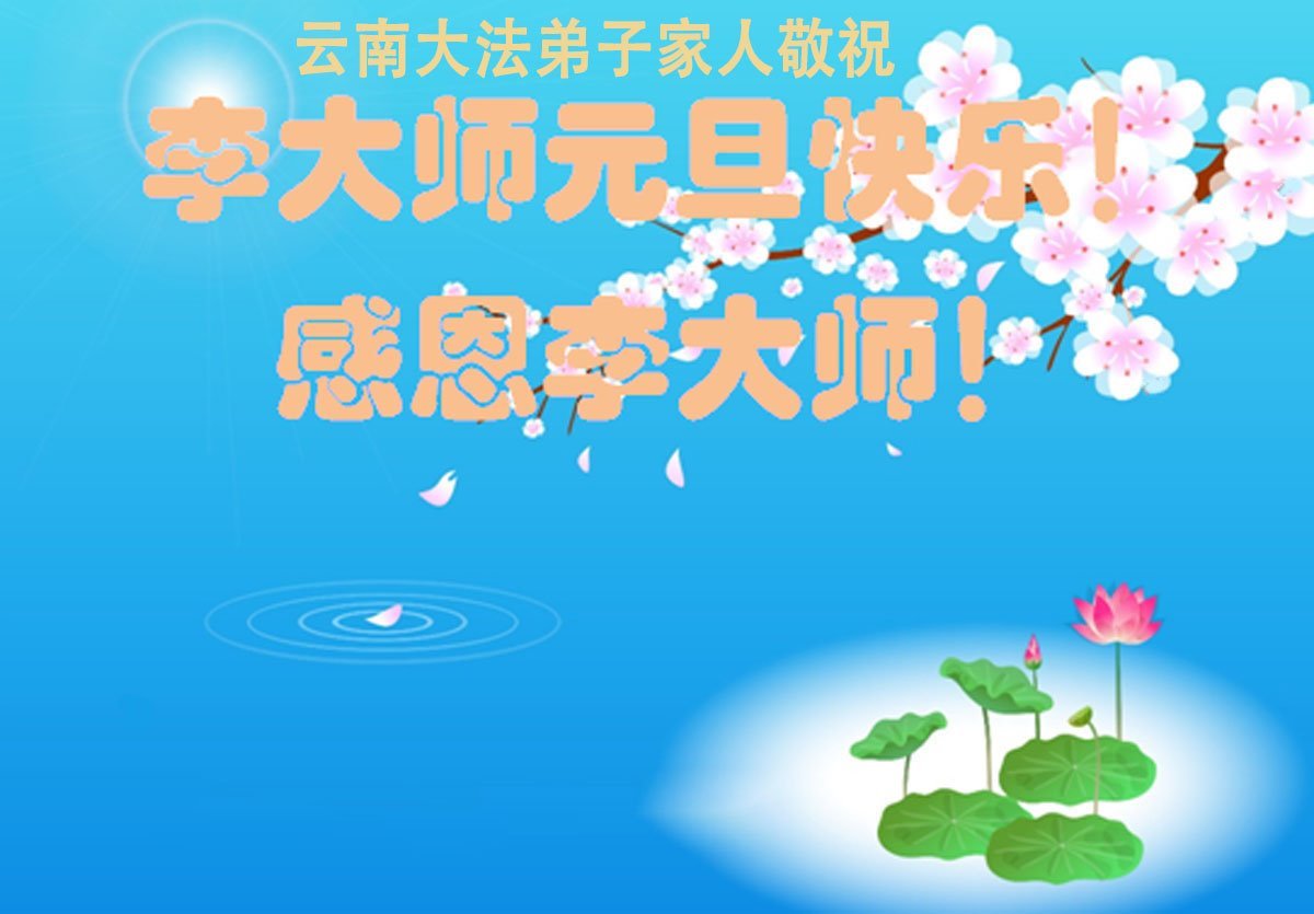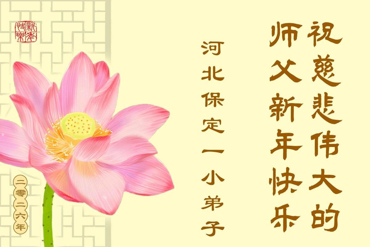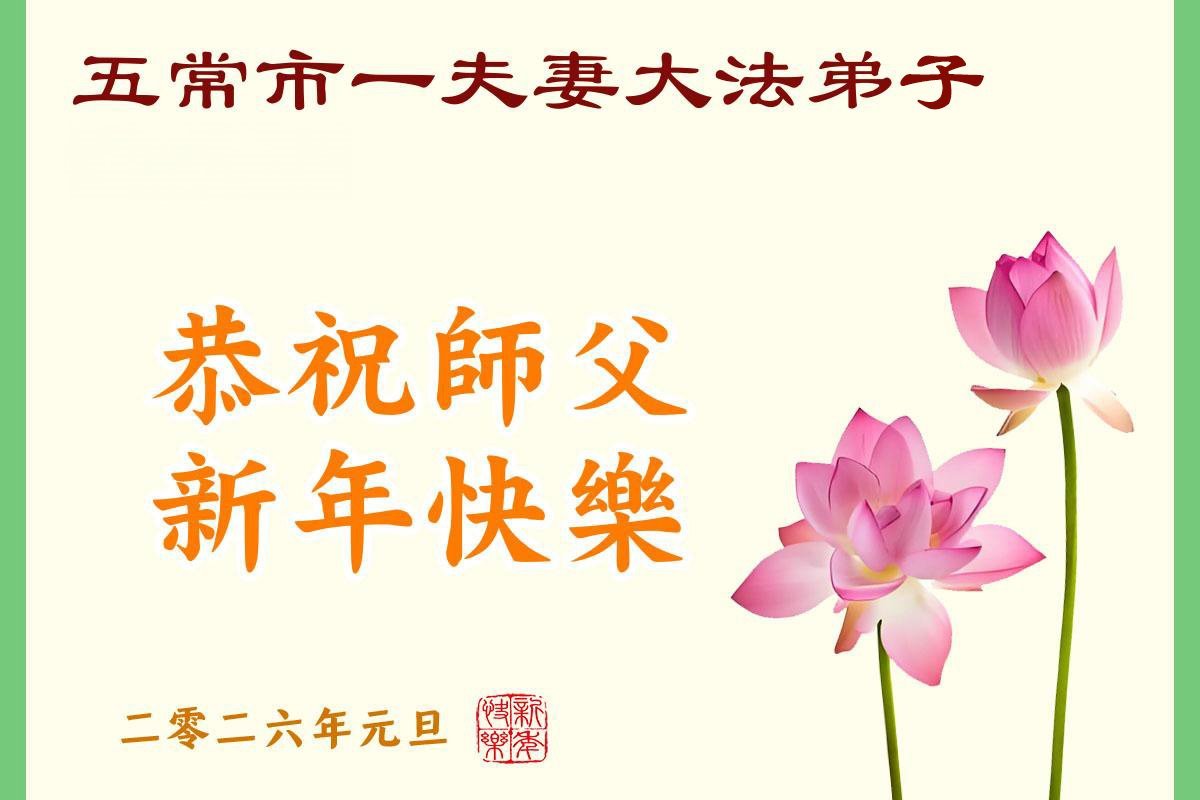 以下是部份来自中国各省、市、地区的学法炼功小组、讲真相小组、资料点大法弟子们敬致师尊的新年贺词贺卡: