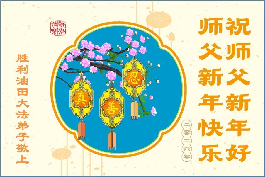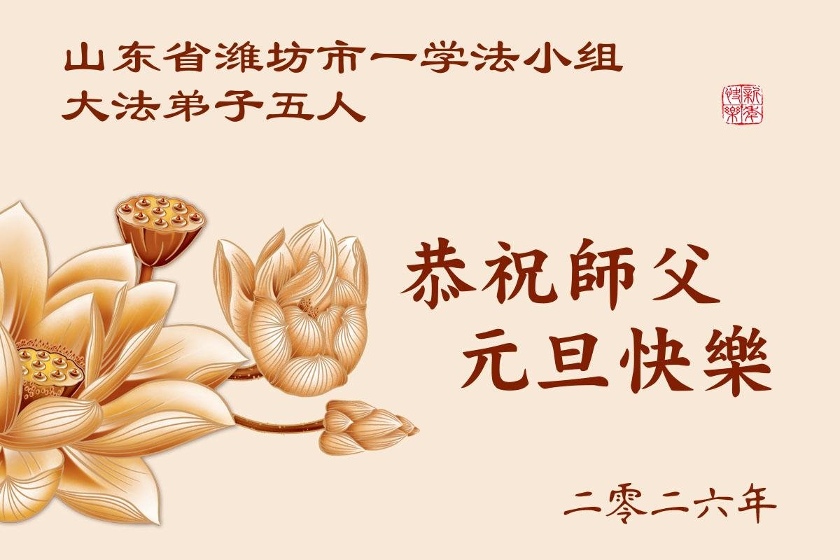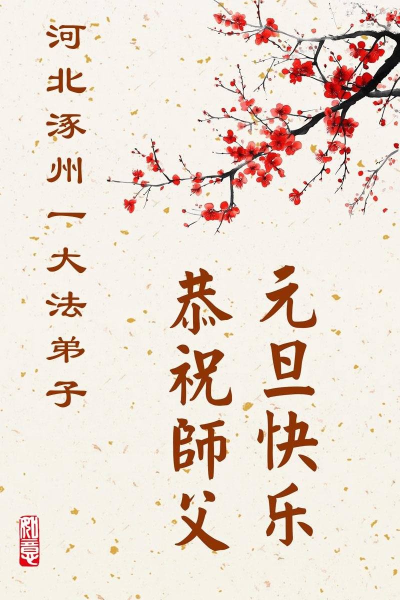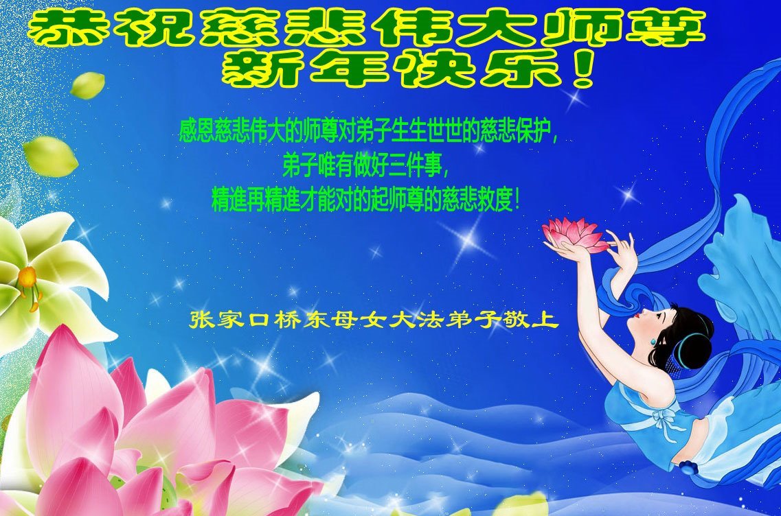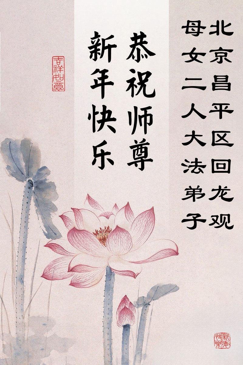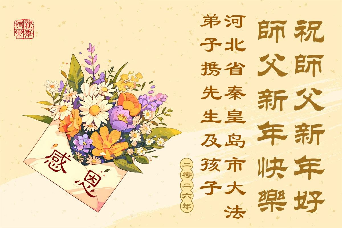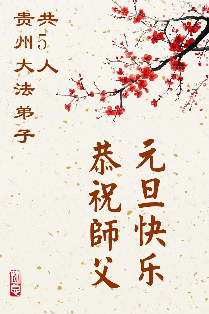 以下是部份来自中国各省、市、地区的学法炼功小组、讲真相小组、资料点大法弟子们敬致师尊的新年贺词贺卡:
