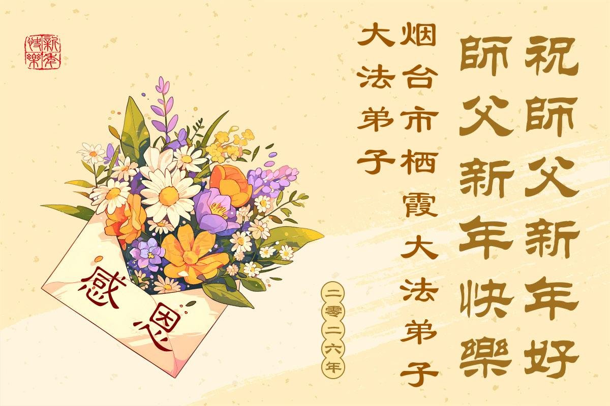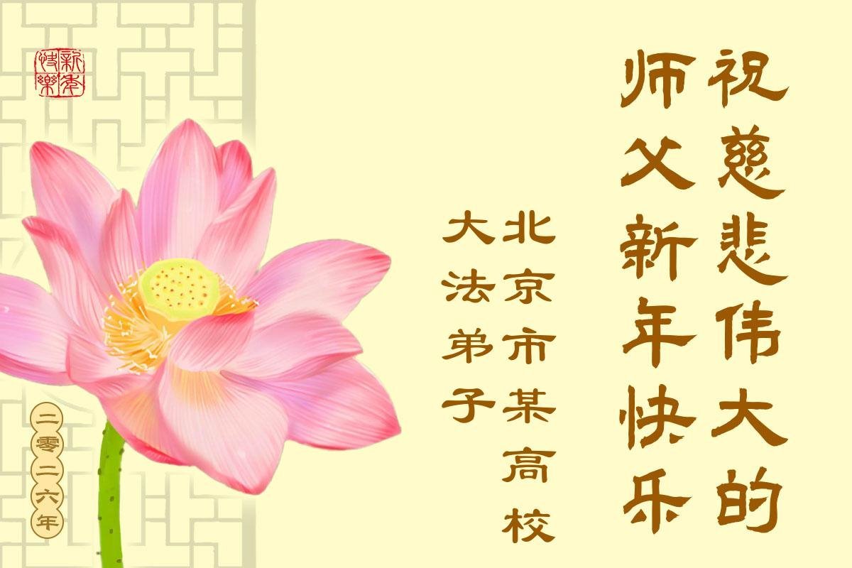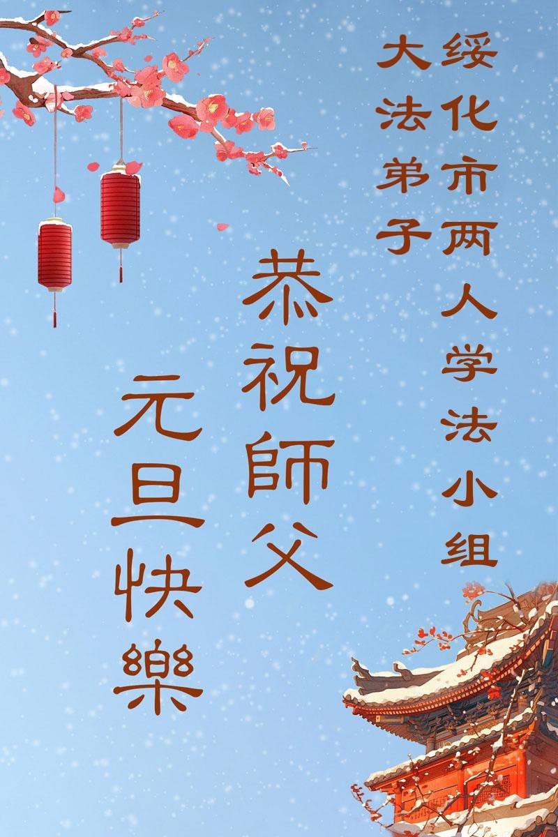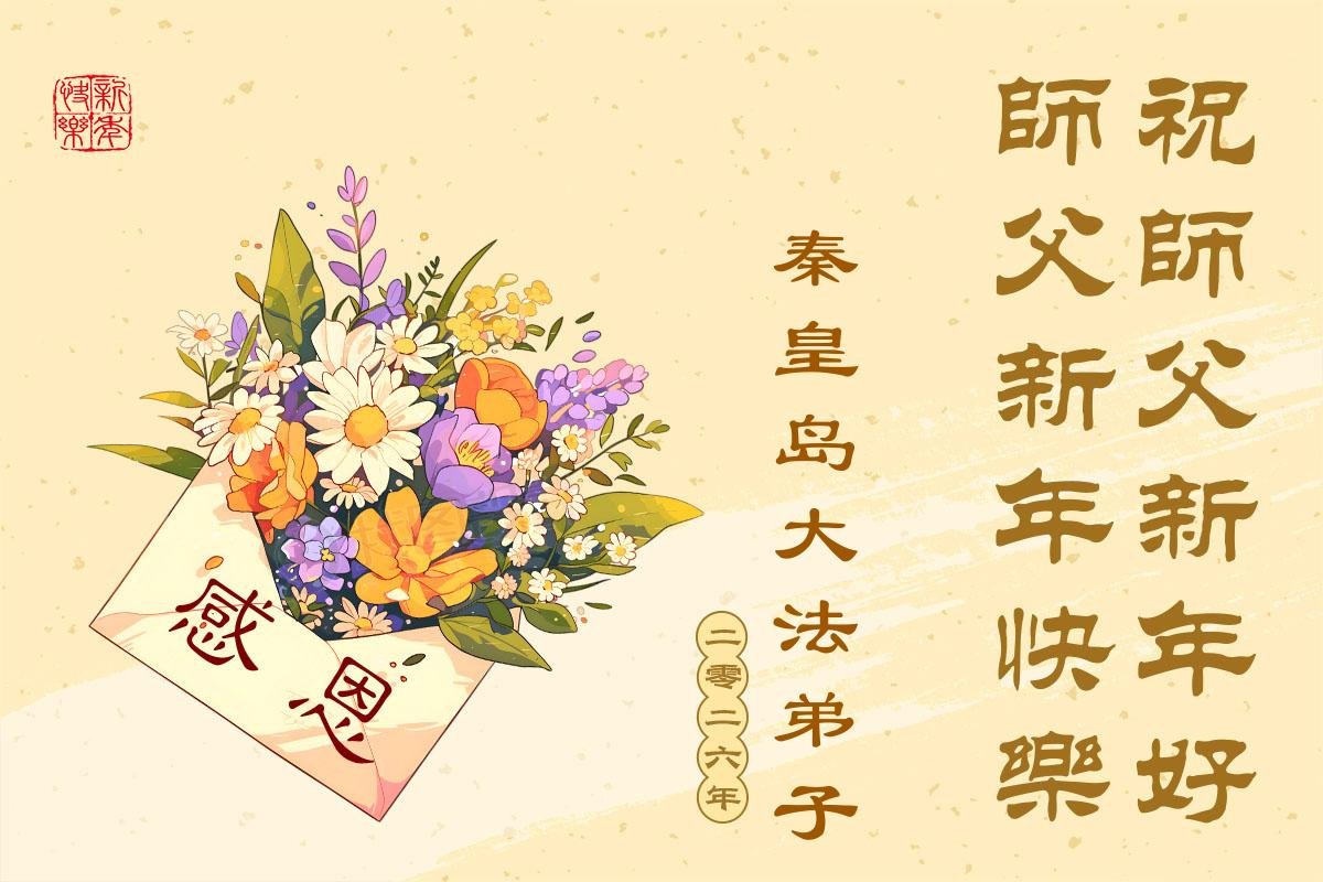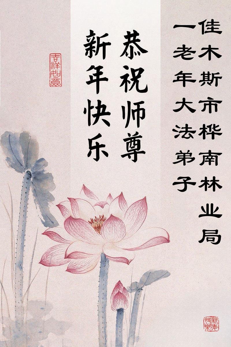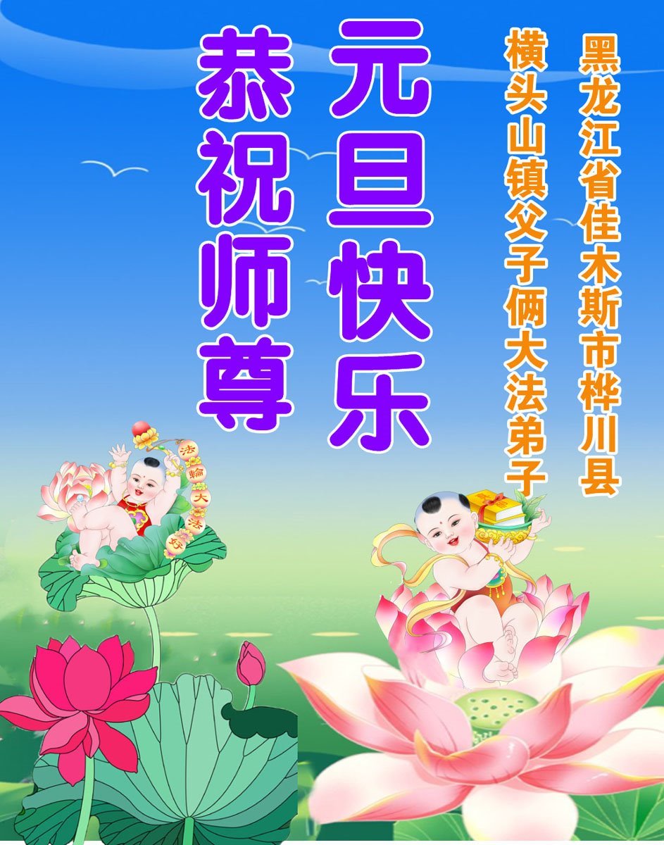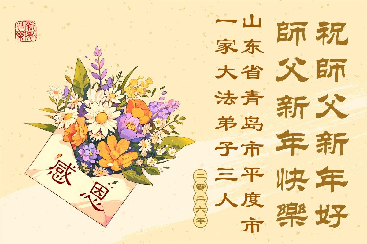 以下是部份来自中国各省、市、地区的学法炼功小组、讲真相小组、资料点大法弟子们敬致师尊的新年贺词贺卡:
