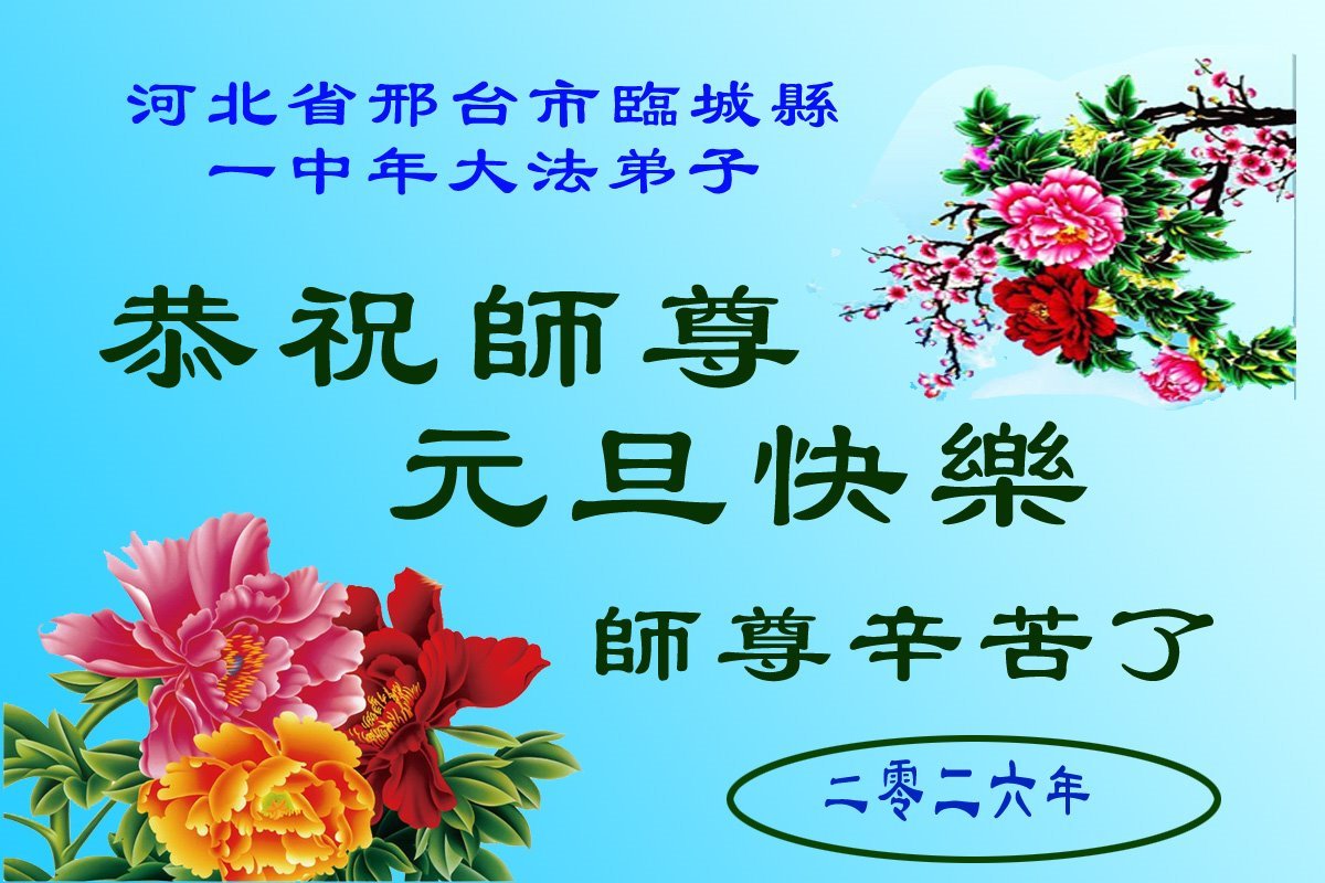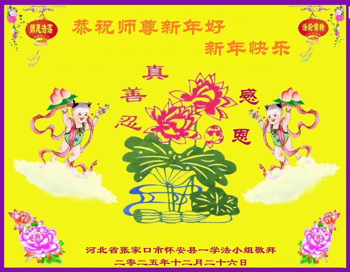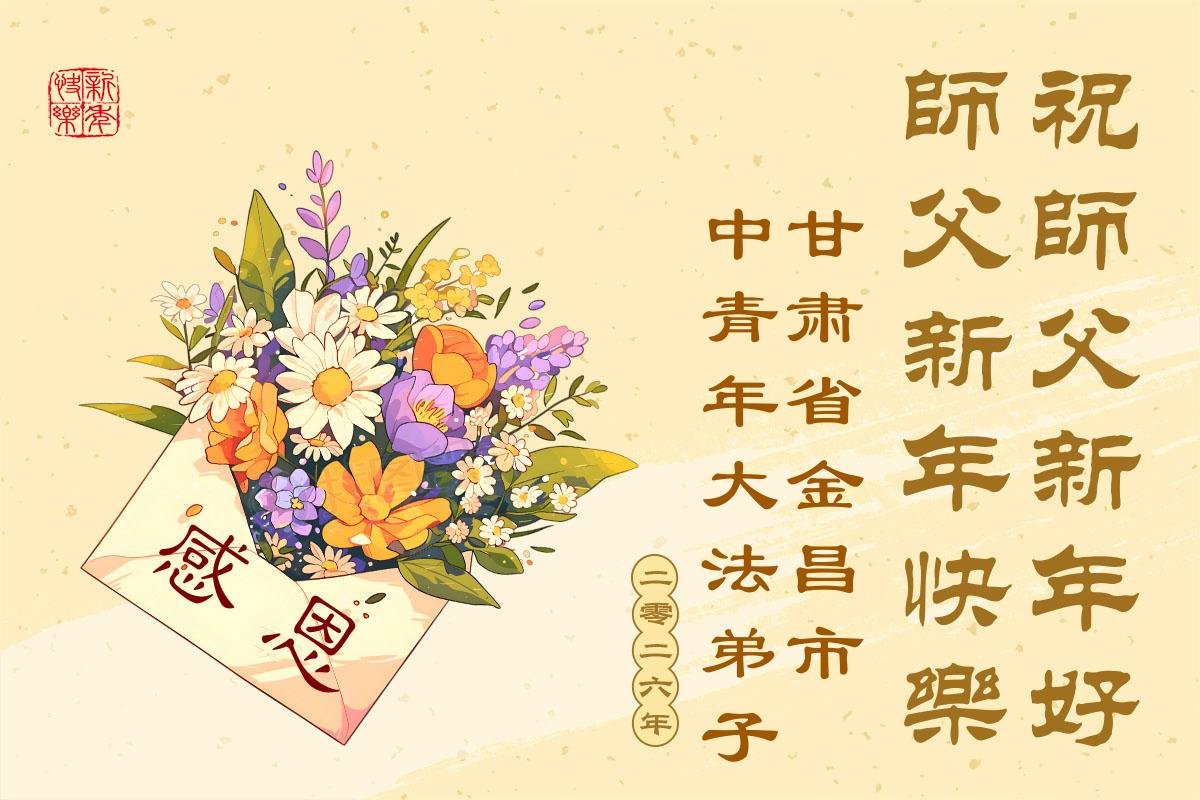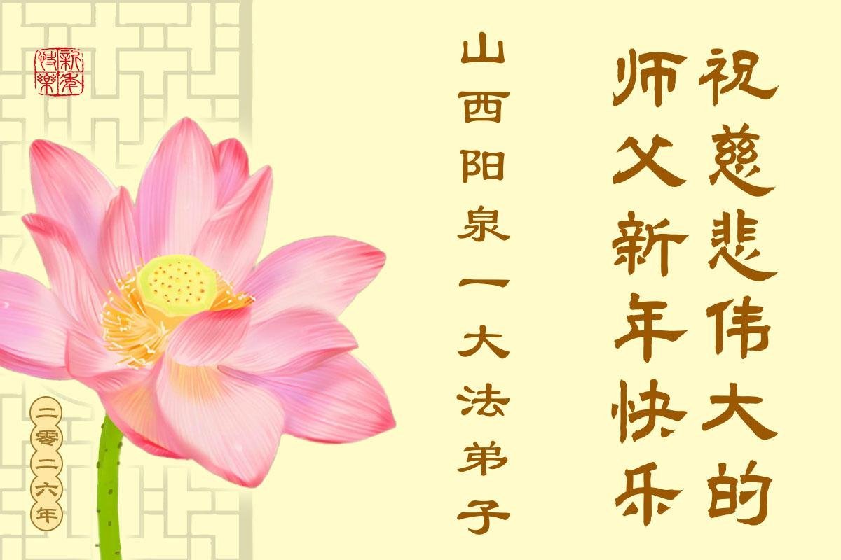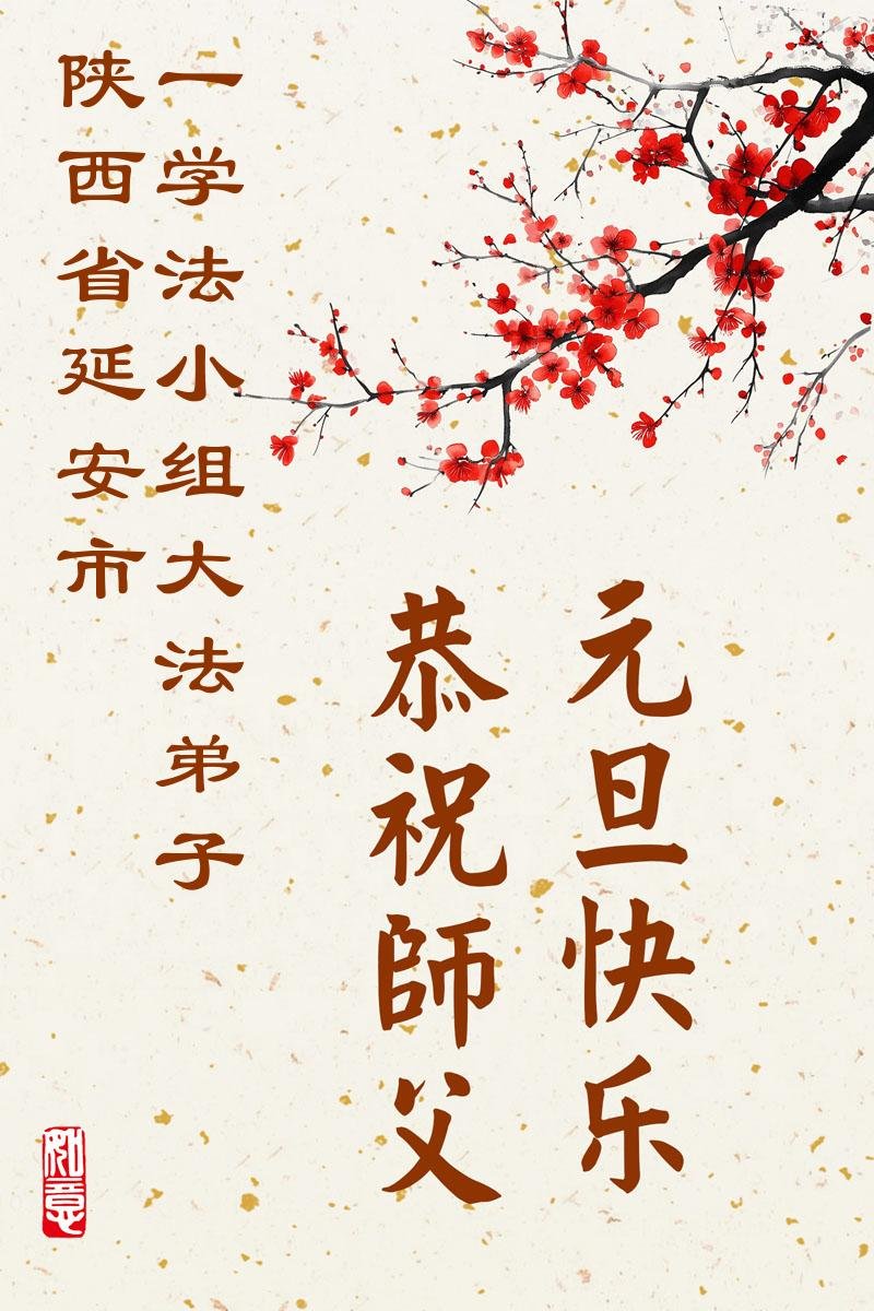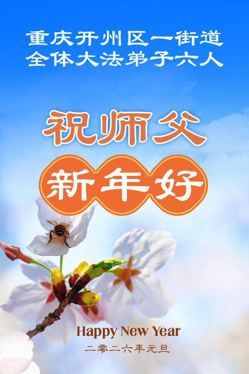 以下是部份来自中国各省、市、地区的学法炼功小组、讲真相小组、资料点大法弟子们敬致师尊的新年贺词贺卡: