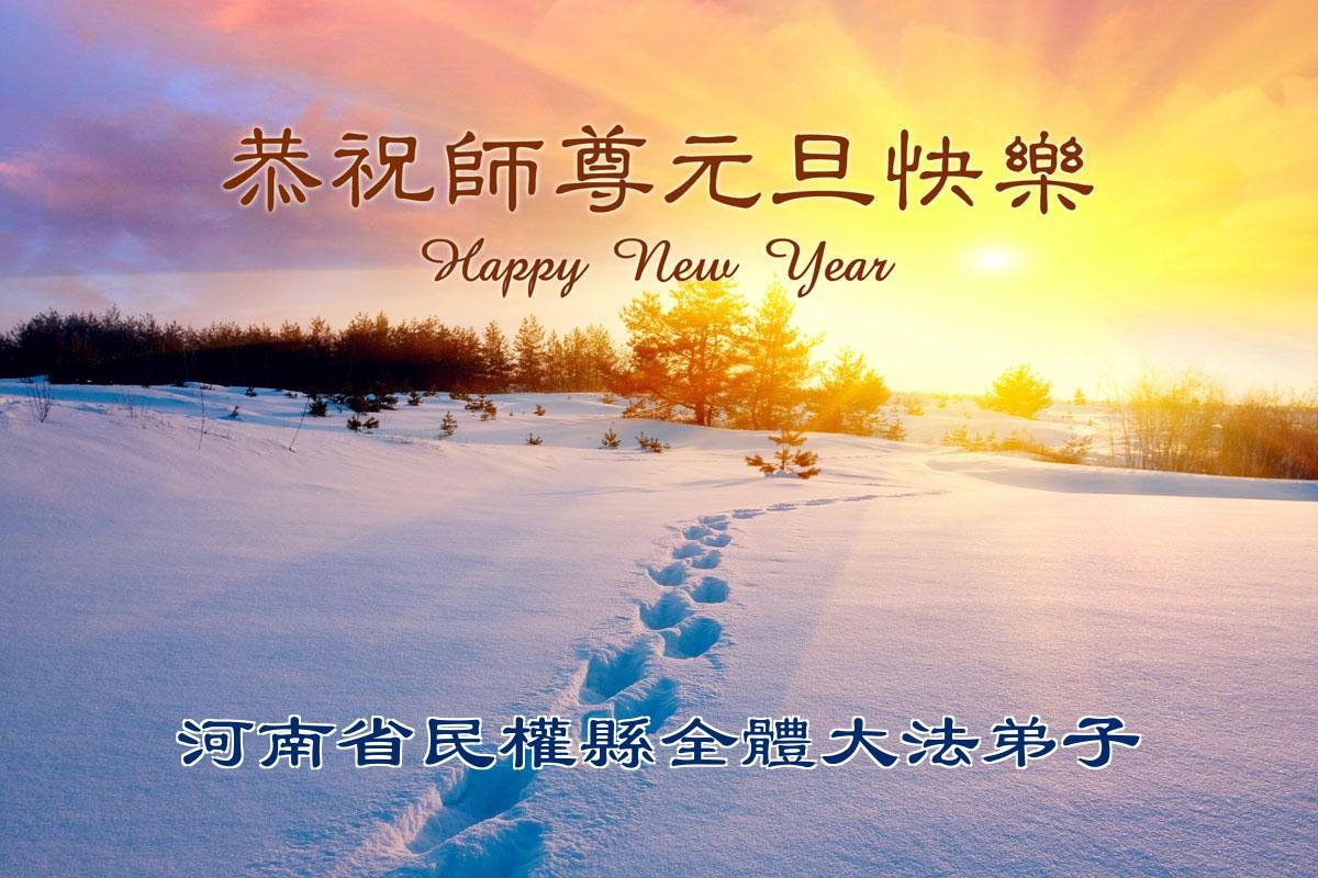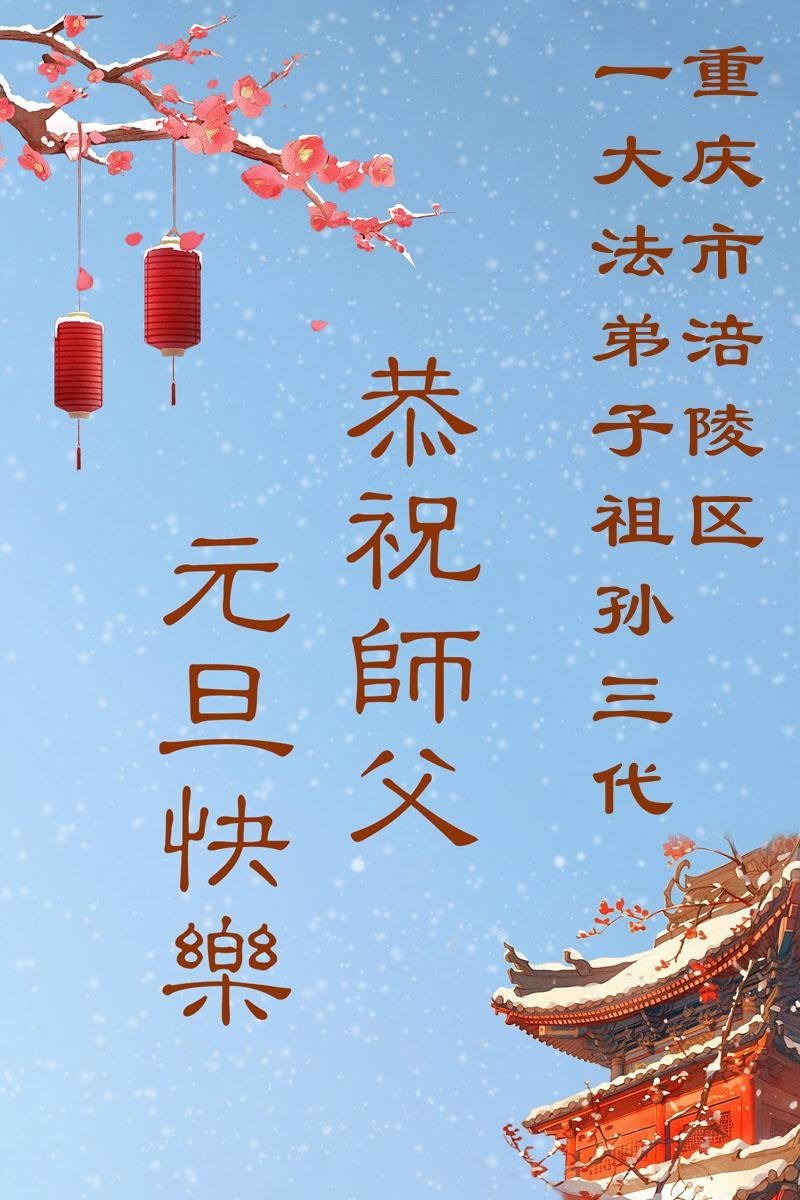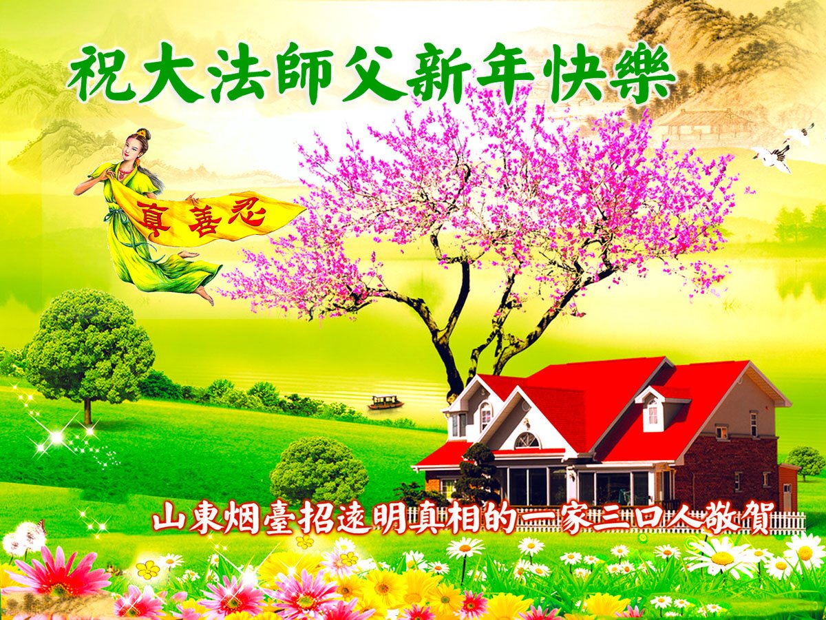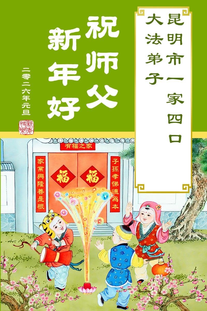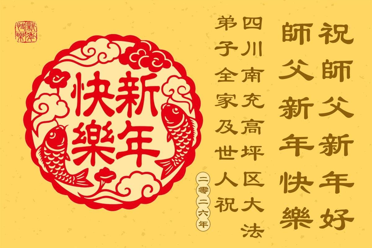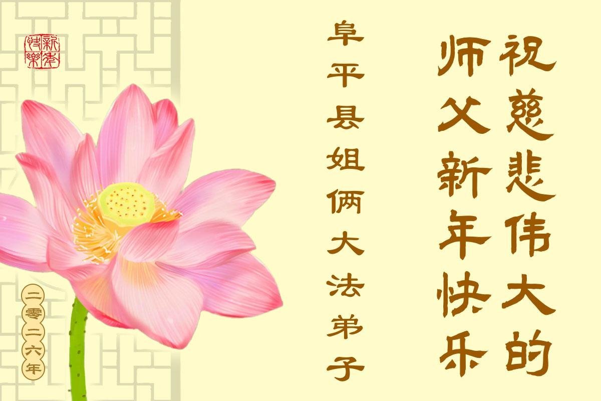 以下是部份来自中国各省、市、地区的学法炼功小组、讲真相小组、资料点大法弟子们敬致师尊的新年贺词贺卡:
