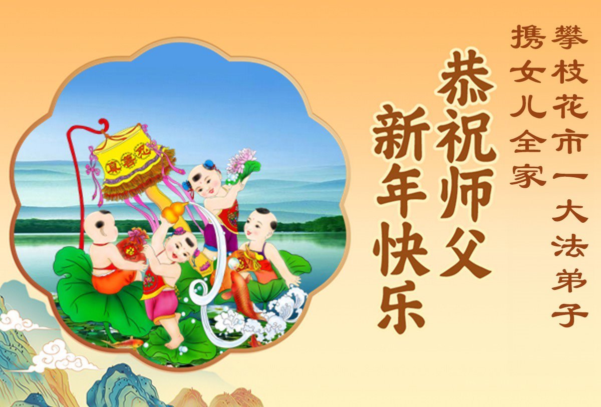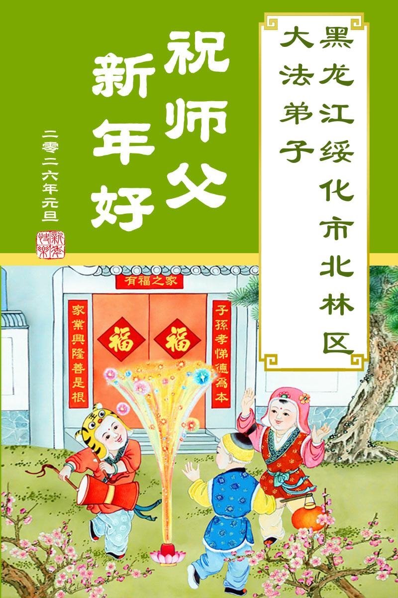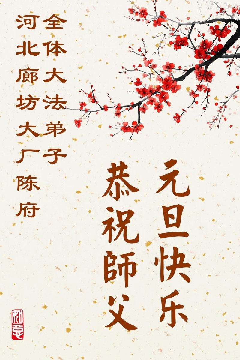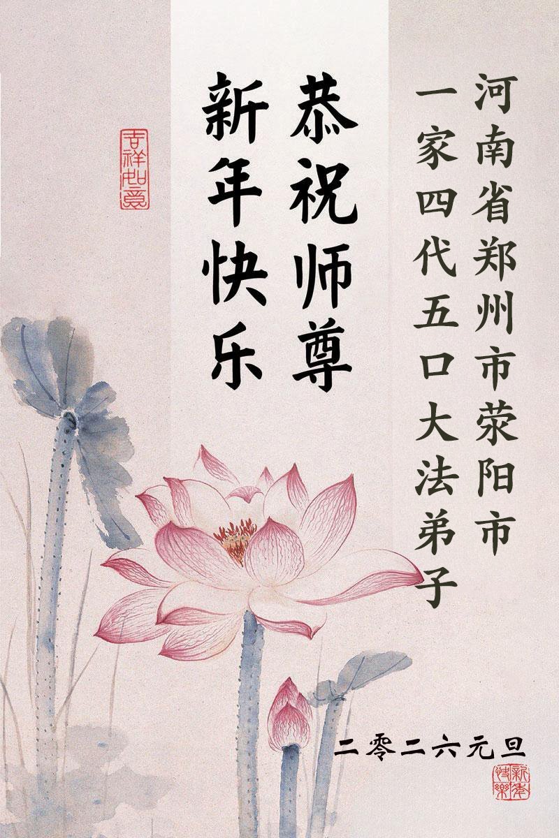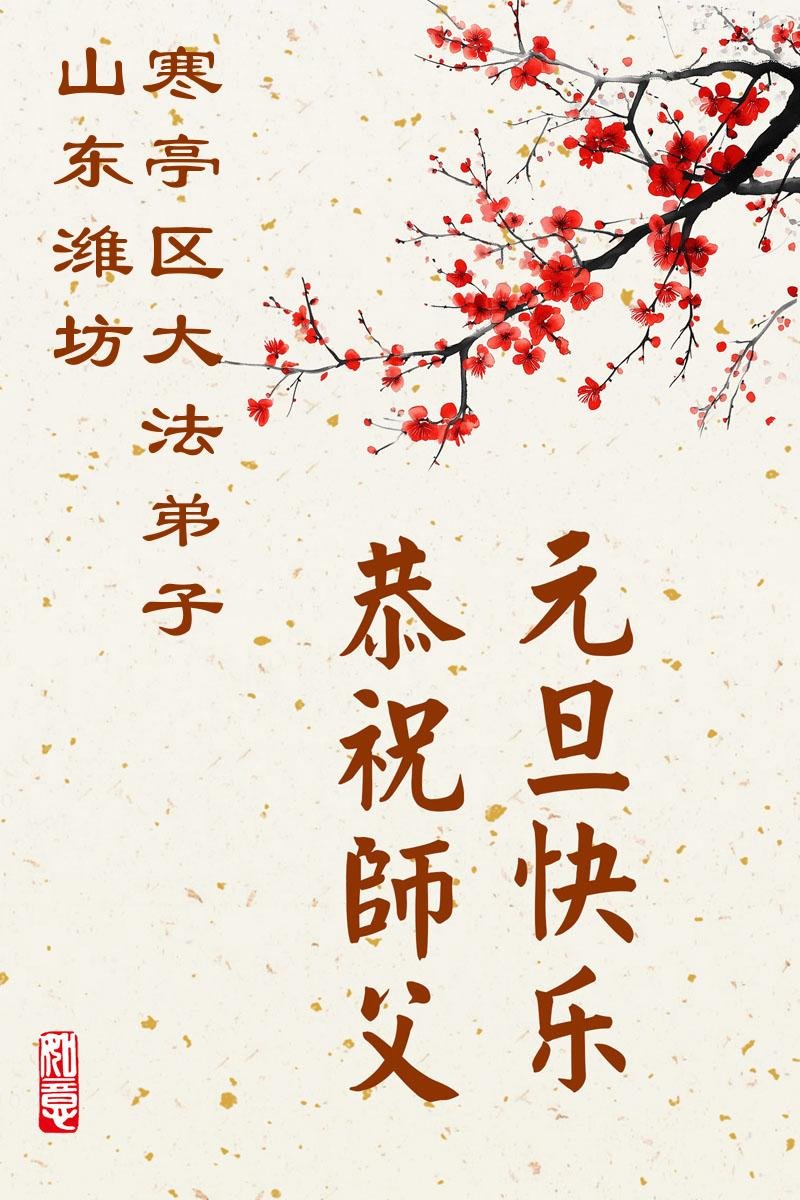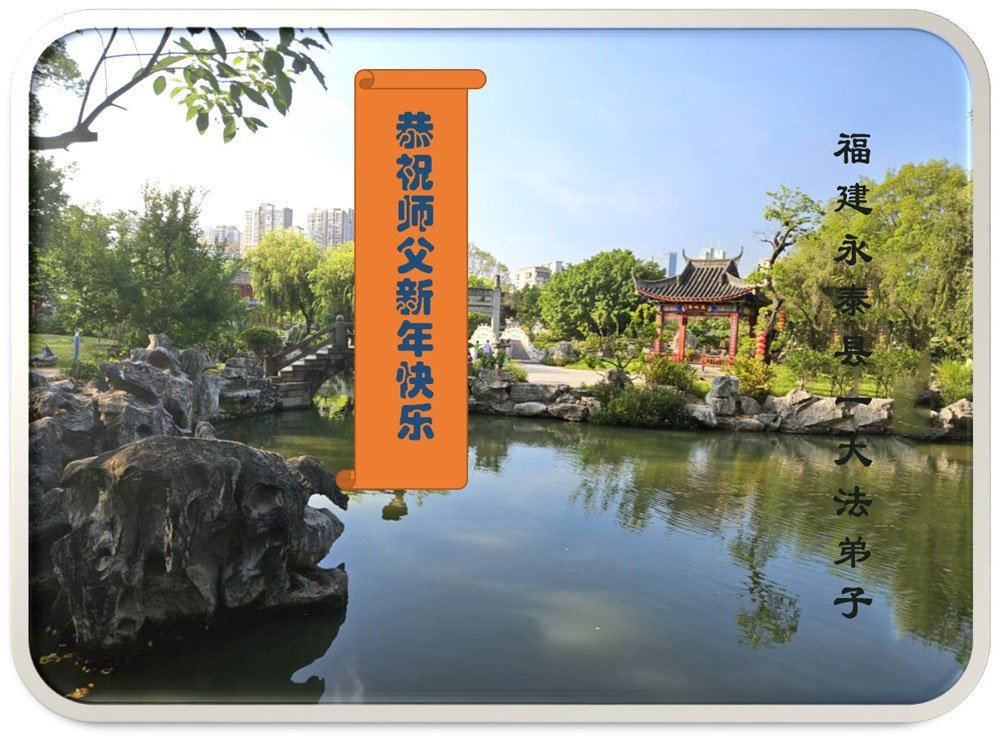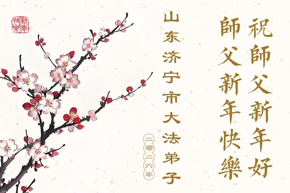 以下是部份来自中国各省、市、地区的学法炼功小组、讲真相小组、资料点大法弟子们敬致师尊的新年贺词贺卡: