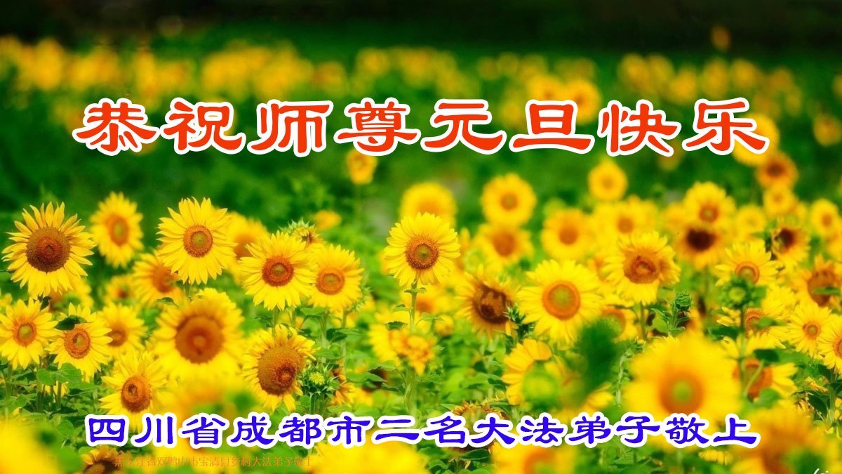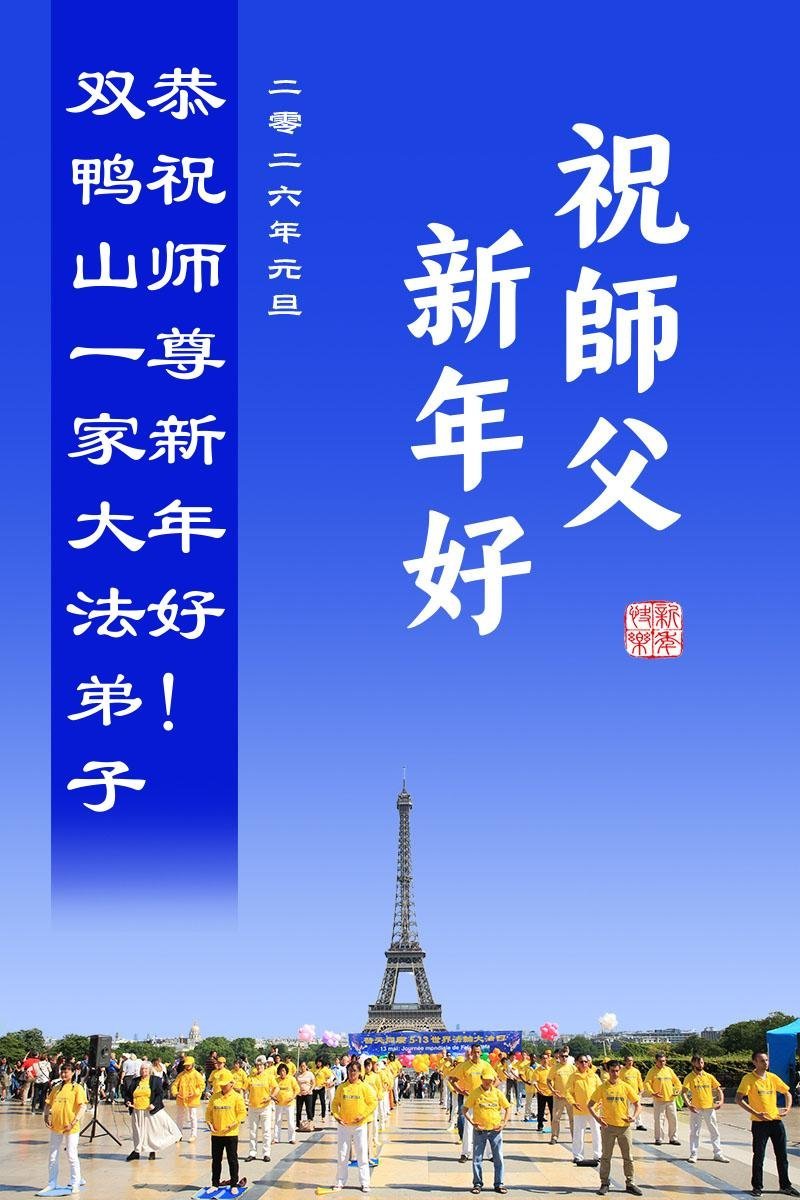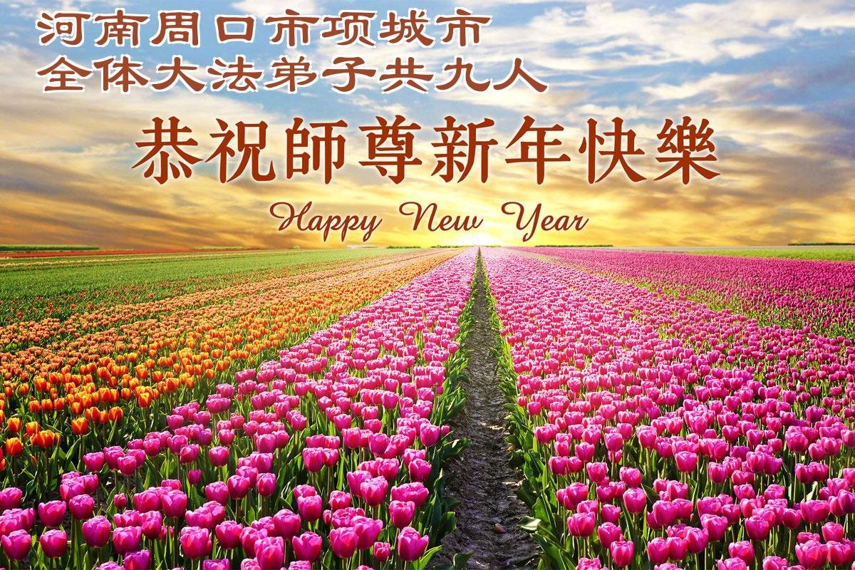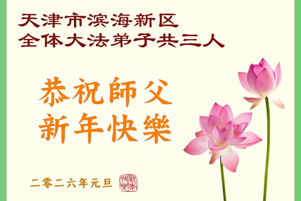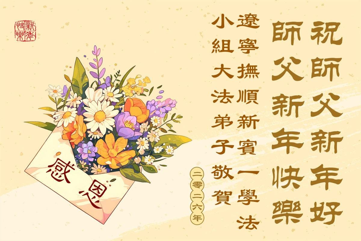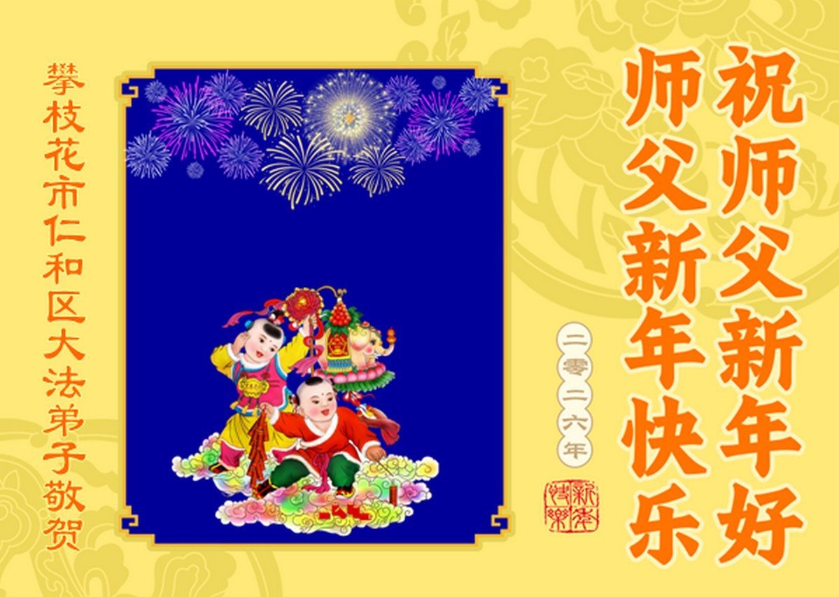 以下是部份来自中国各省、市、地区的学法炼功小组、讲真相小组、资料点大法弟子们敬致师尊的新年贺词贺卡: