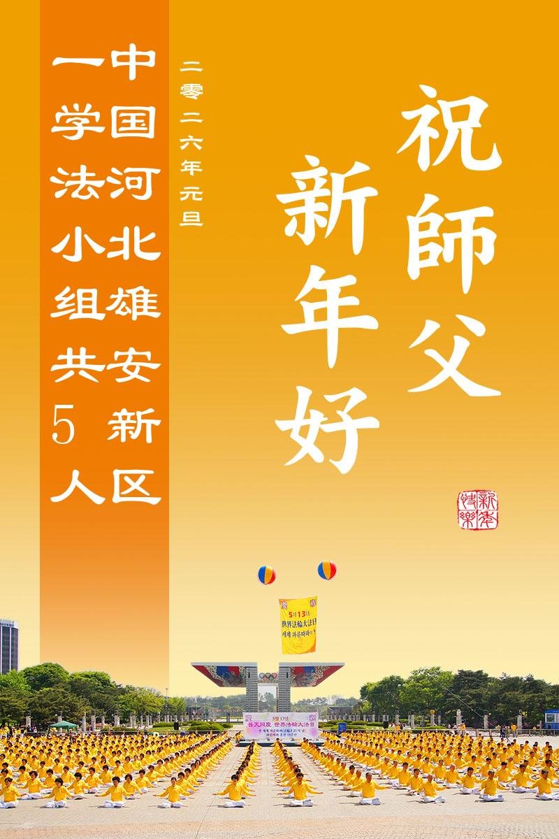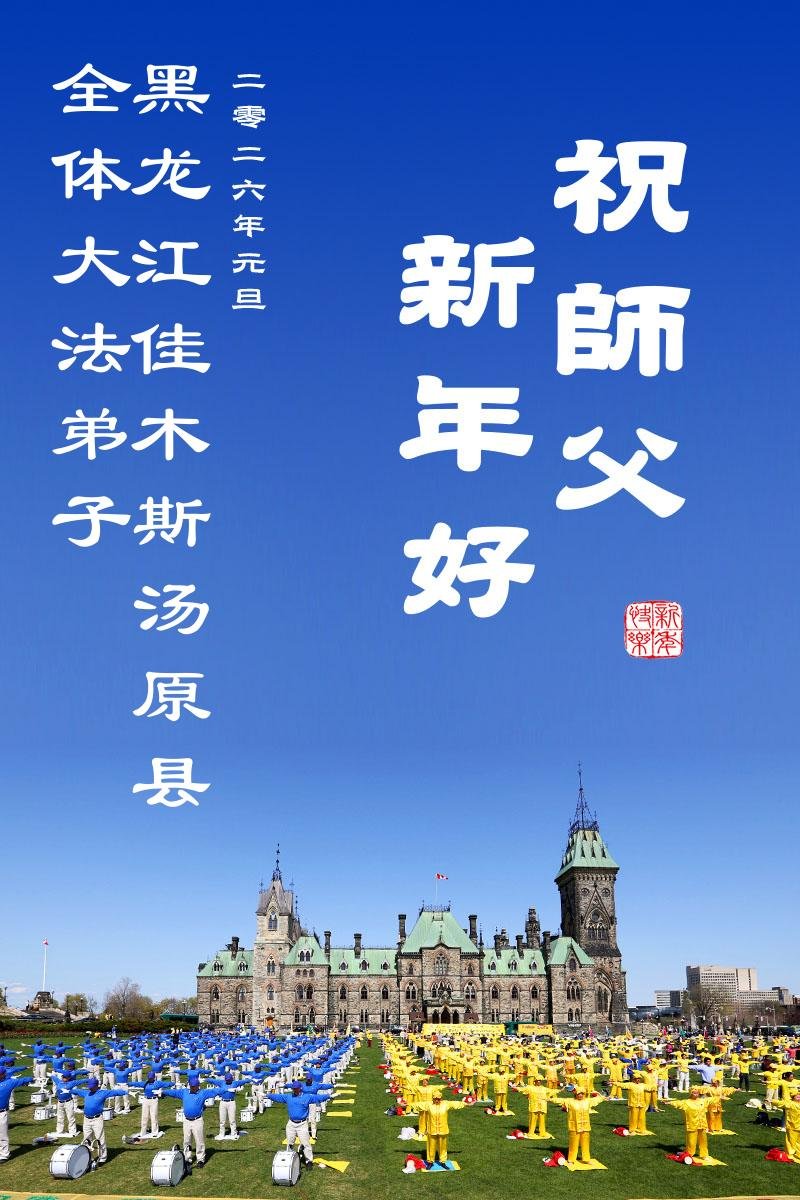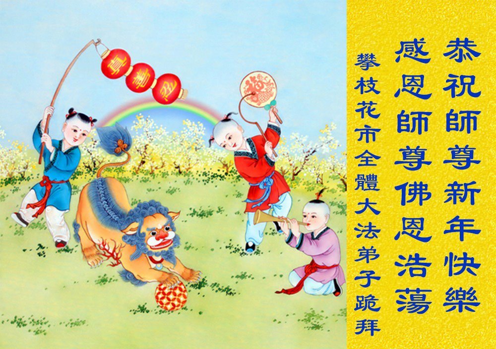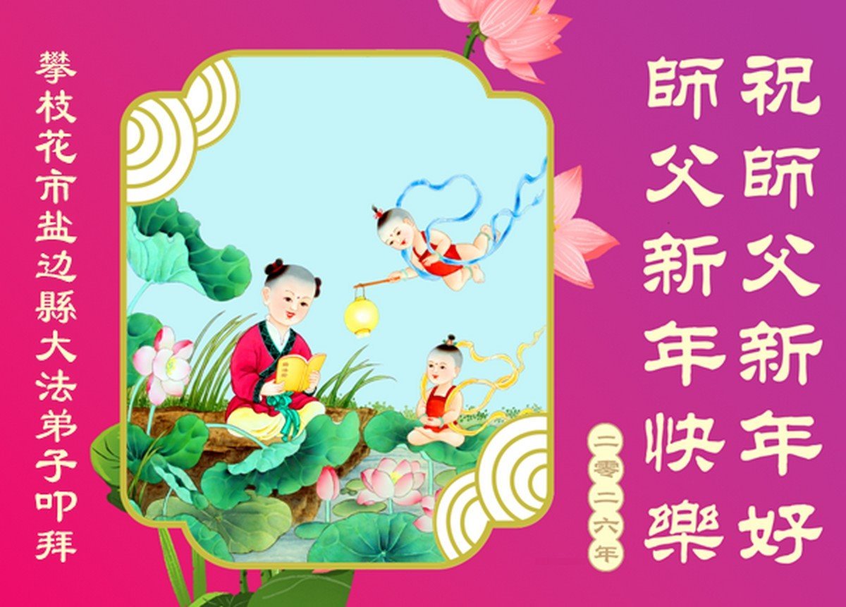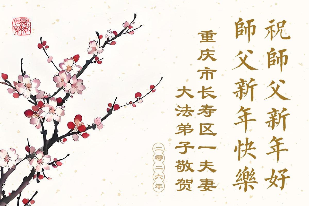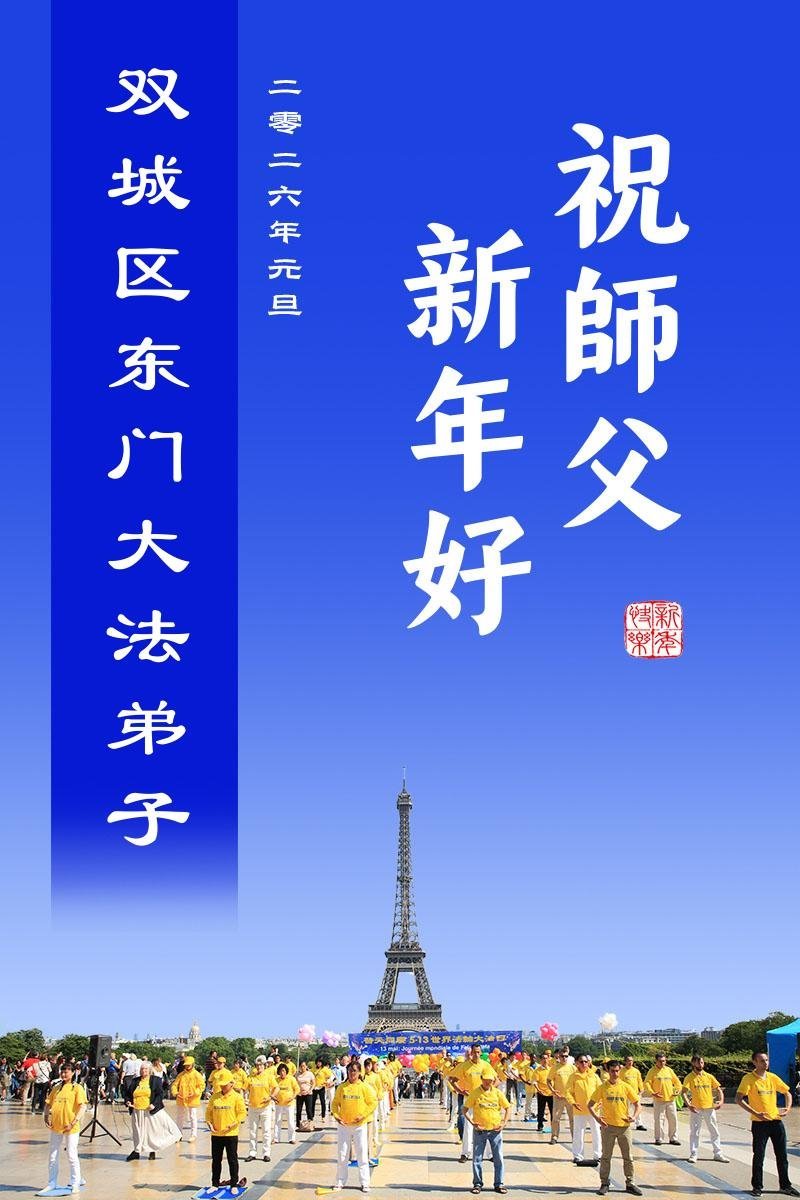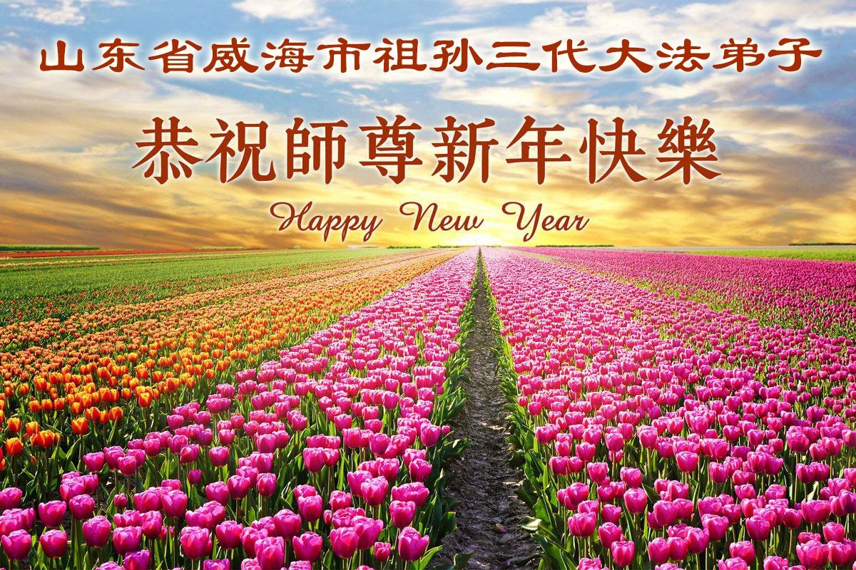 以下是部份来自中国各省、市、地区的学法炼功小组、讲真相小组、资料点大法弟子们敬致师尊的新年贺词贺卡: