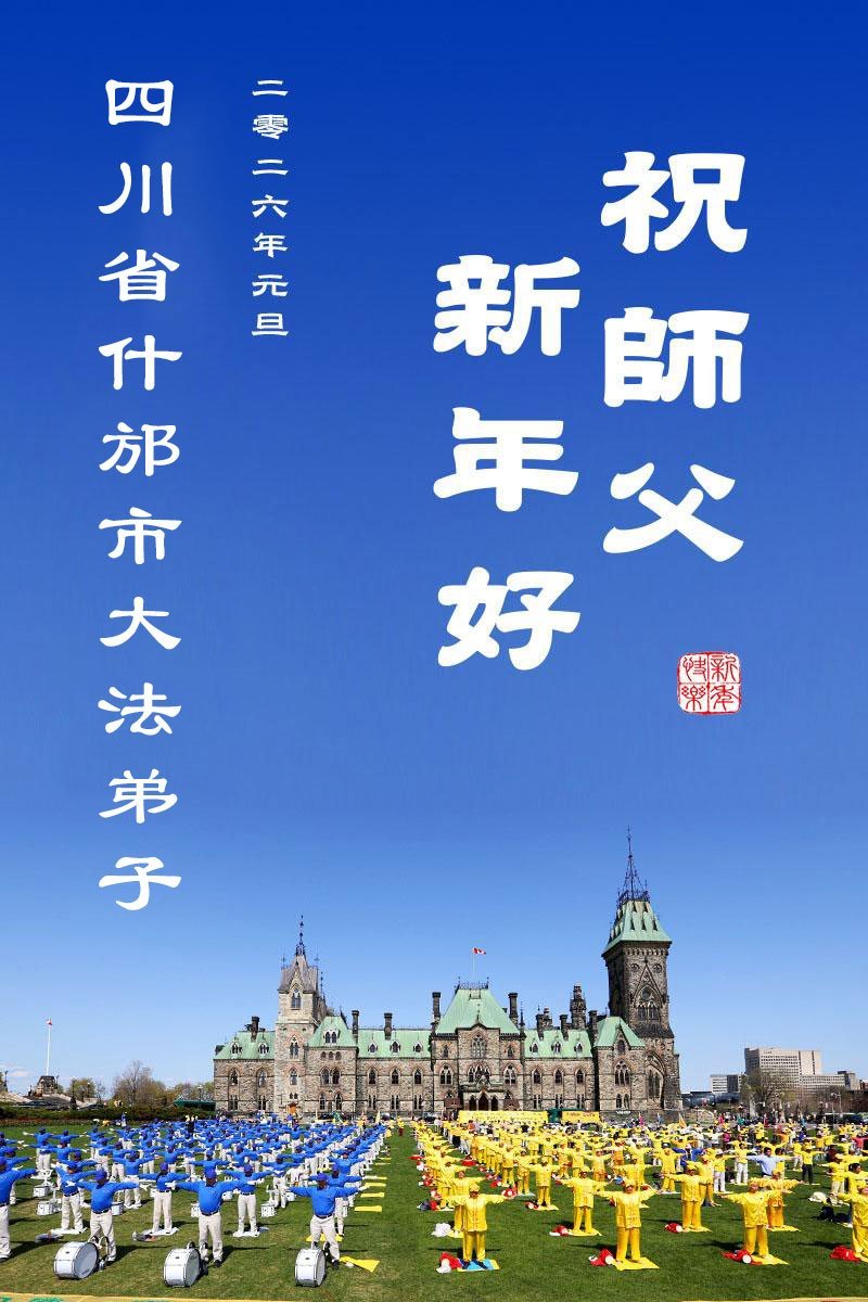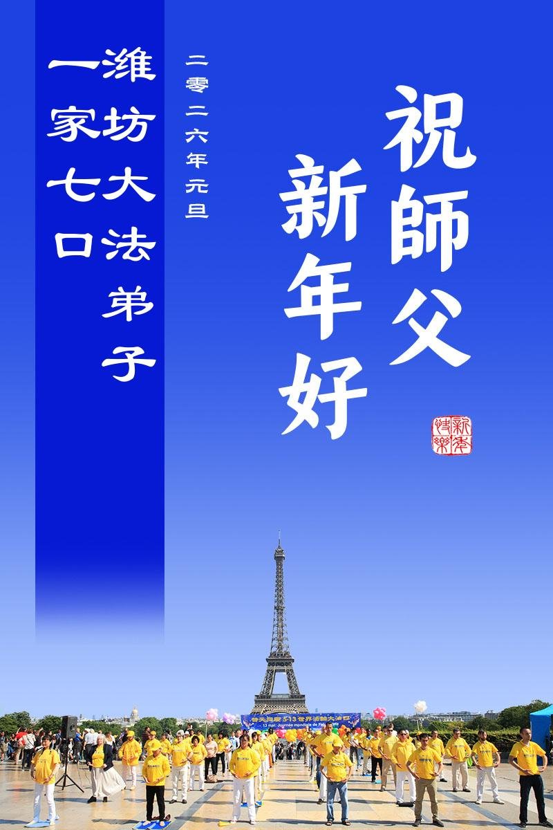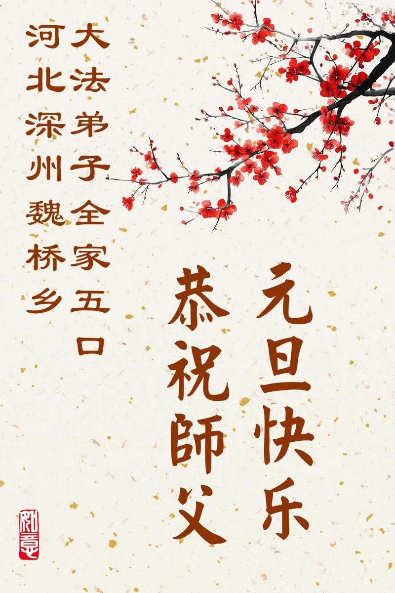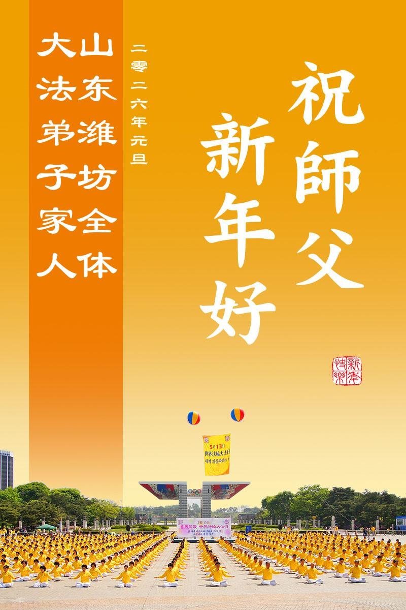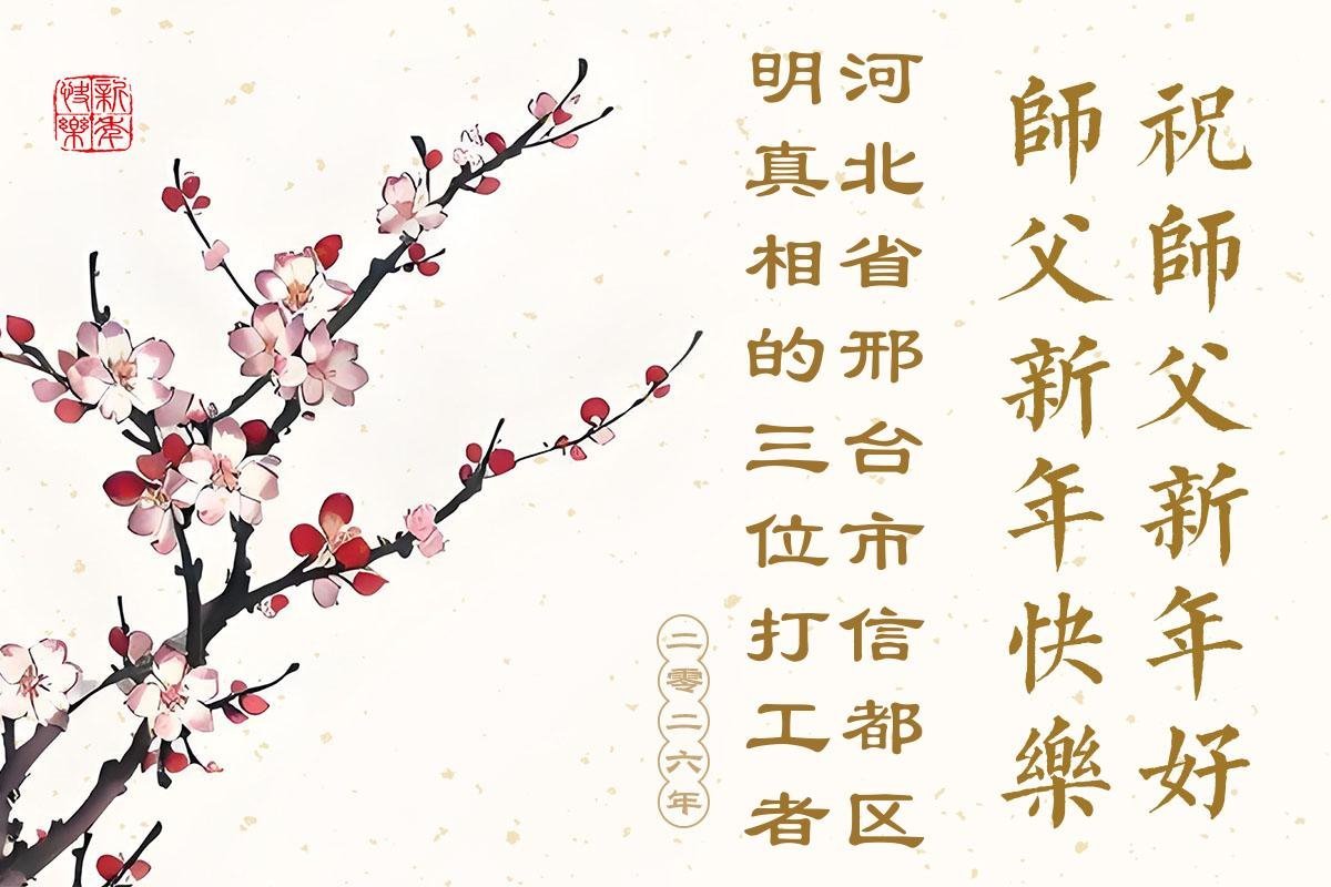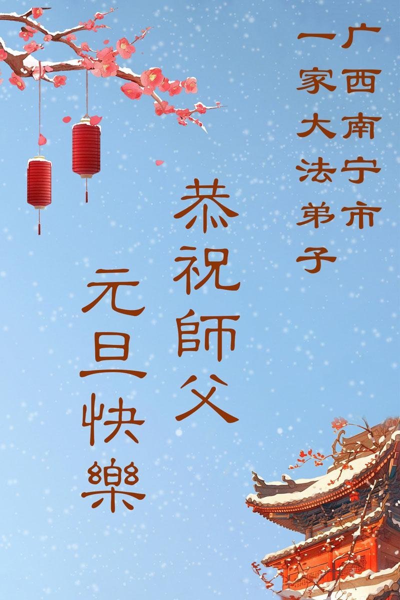 以下是部份来自中国各省、市、地区的学法炼功小组、讲真相小组、资料点大法弟子们敬致师尊的新年贺词贺卡:
