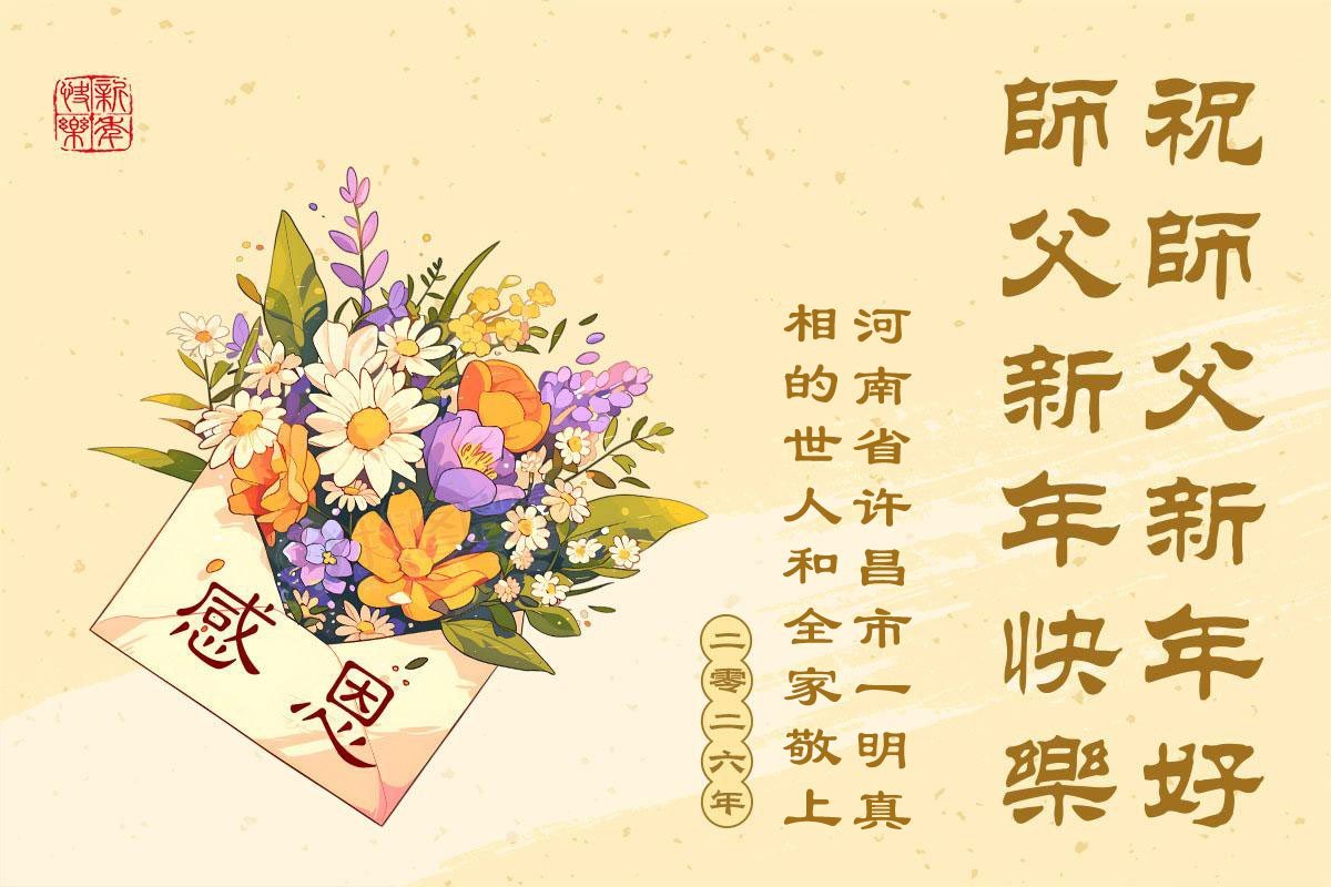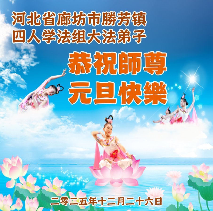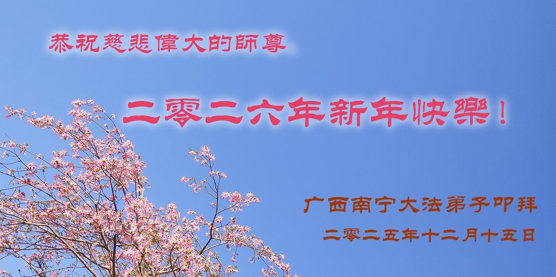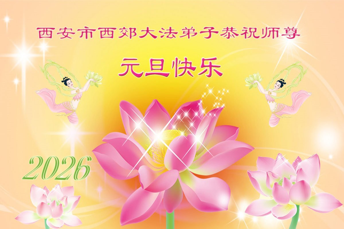 【明慧网二零二五年十二月三十一日】二零二六年新年钟声敲响之际,中国大陆30省、直辖市、自治区大法弟子同拜师尊,恭祝慈悲伟大的师尊新年好!