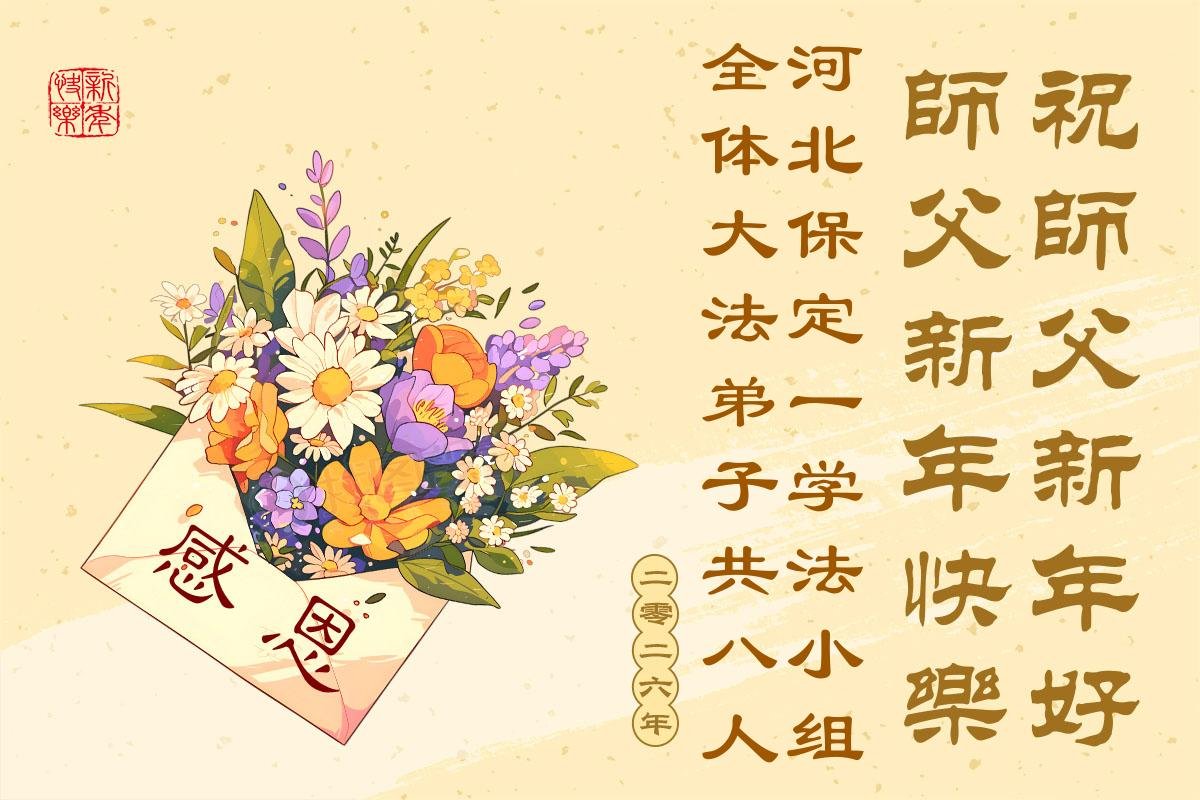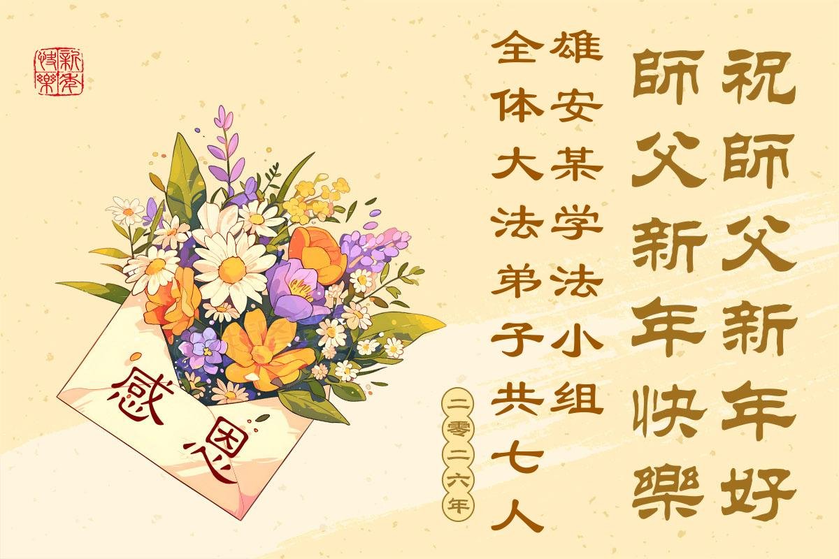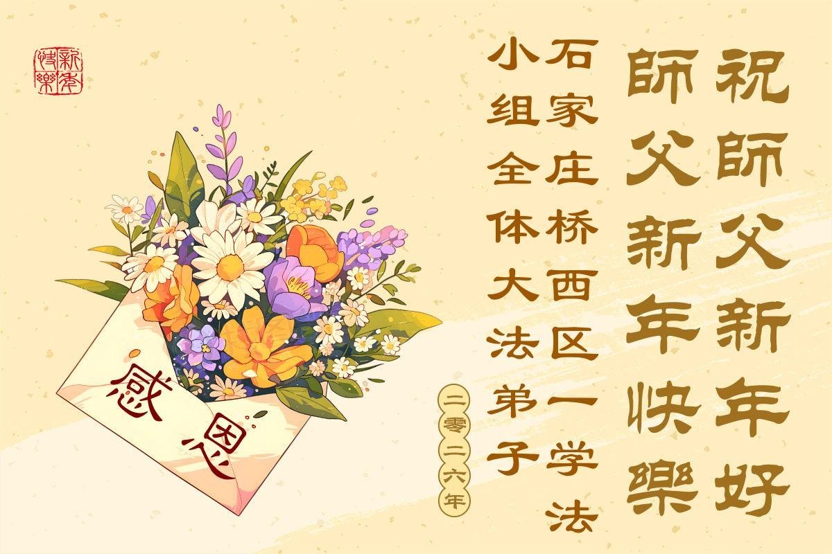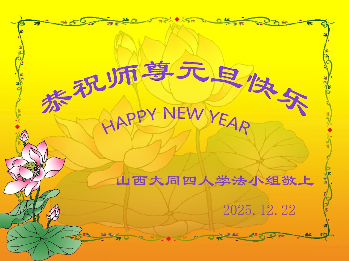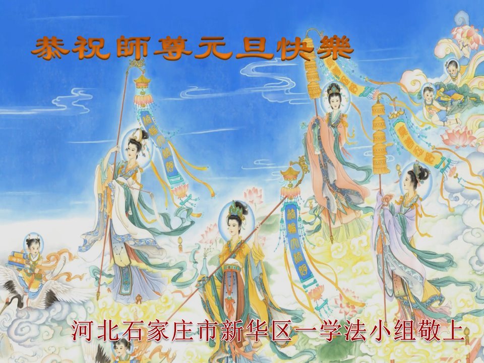 慈悲伟大的师尊您好,您辛苦啦!新年到来之际,我们十个学法小组的弟子们合十恭祝师尊新年好!新年快乐!弟子感恩师尊慈悲普度!我们每天三三两两的一起出去面对面讲真相救人,一起学法,相互提醒,共同升华,做好三件事圆容师尊要的。感恩师尊对弟子的一路加持看护!