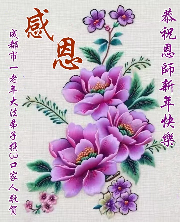 时光飞逝,一晃新的一年又开始了,在这辞旧迎新的日子里,恭祝慈悲伟大的师父新年快乐!感恩师父时刻的慈悲看护和加持,弟子才能在这特殊的历史时期,能一如既往的做好自己分内之事。对师父的感恩之心无以言表,弟子会更加精進,兑现誓约,让师父少些操劳,多些安慰。遥拜叩谢恩师!