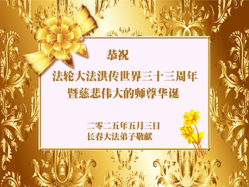 吉林省长春市大法小弟子恭贺世界法轮大法日!恭祝师尊生日快乐!黑龙江省大庆市大法小弟子恭祝师尊生日快乐!感恩师尊慈悲苦度!