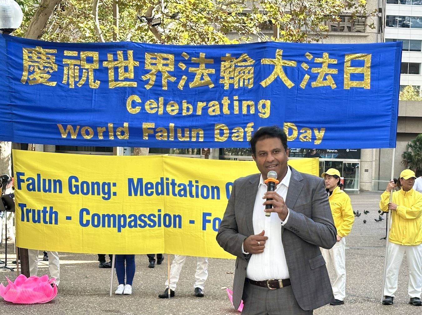 悉尼帕拉马塔市议员斯里尼·皮拉马里(Cr Sreeni Pillamarri of Parramatta City Council)表示:“我很荣幸能够参与法轮大法庆典活动。我与法轮大法结缘已近十五年,这段旅程意义非凡。”