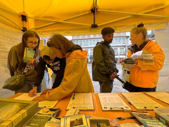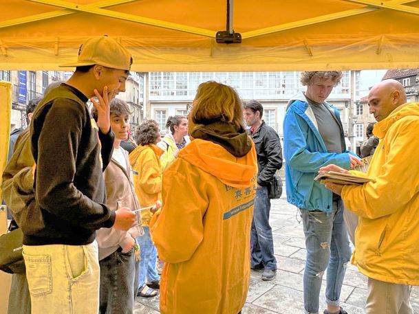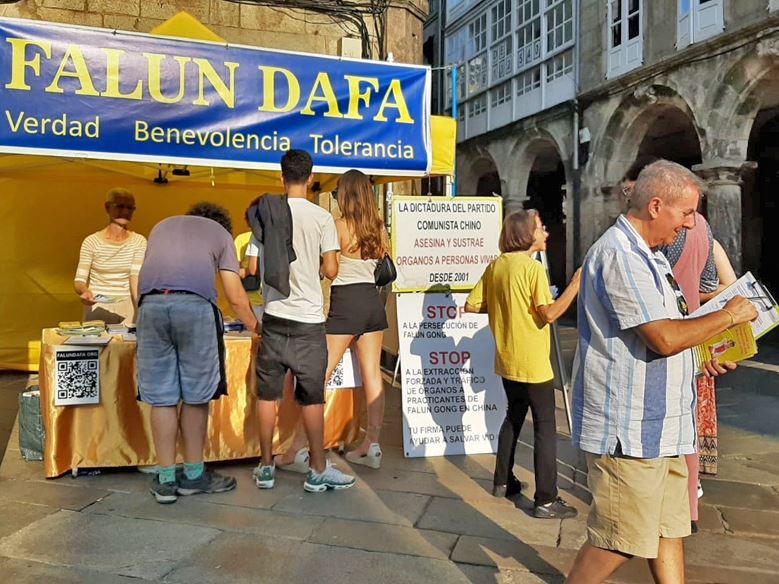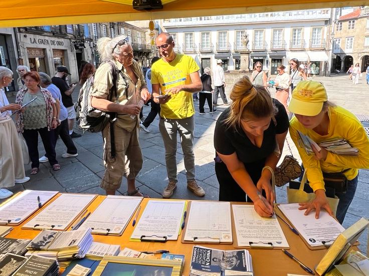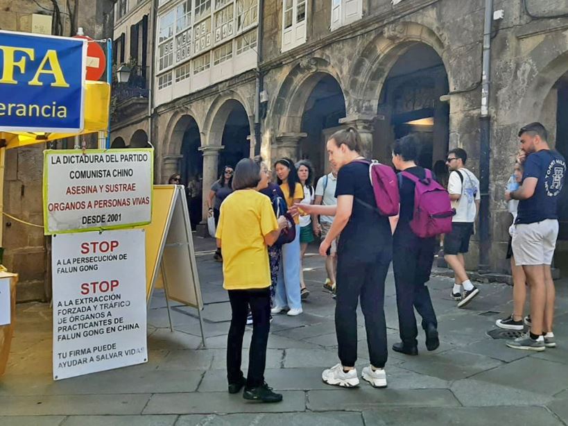 克里斯蒂娜(Cristina) 是加利西亚村镇的居民,在和学员的交谈中,她说:自己对气功、太极方面很感兴趣,但是在九十年代的西班牙,没有人传授心法。她向学员确认法轮功就是法轮大法。因为八年前的一次前往中国的旅行中,她曾经听一位修炼法轮功的女士告诉她,中共政权不允许精神信仰的存在。因此当她看到真相展板上的法轮功学员被中共残酷迫害的图片后,立刻签名表示支持法轮功反迫害。