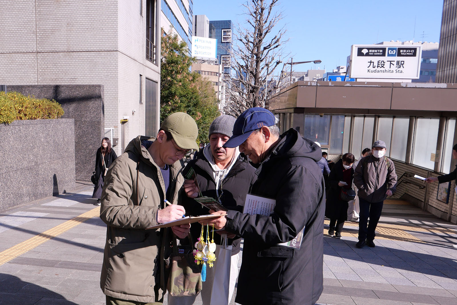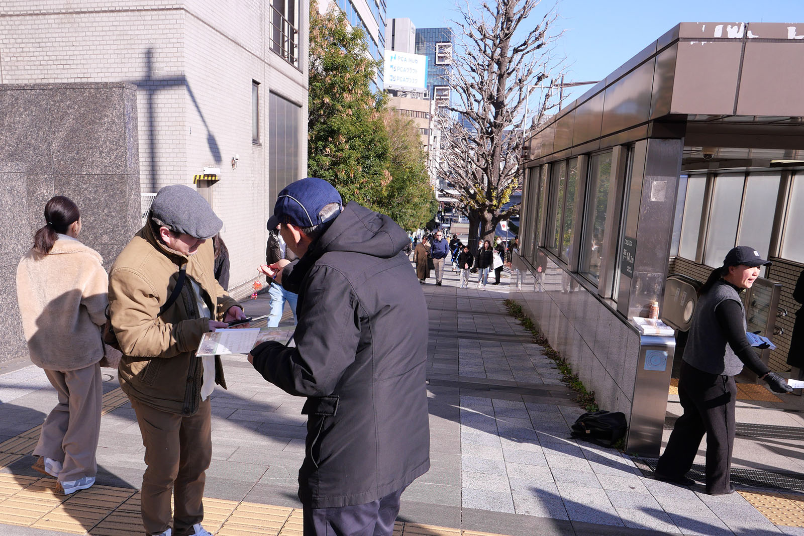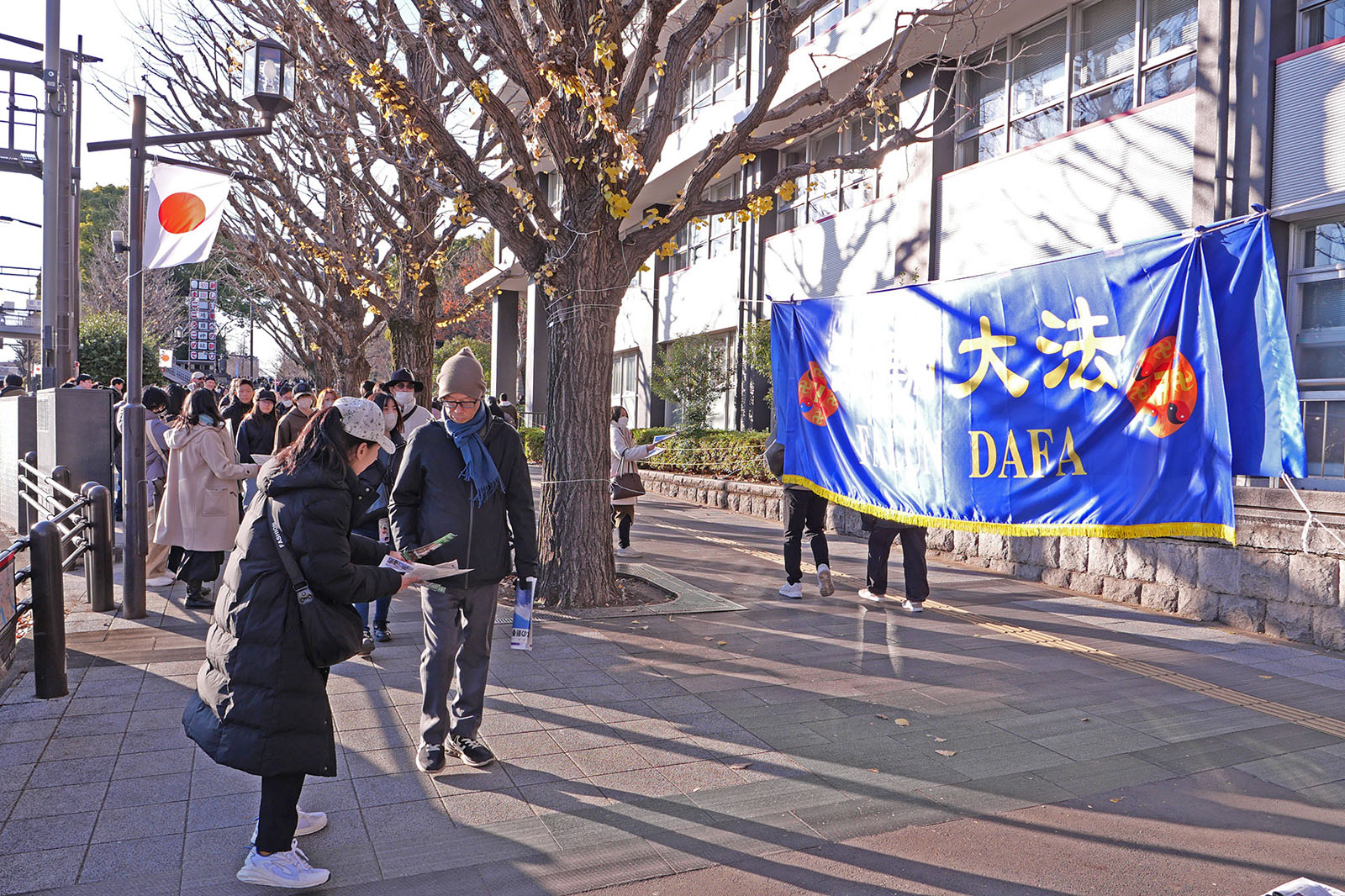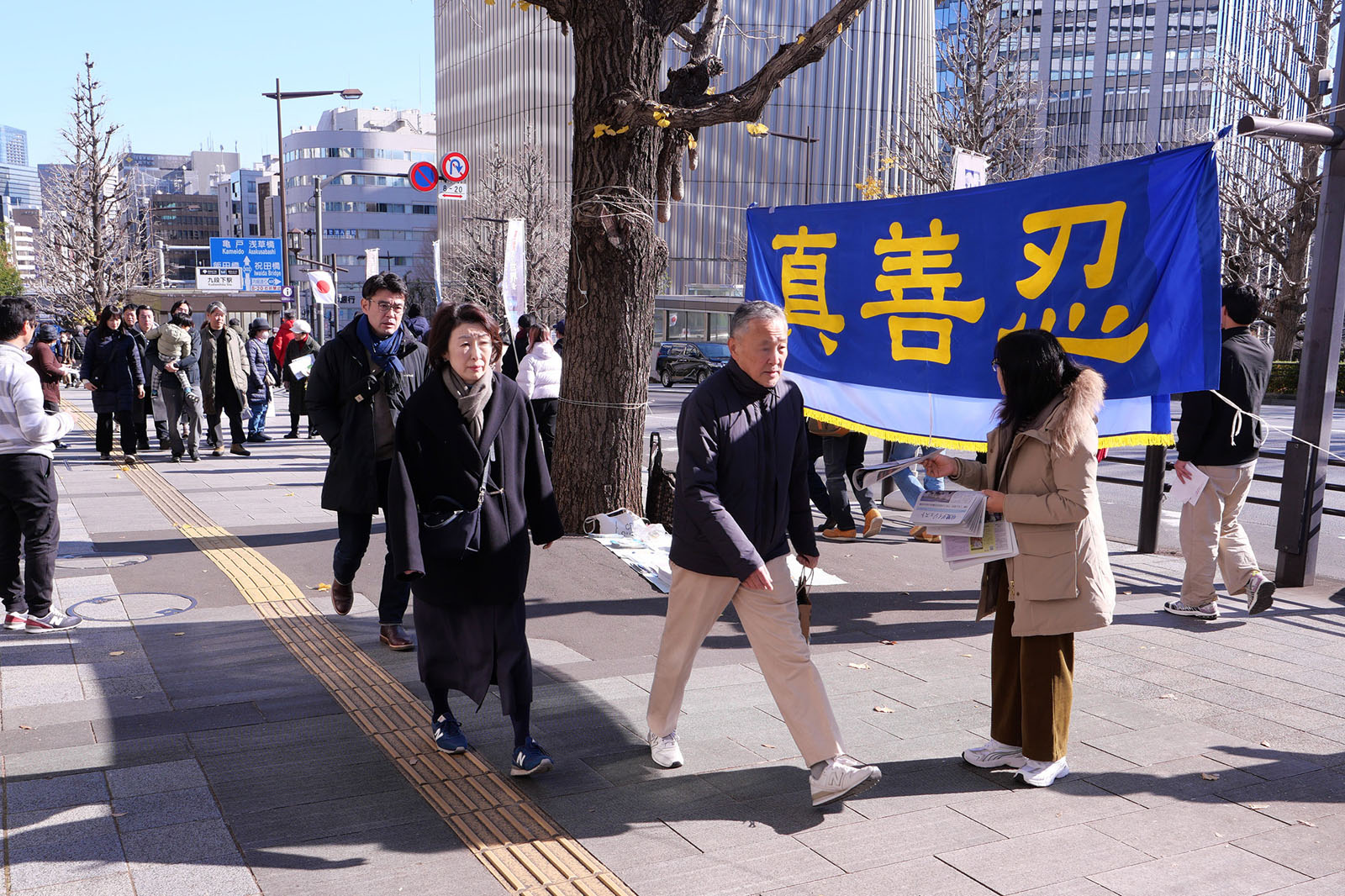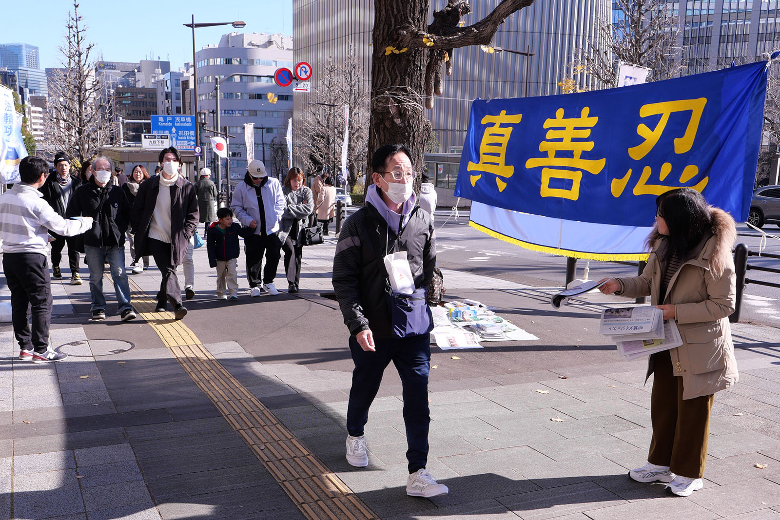 ![]() 图1~3:法轮功学员在东京九段下为前来初诣的民众派发资料讲真相。 |