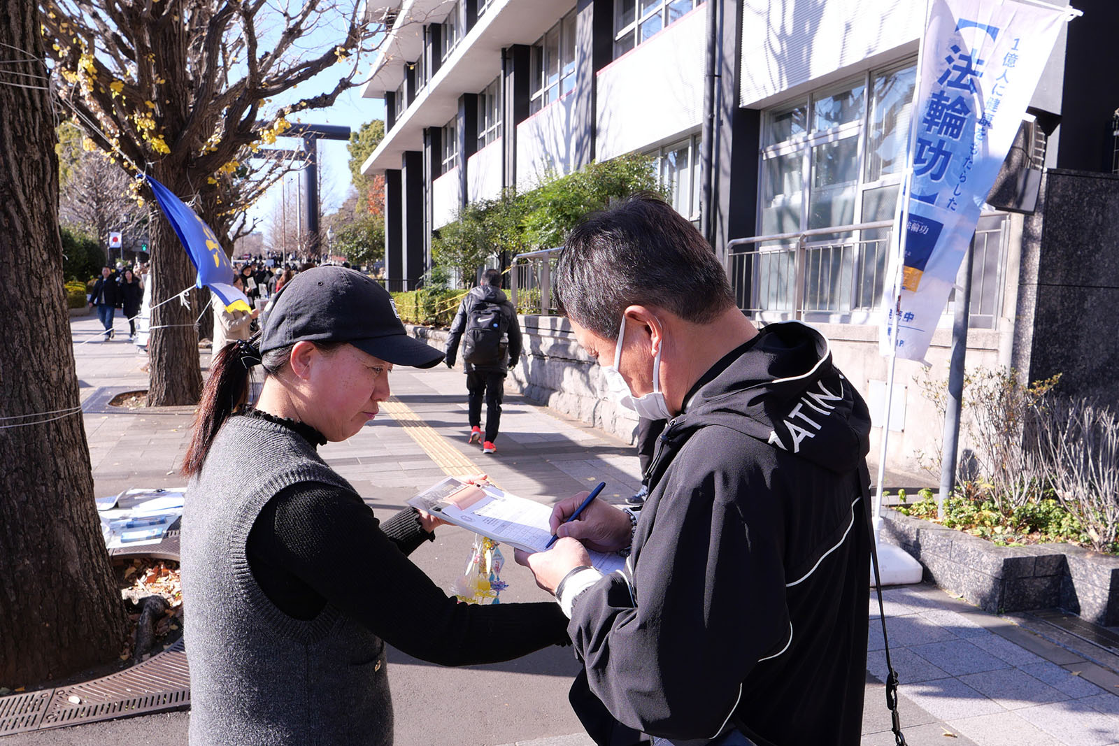 ![]() 图9:在反迫害征签上签名的铃木先生(左) |