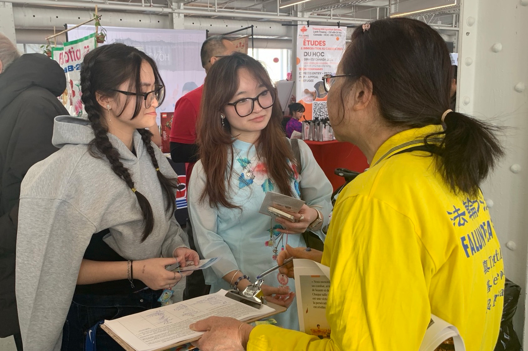 【明慧网二零二六年二月十一日】加拿大蒙特利尔(Montréal)越南社区于二零二六年二月八日在老港举行庆祝新年活动,法轮功学员受邀参加,与民众分享法轮大法的美好,受到欢迎。法轮大法真、善、忍的理念引起人们内心共鸣,民众有的想学功,有的表示支持法轮功学员反迫害