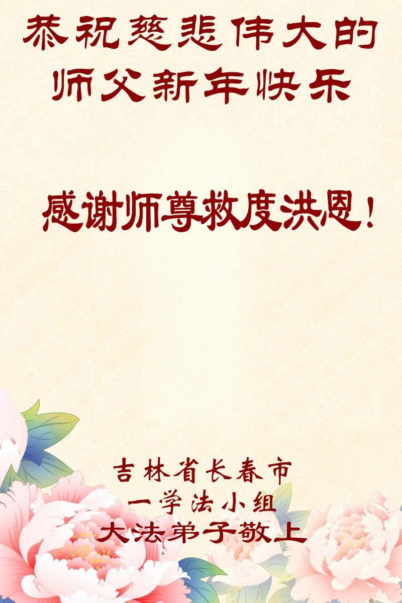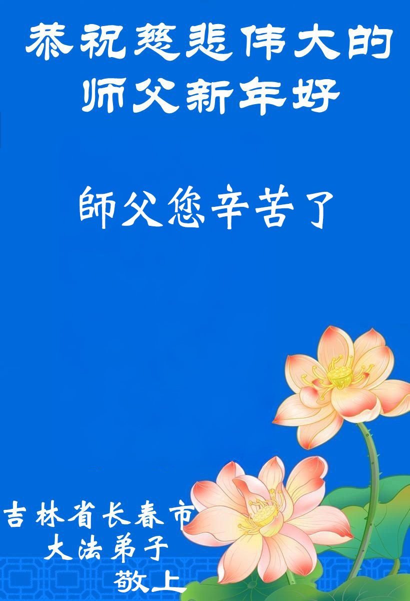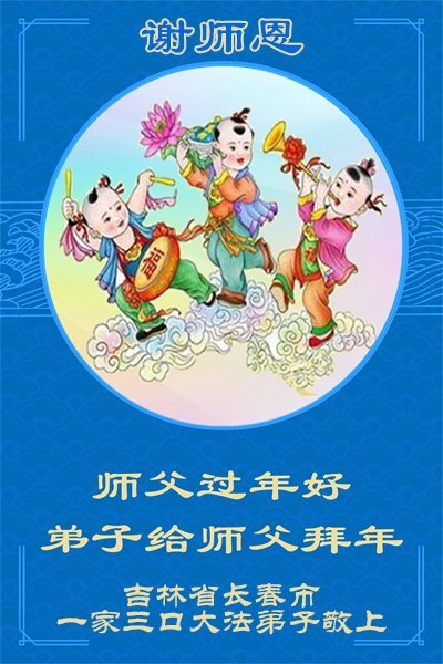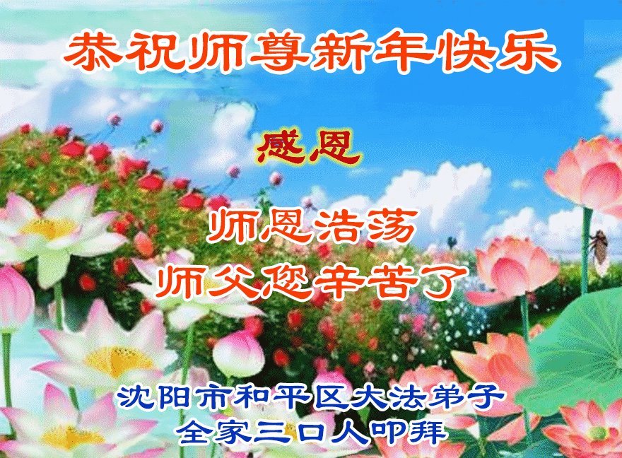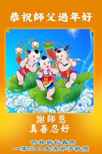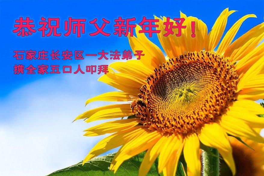 感恩师父多年来对我们全家人的保护!在师父的护佑下,这些年我们全家人都健康、平安、幸福、事事顺利!我虽然没有修炼,但我坚信大法好!天天诚心诵念:“法轮大法好,真善忍好”。新年之际,我代表全家人给师父拜年!师父过年好!师父辛苦了!
