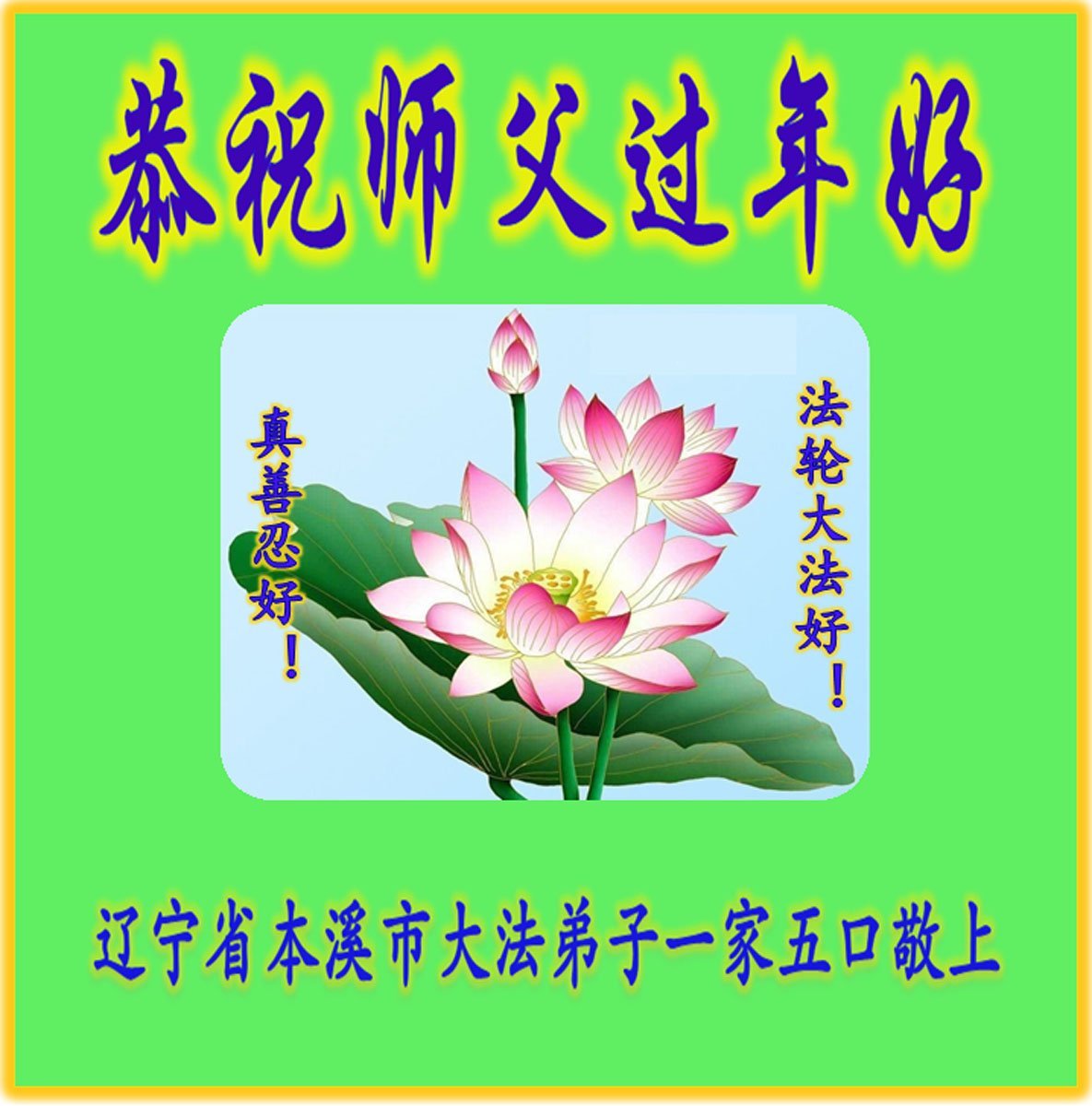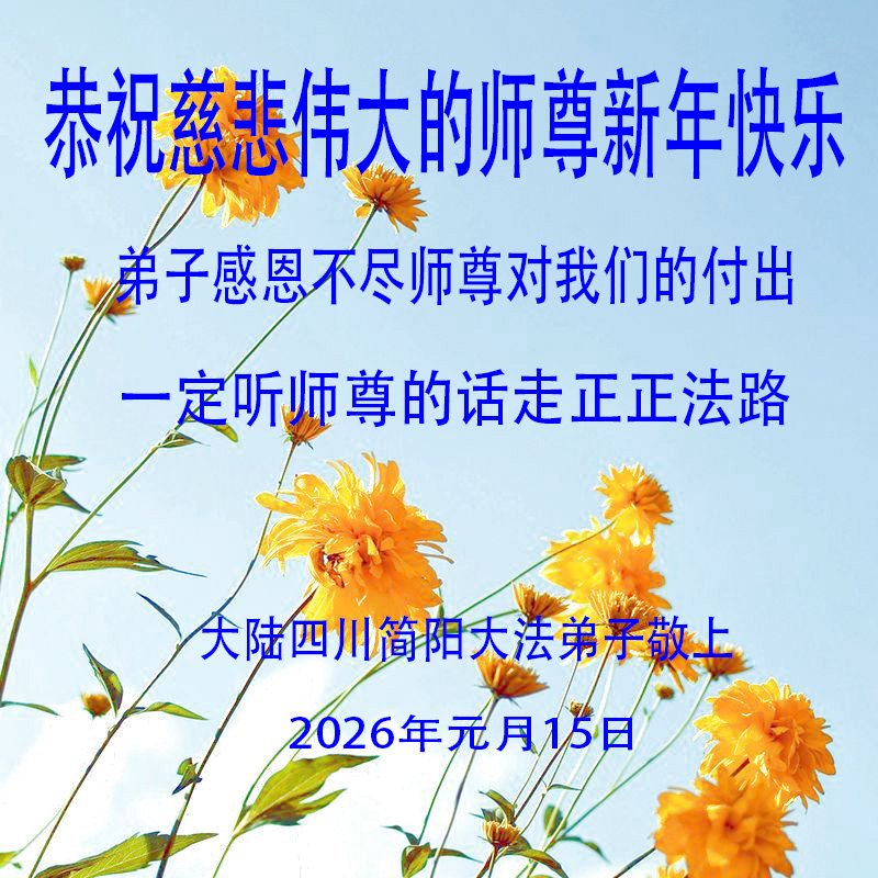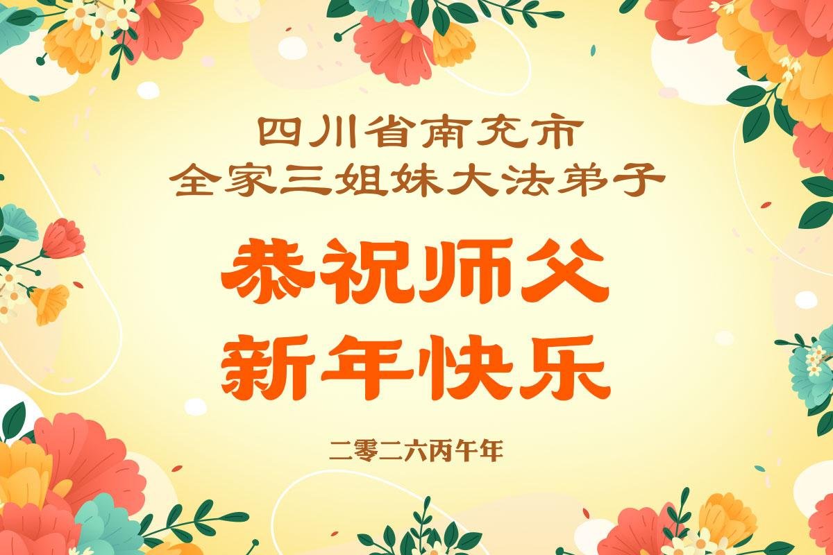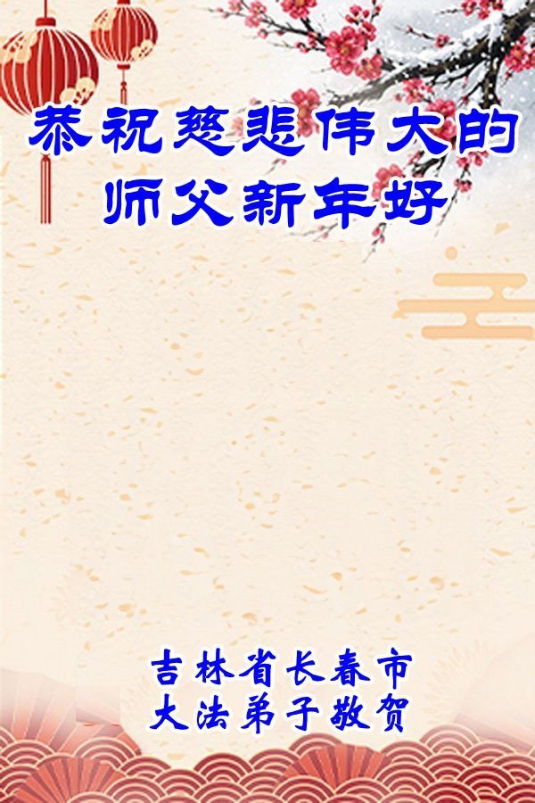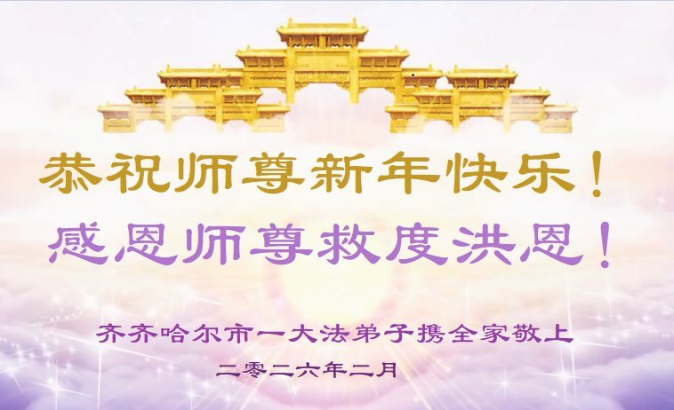 感恩师父多年来对我们全家人的保护!在师父的护佑下,这些年我们全家人都健康、平安、幸福、事事顺利!我虽然没有修炼,但我坚信大法好!天天诚心诵念:“法轮大法好,真善忍好”。新年之际,我代表全家人给师父拜年!师父过年好!师父辛苦了!