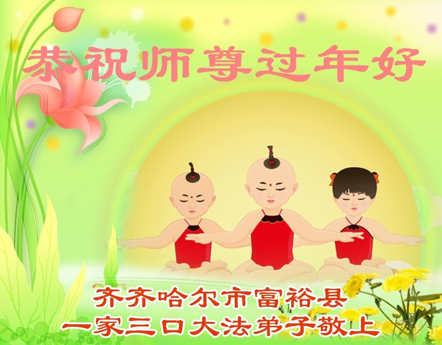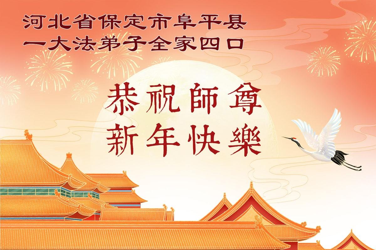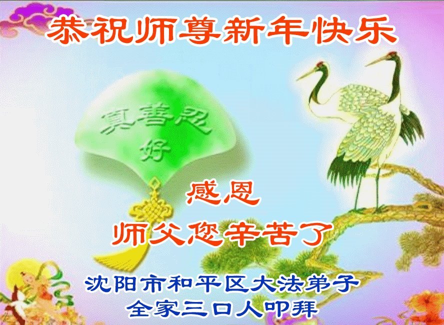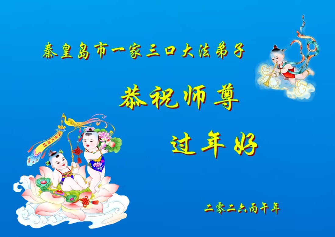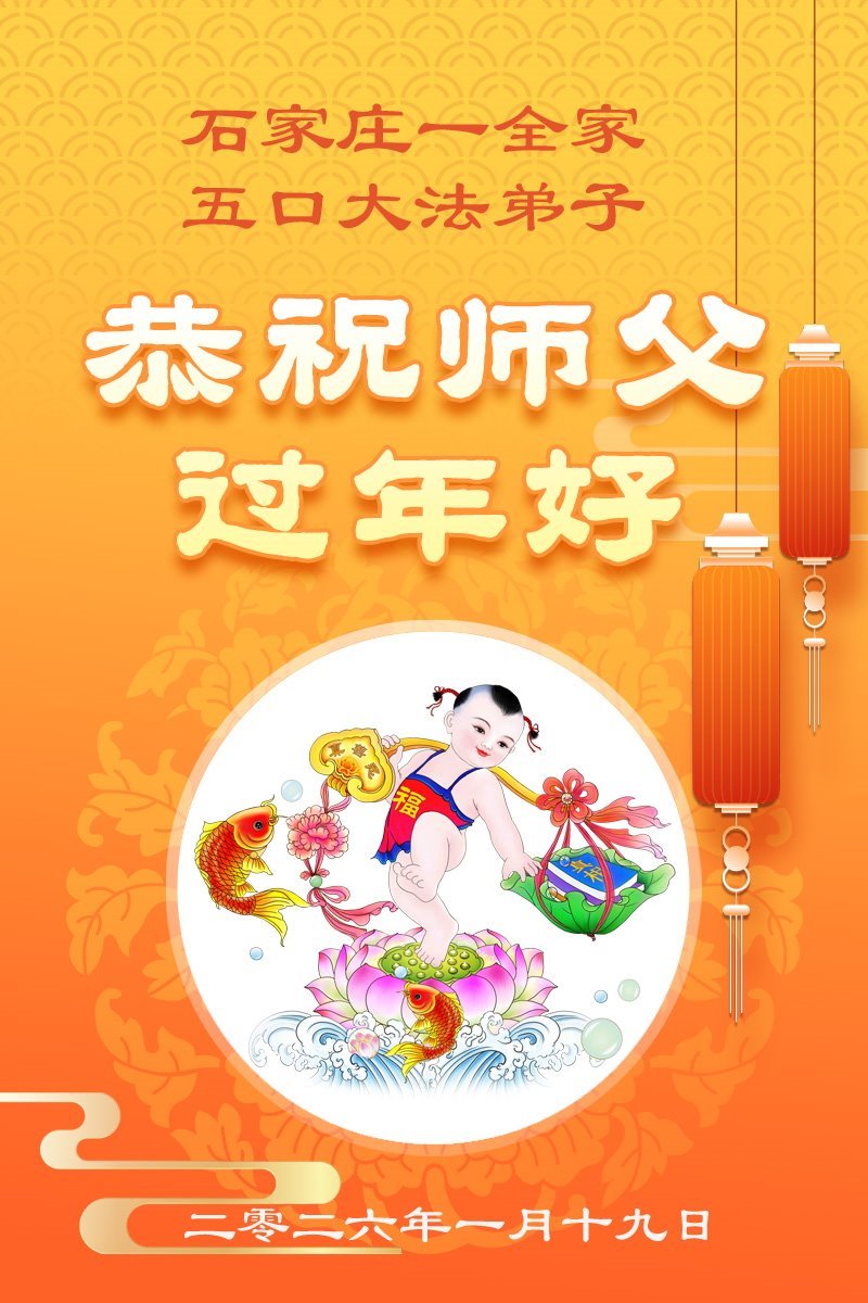 我们作为大法弟子的家属给您拜年了,恭祝李大师过年好!您为世人的安危操尽了心,吃尽了苦头,我们大法弟子的家属是亲身受益者,也是见证者,真是用尽千言万语也表达不了对您的感恩!今生我们能成为大法弟子的家属感到万分荣幸,我们只有继续支持家人修炼,理智、智慧地讲真相、多救人,希望更多的家庭象我家一样得到李大师的护佑,平平安安的度过这不平凡的一年又一年。感谢李大师的护佑!
