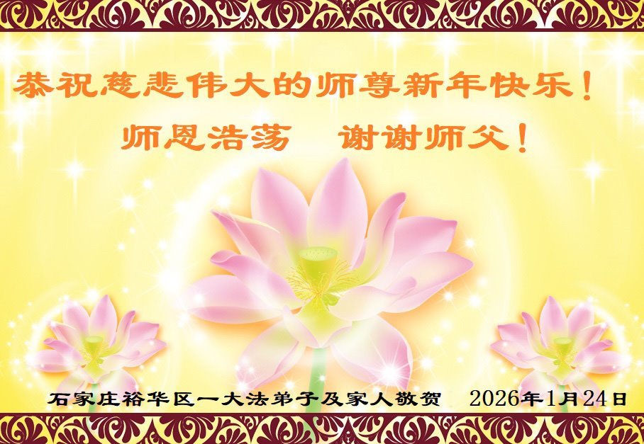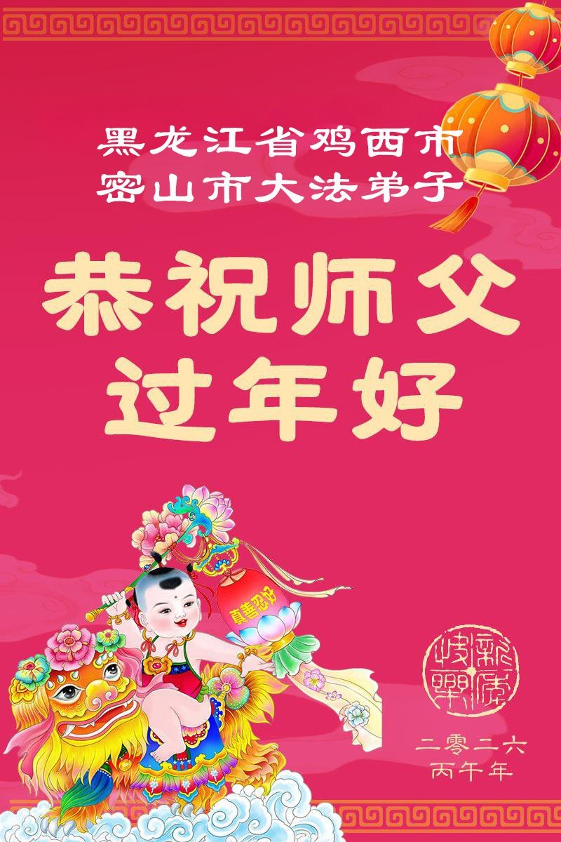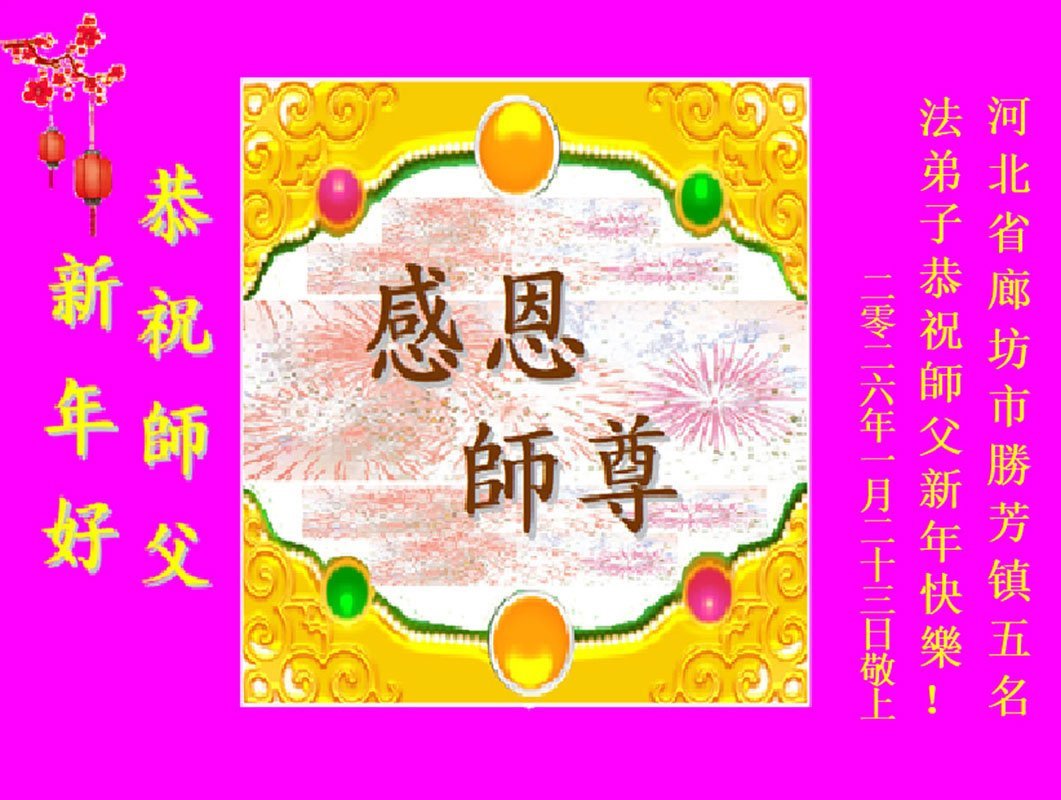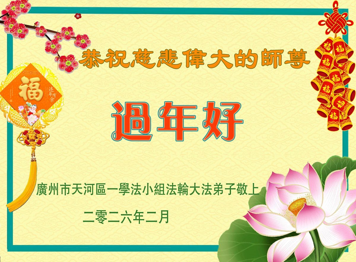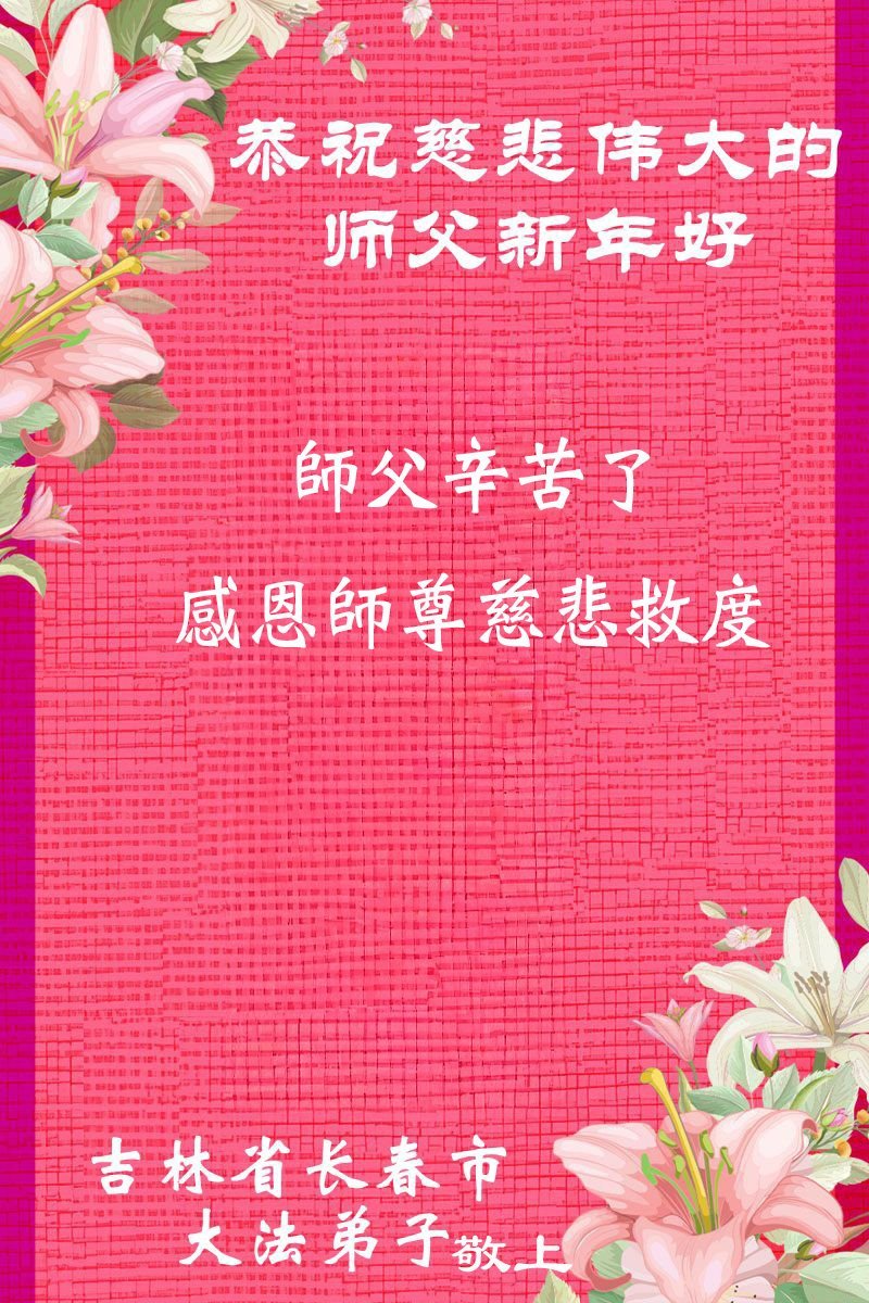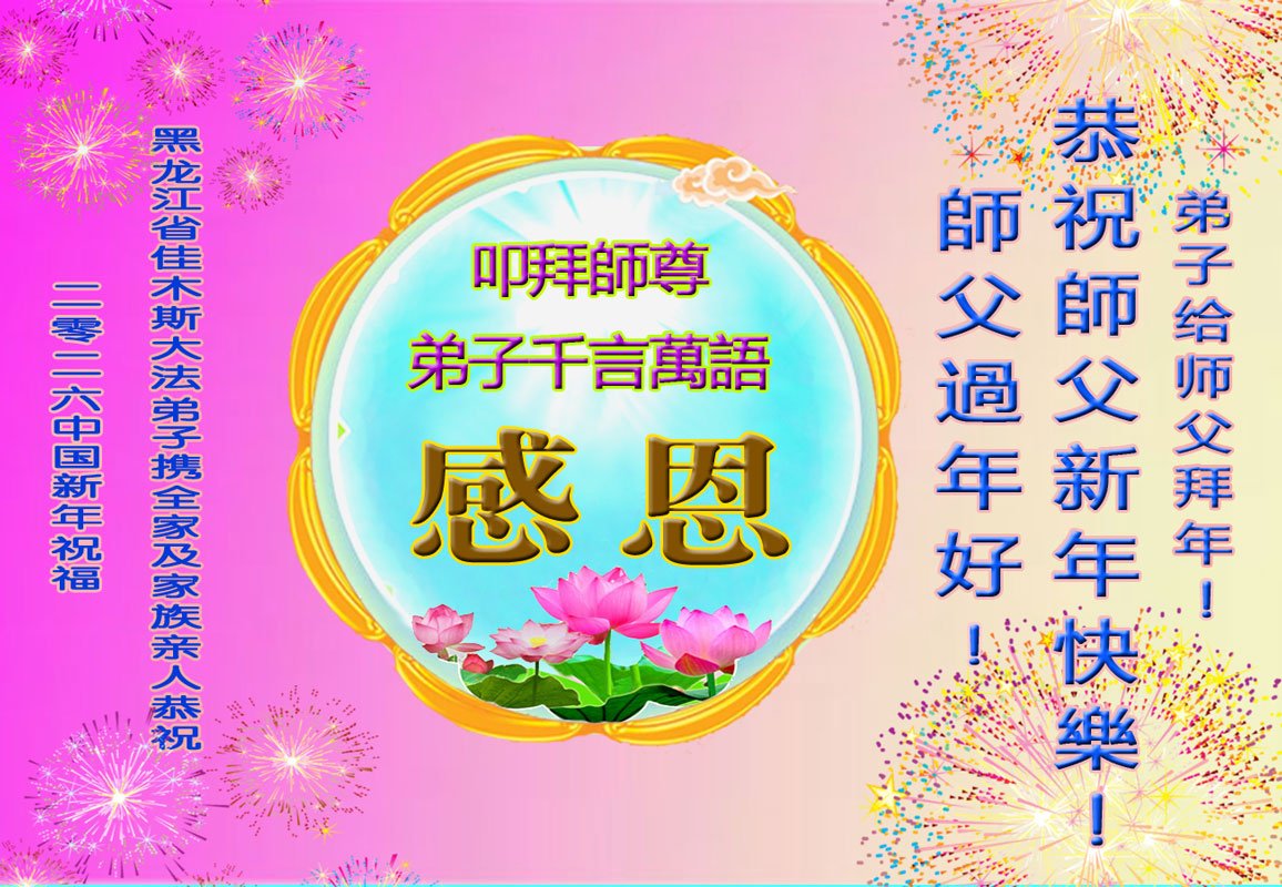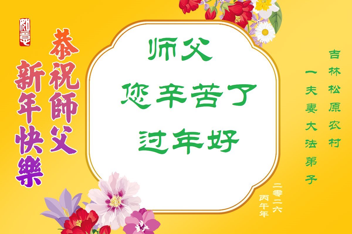 在丙午年中国传统新年即将来临之际,沐浴在大法洪恩中的善良百姓,怀着最真挚的心意,向李洪志大师表达他们深深的感恩与祝福。