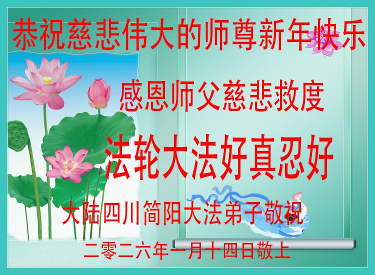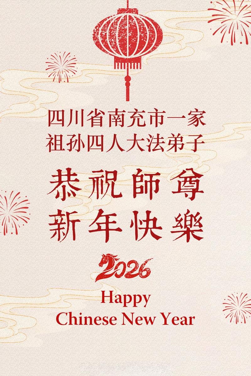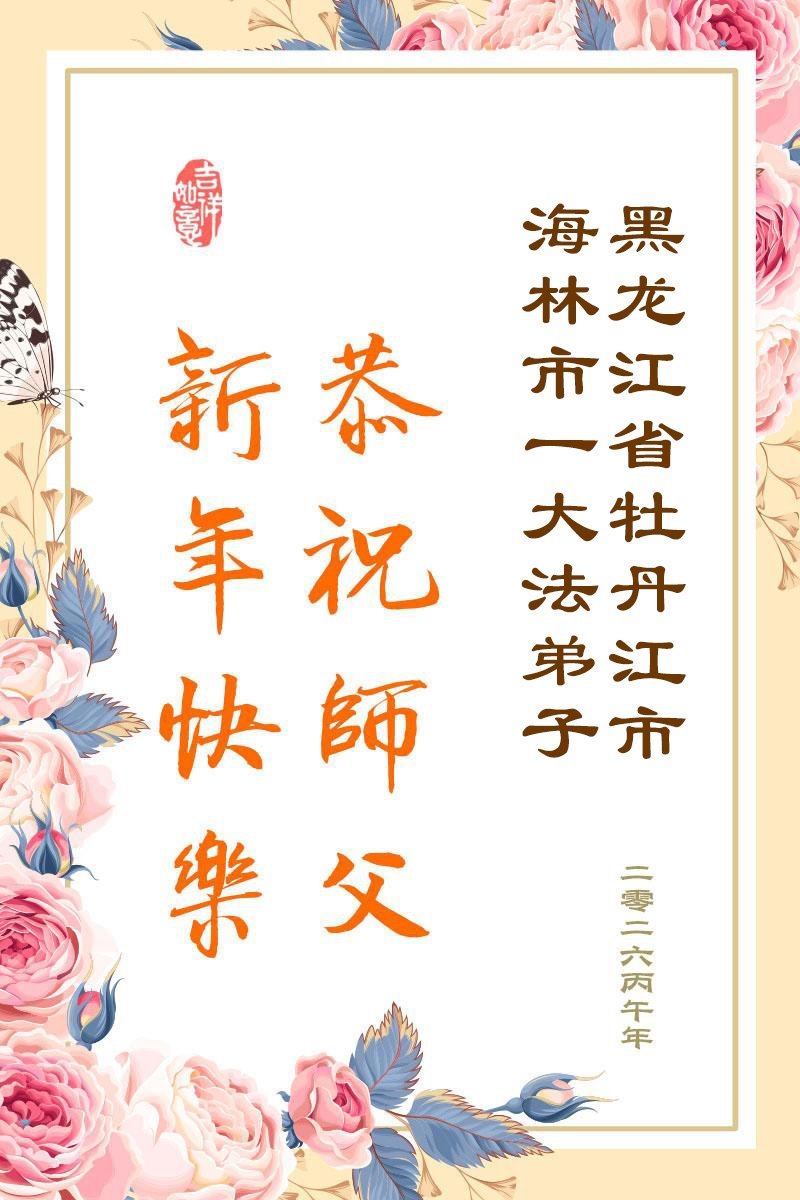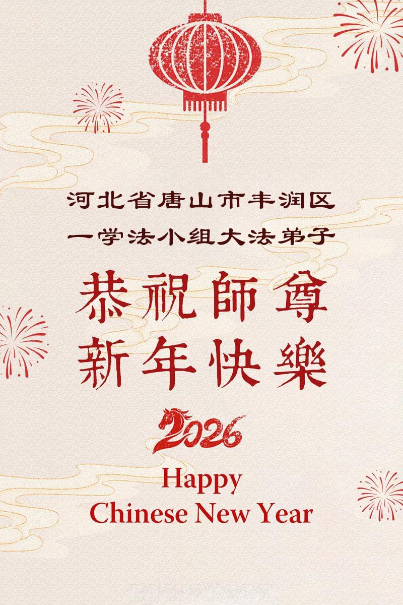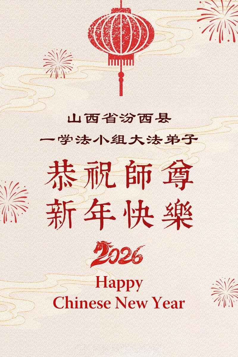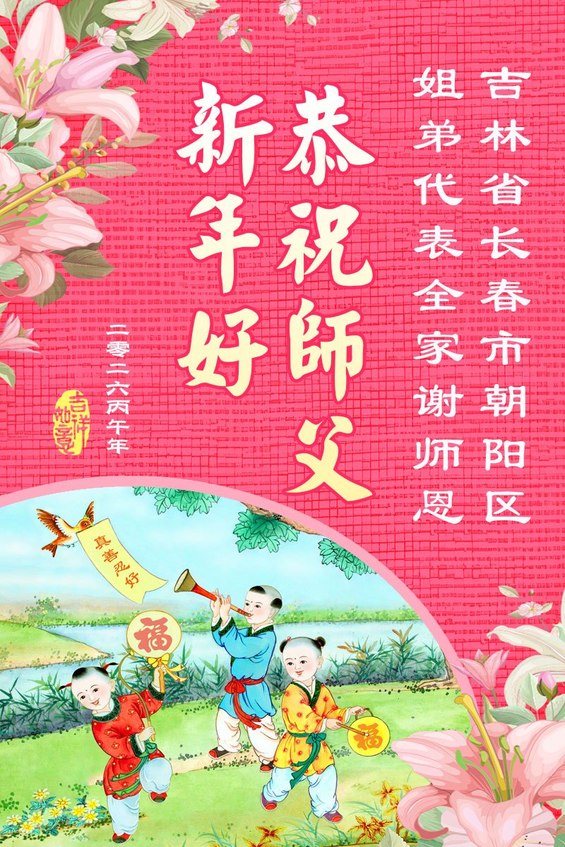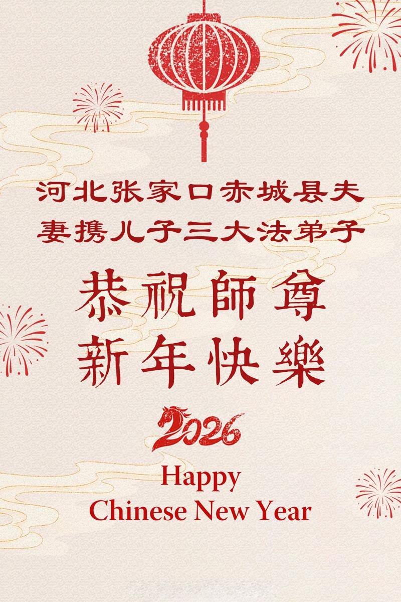 在丙午年中国传统新年即将来临之际,沐浴在大法洪恩中的善良百姓,怀着最真挚的心意,向李洪志大师表达他们深深的感恩与祝福。