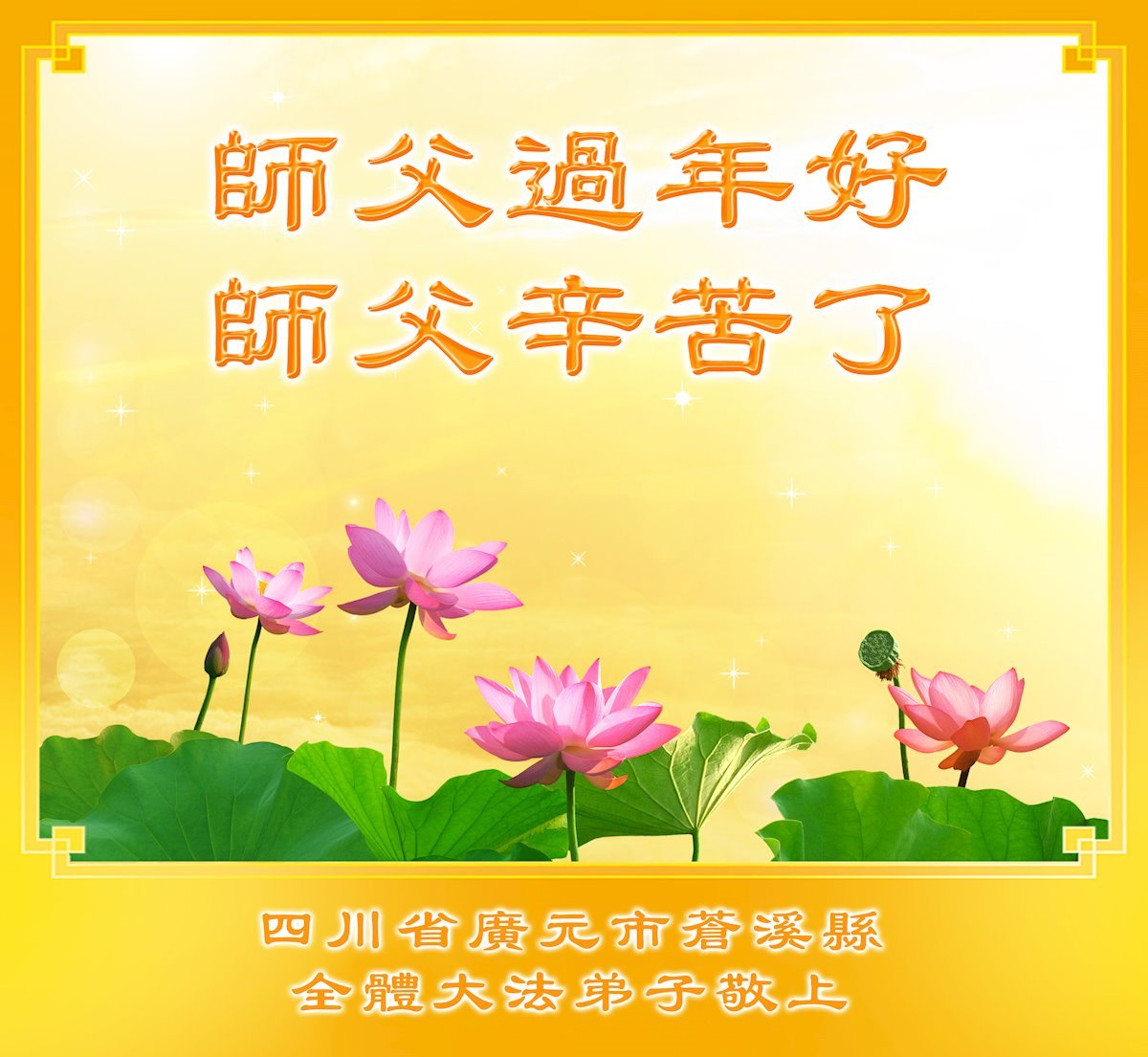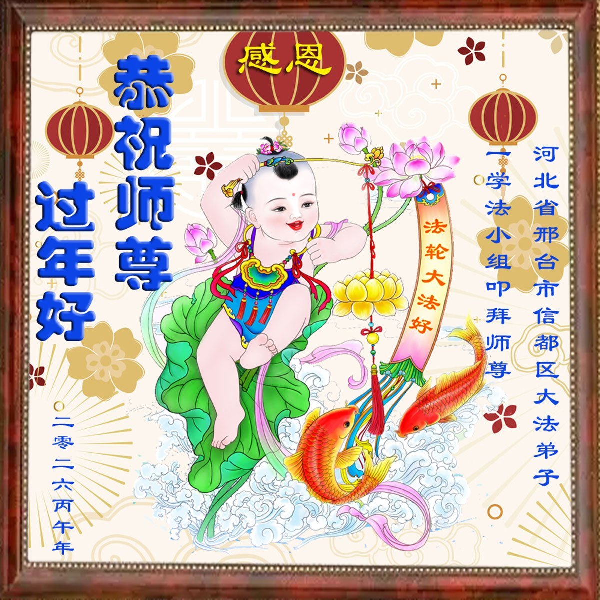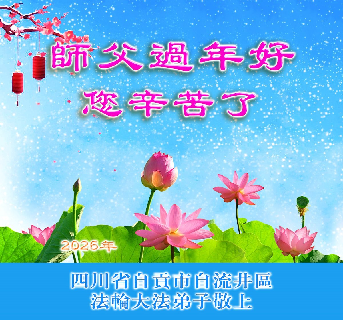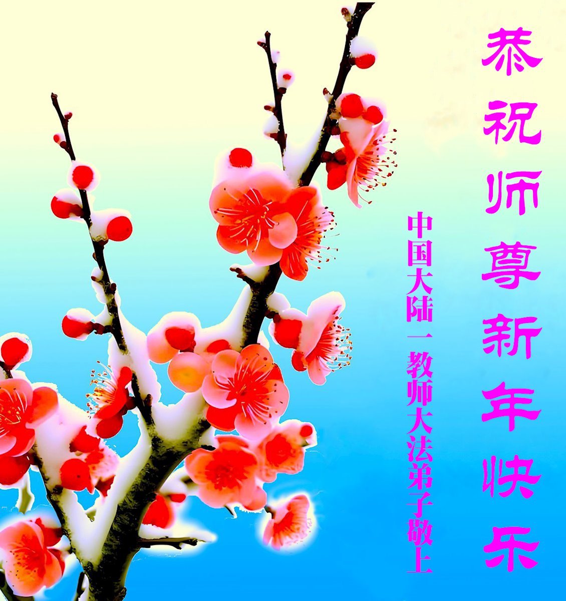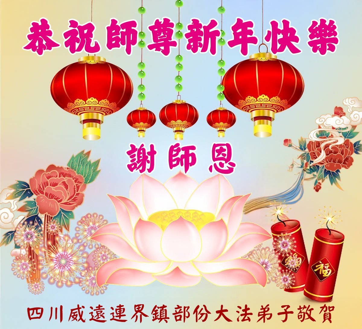 在丙午年中国传统新年即将来临之际,沐浴在大法洪恩中的善良百姓,怀着最真挚的心意,向李洪志大师表达他们深深的感恩与祝福。