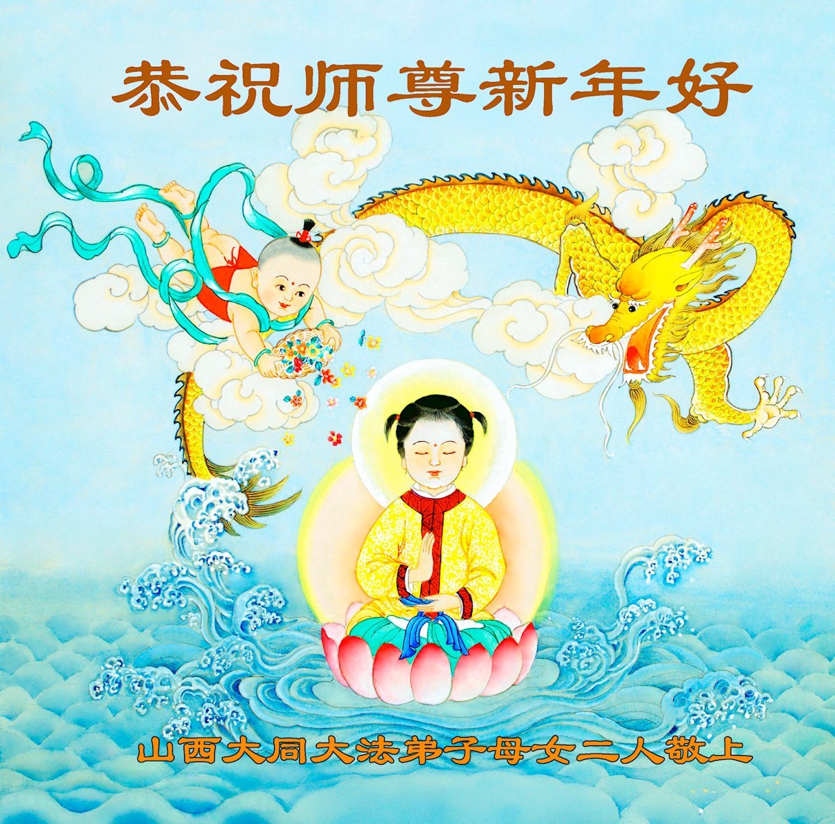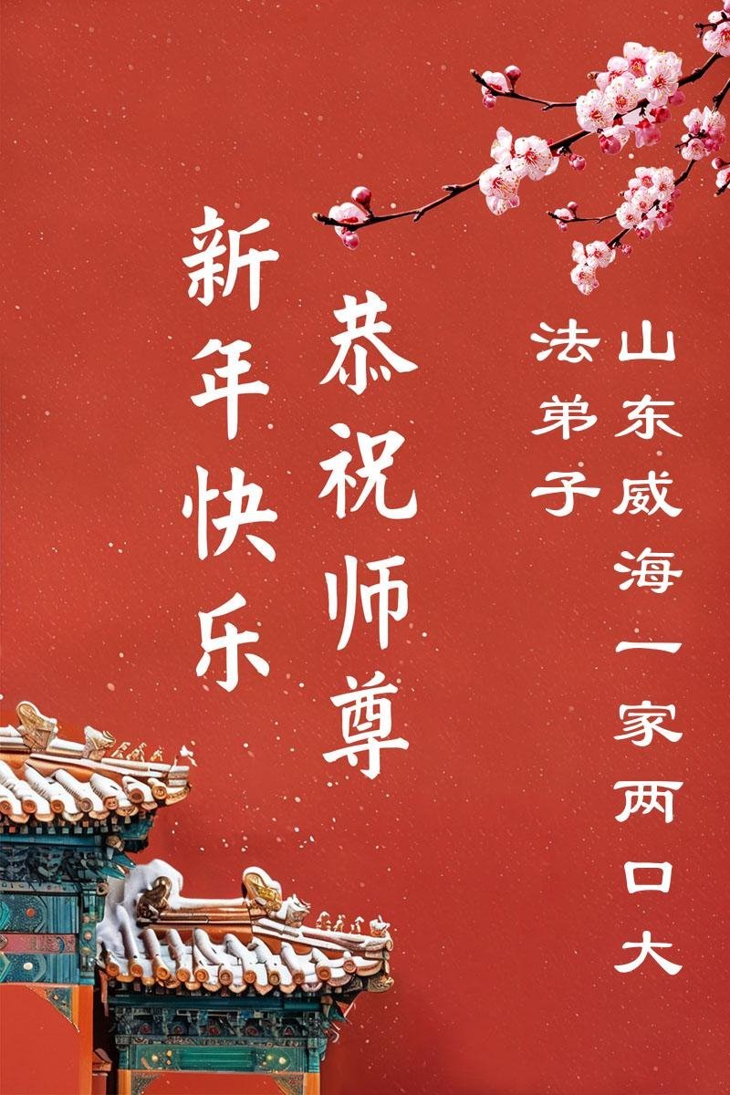 大年到来之际,我与全家人给师父拜年,恭祝师父过年好!在您慈悲救度的浩荡洪恩中,让我明白了普世的价值,知道了在这浊世中守住人的善,谢谢您的迷途引领、慈悲的呼唤,师父您辛苦了!