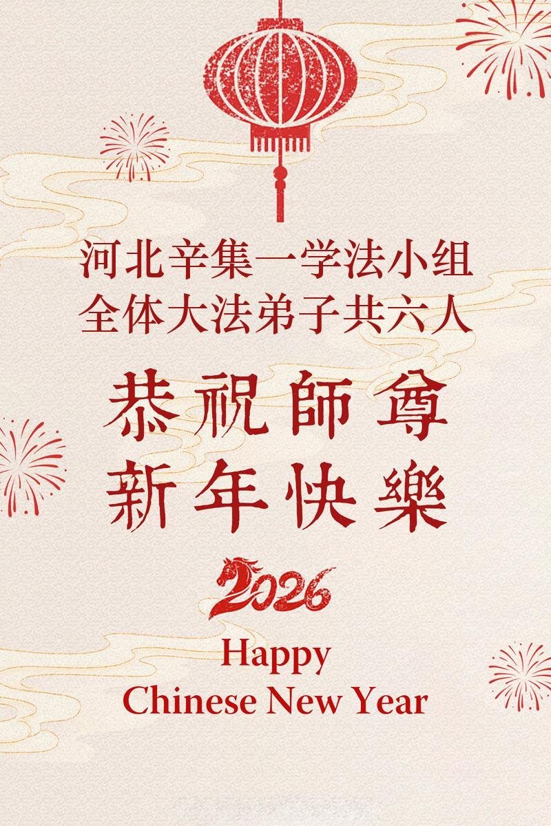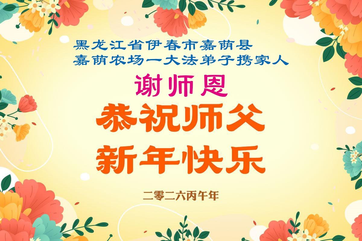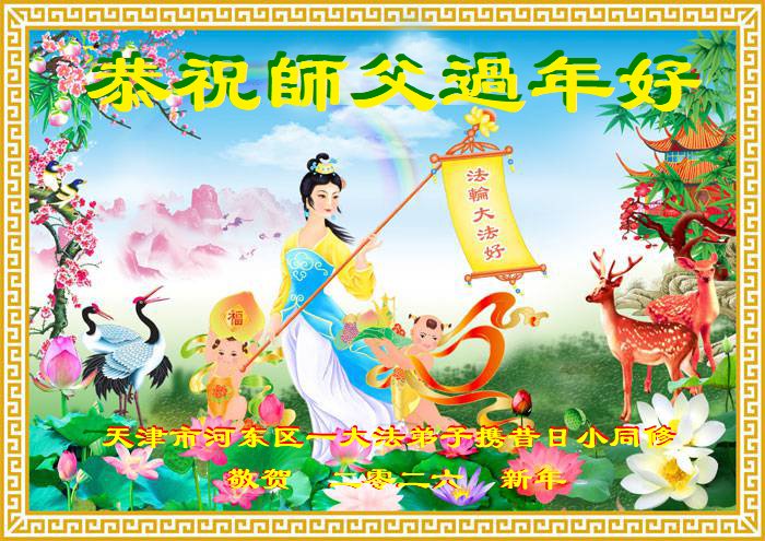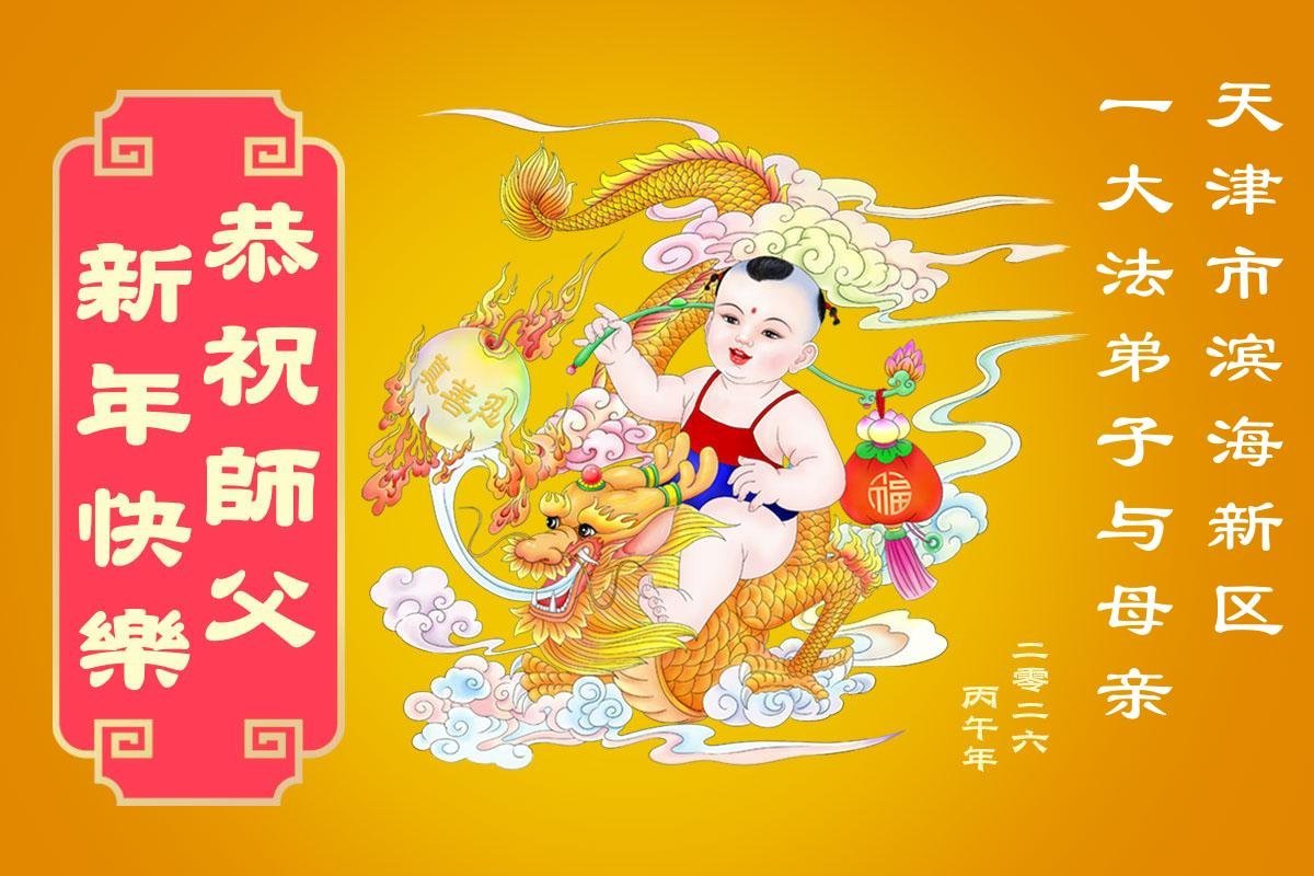 天津市武清区东马圈镇一名大法弟子携全家恭祝慈悲伟大的师尊新年快乐!
