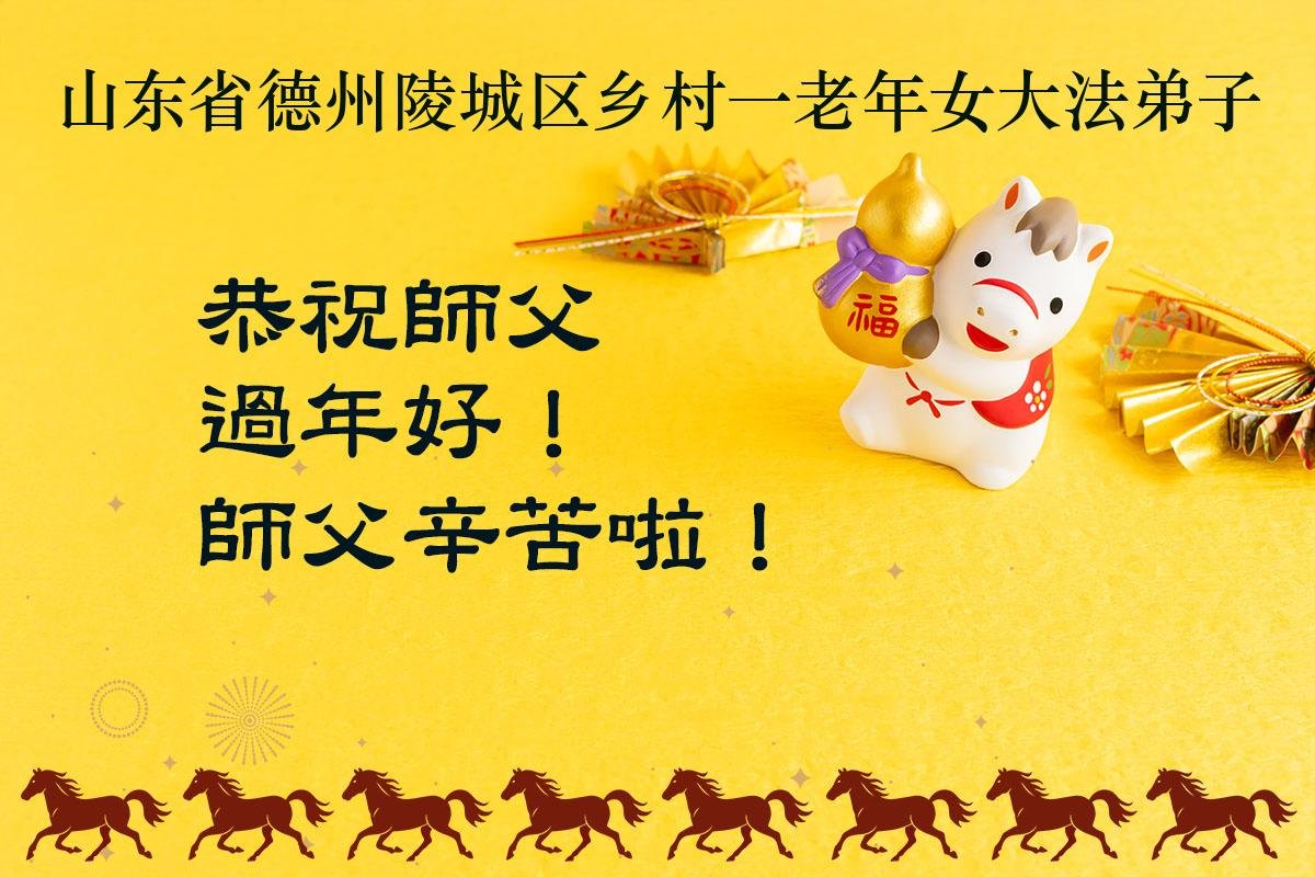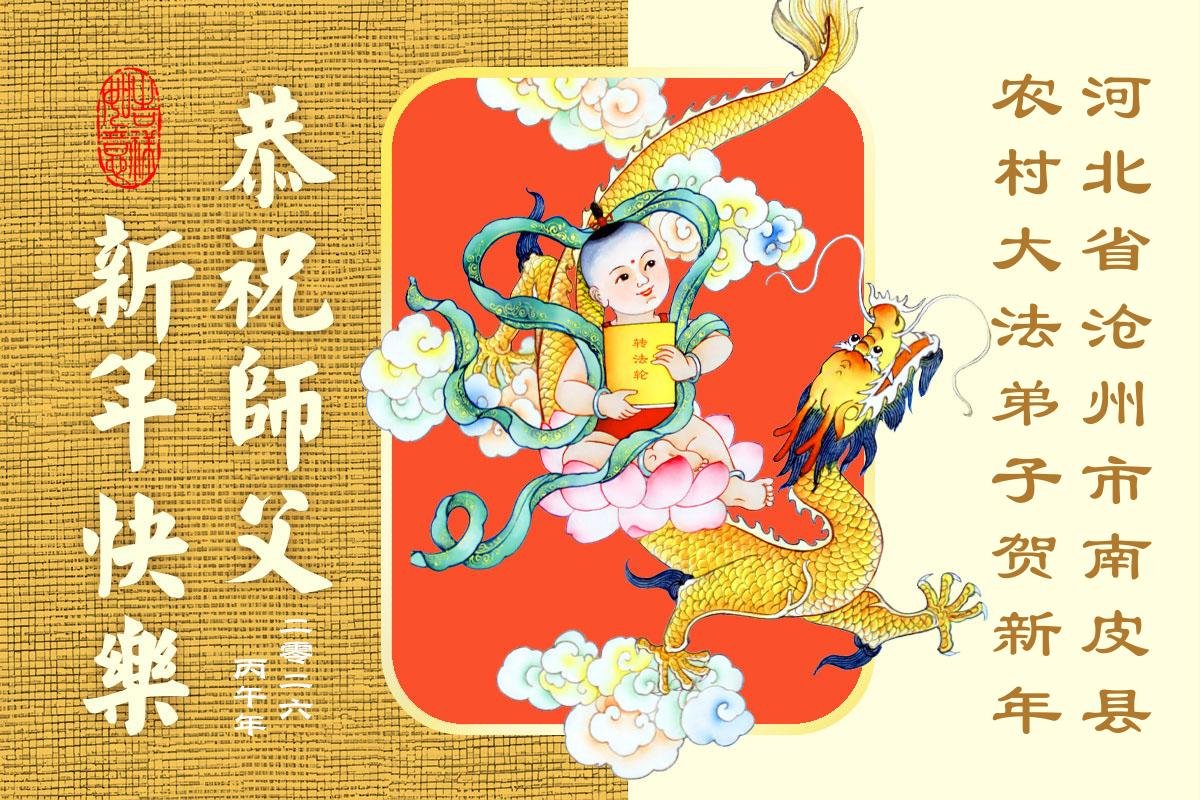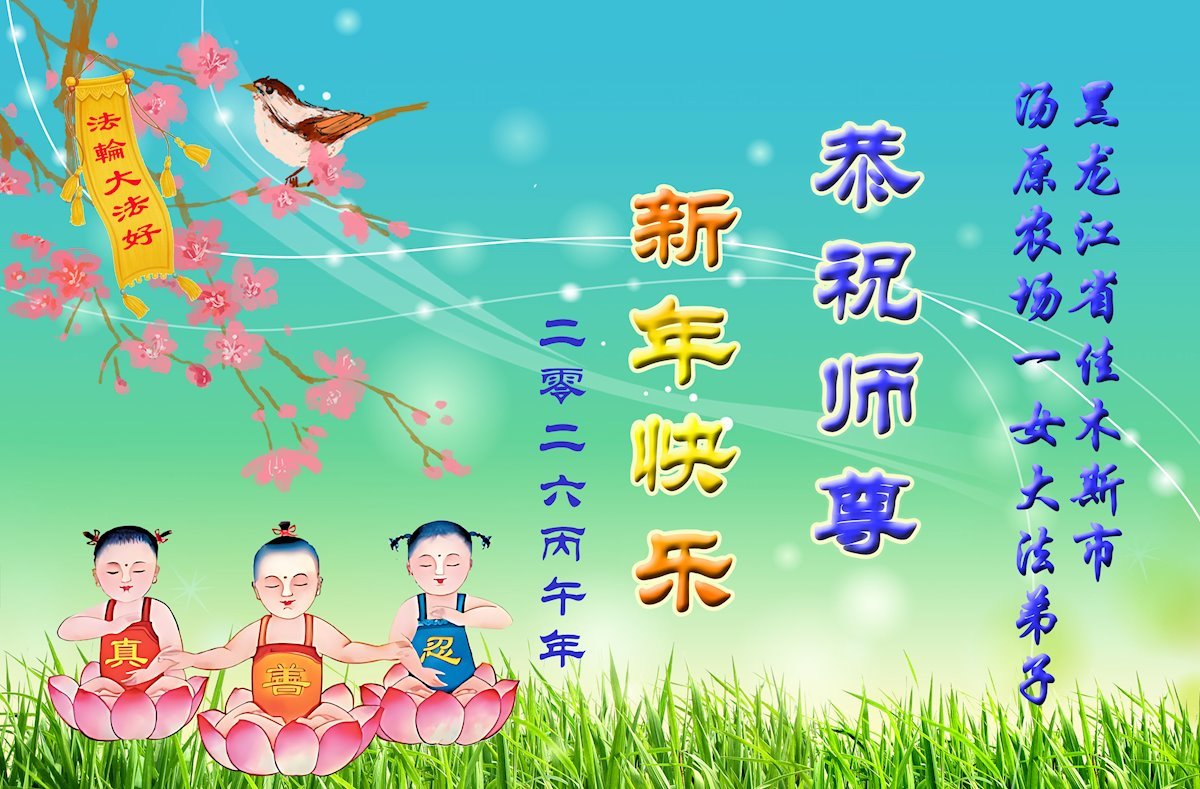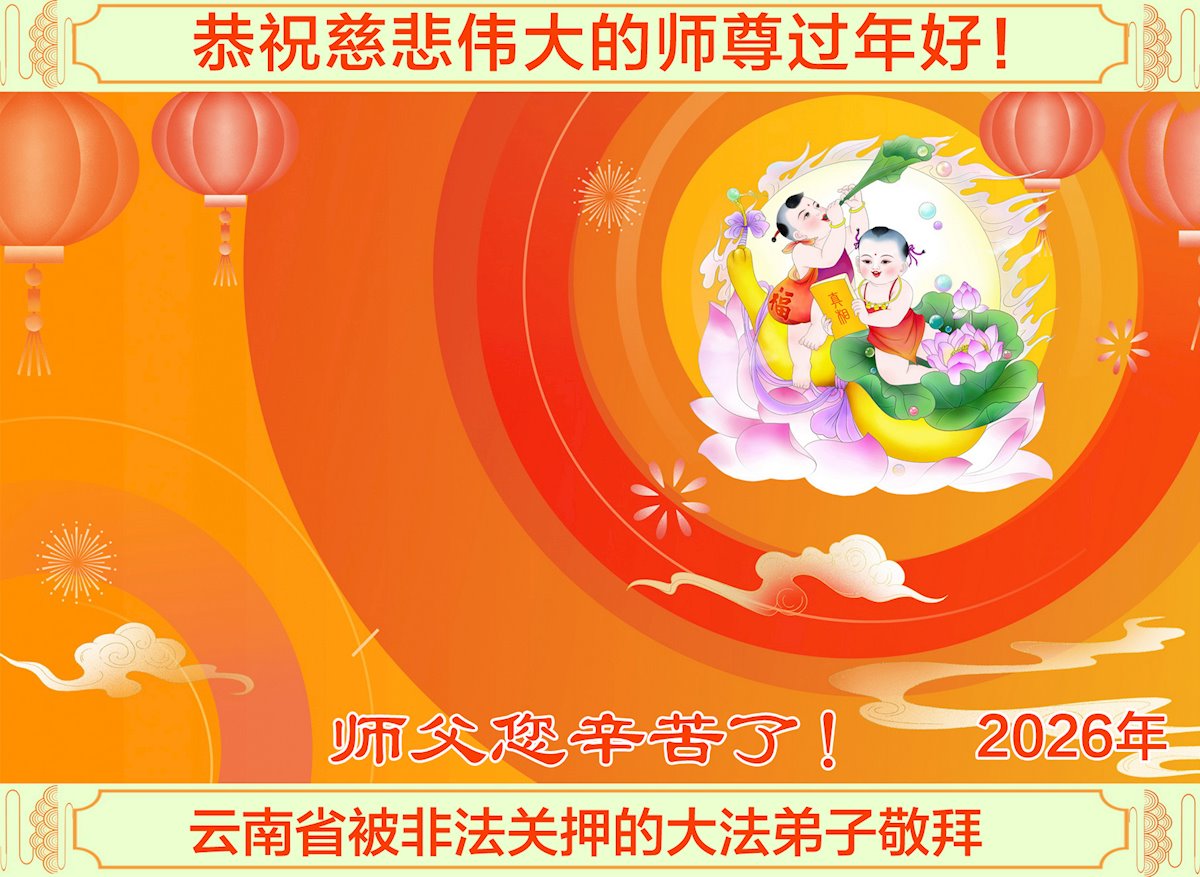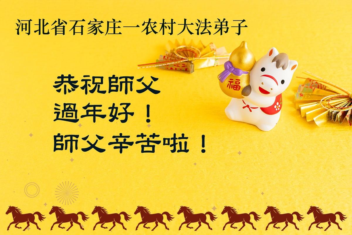 我们这些乡下人不认识几个字,不知道怎样才能表达出我对您的感恩。新年到了,我们要对您说一声:谢谢您,慈悲伟大的大法师父!世人有救了,您是我们得救的唯一希望!法轮大法好,真善忍好!