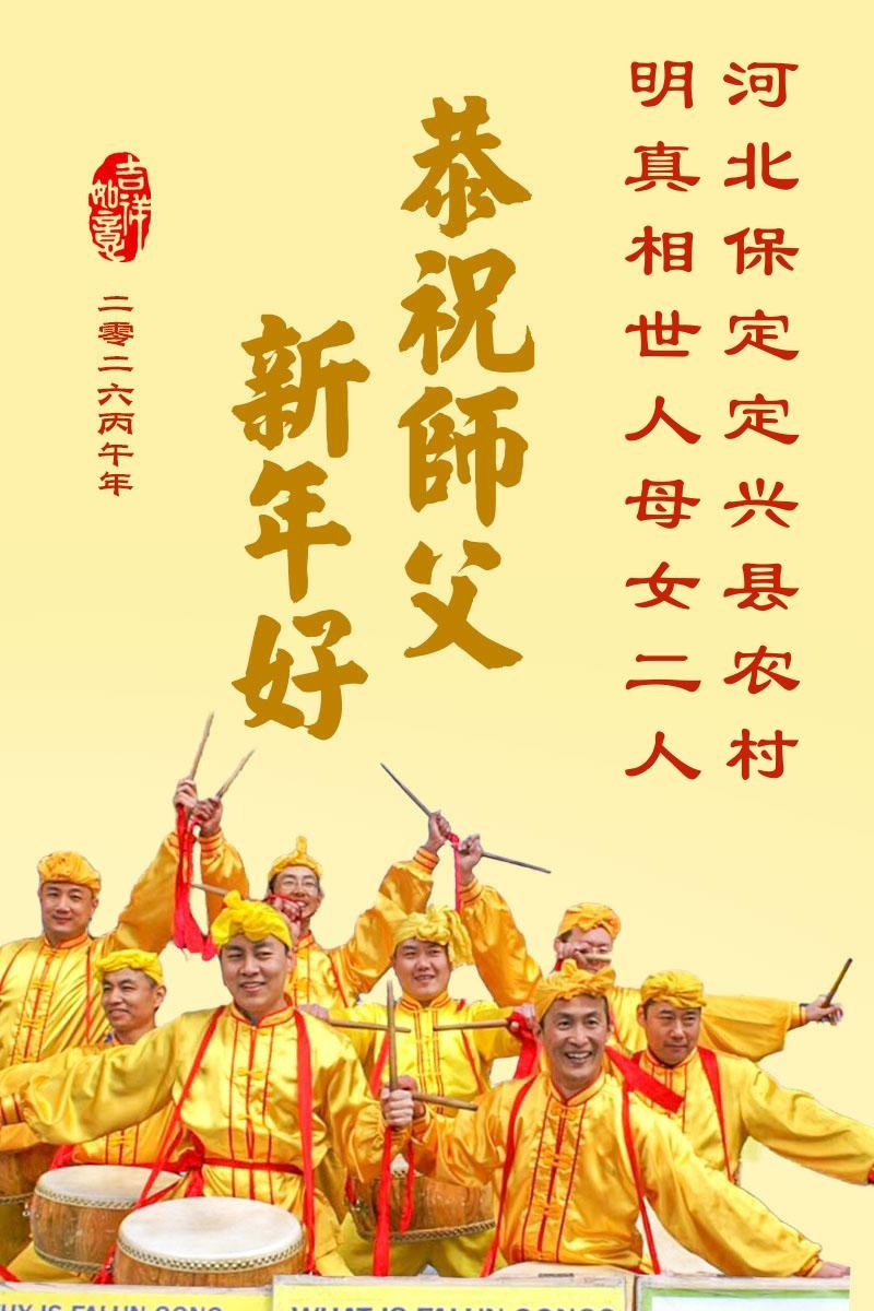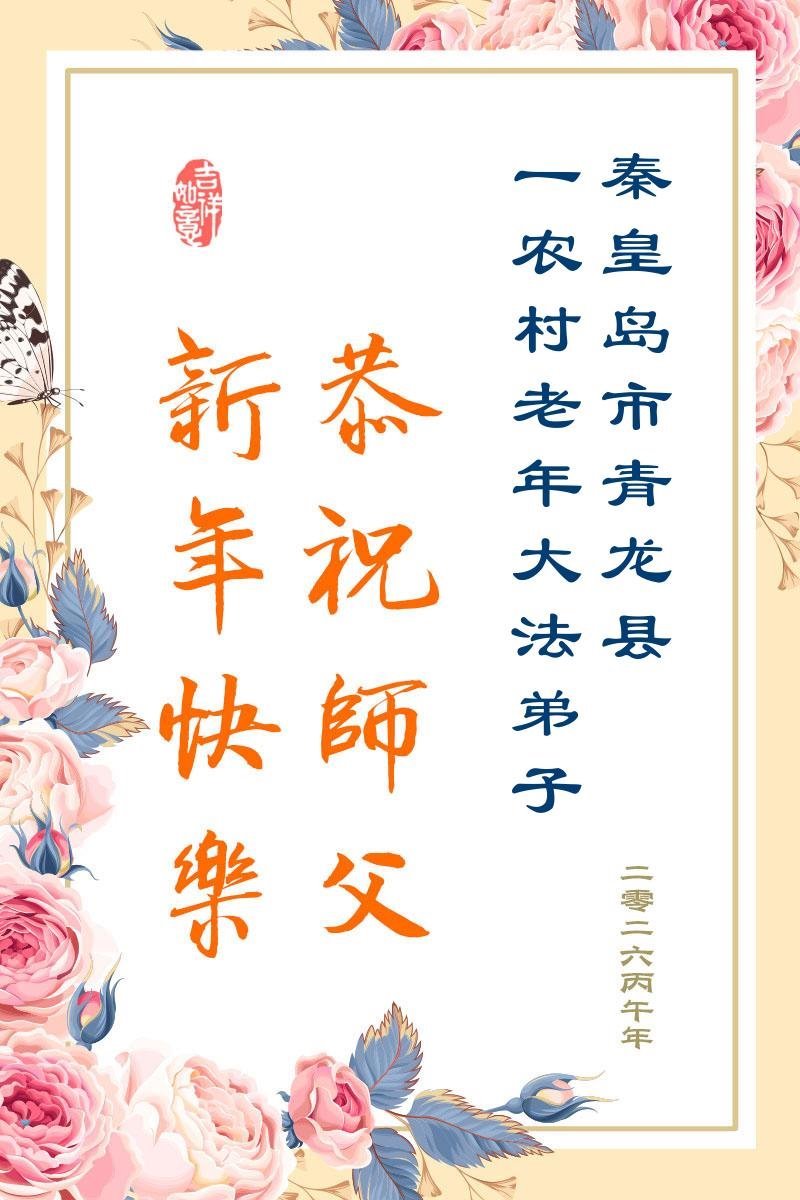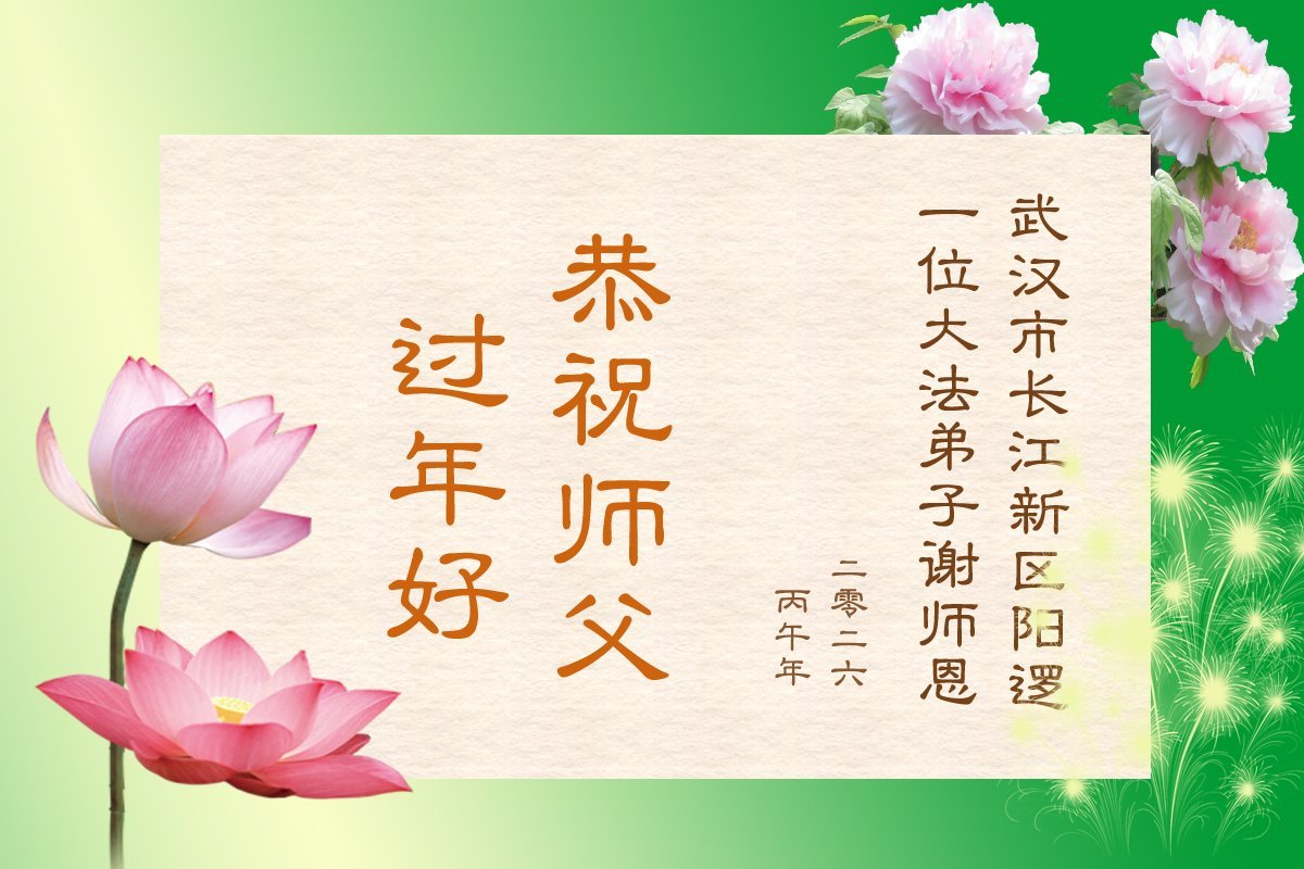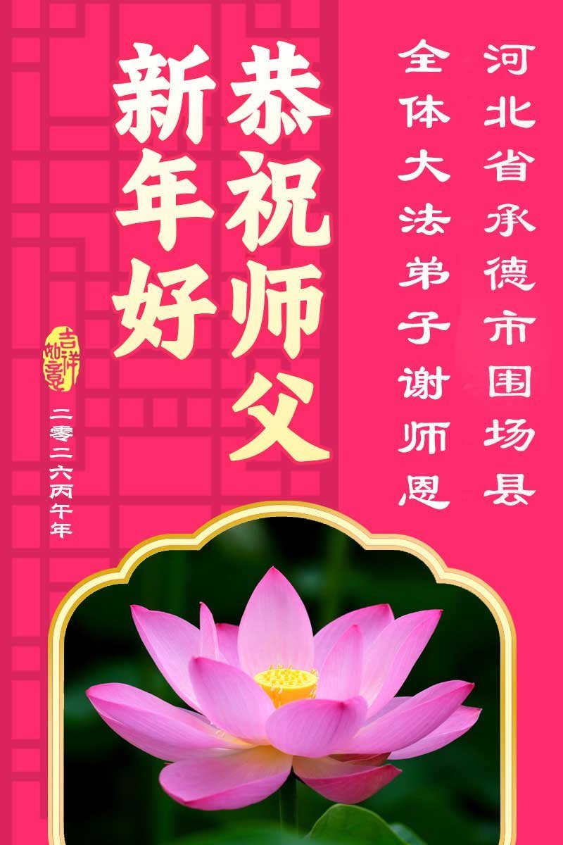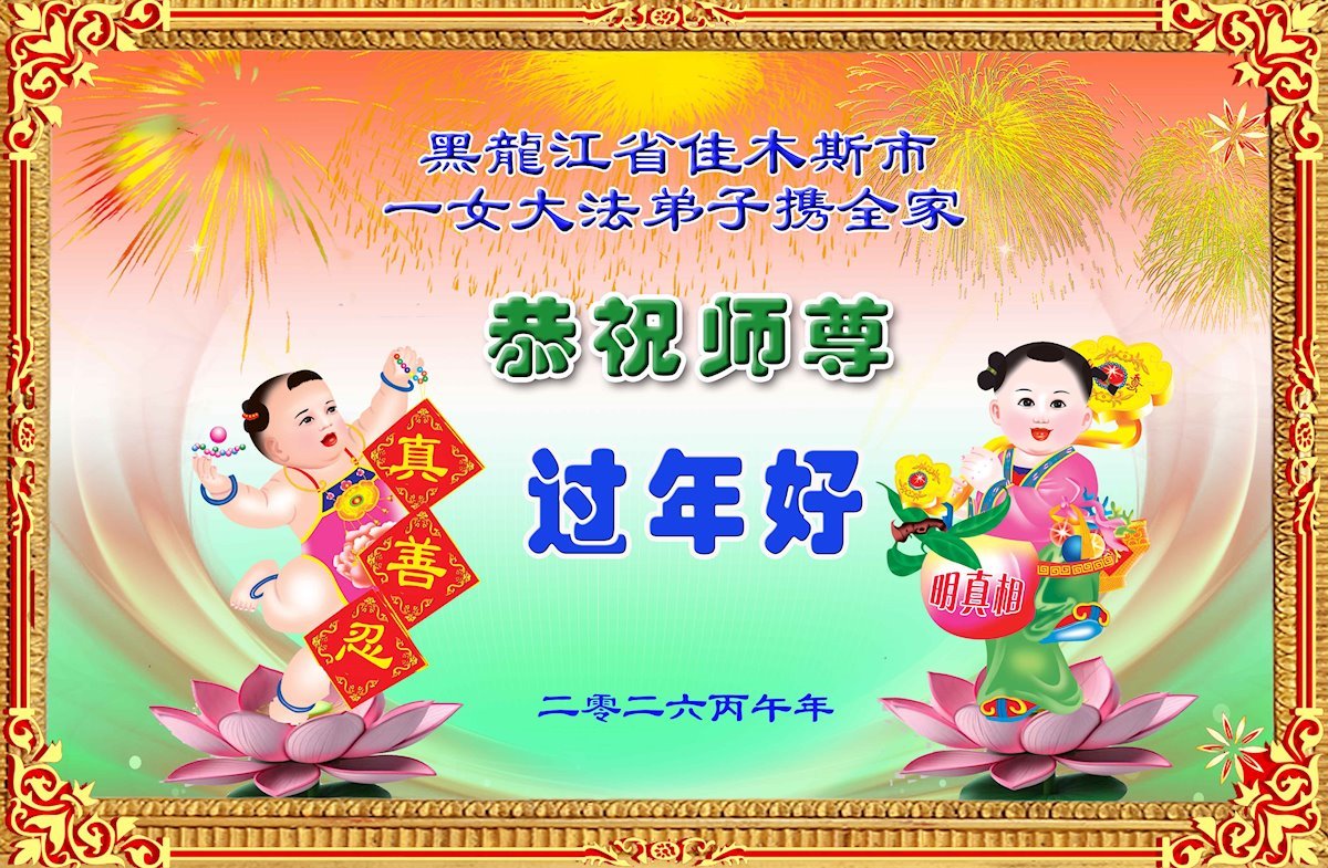 我们这些乡下人不认识几个字,不知道怎样才能表达出我对您的感恩。新年到了,我们要对您说一声:谢谢您,慈悲伟大的大法师父!世人有救了,您是我们得救的唯一希望!法轮大法好,真善忍好!