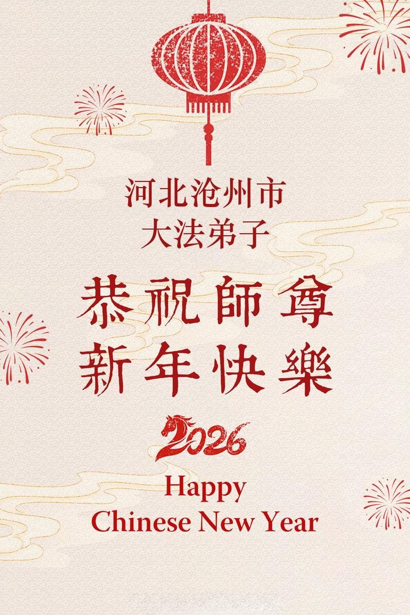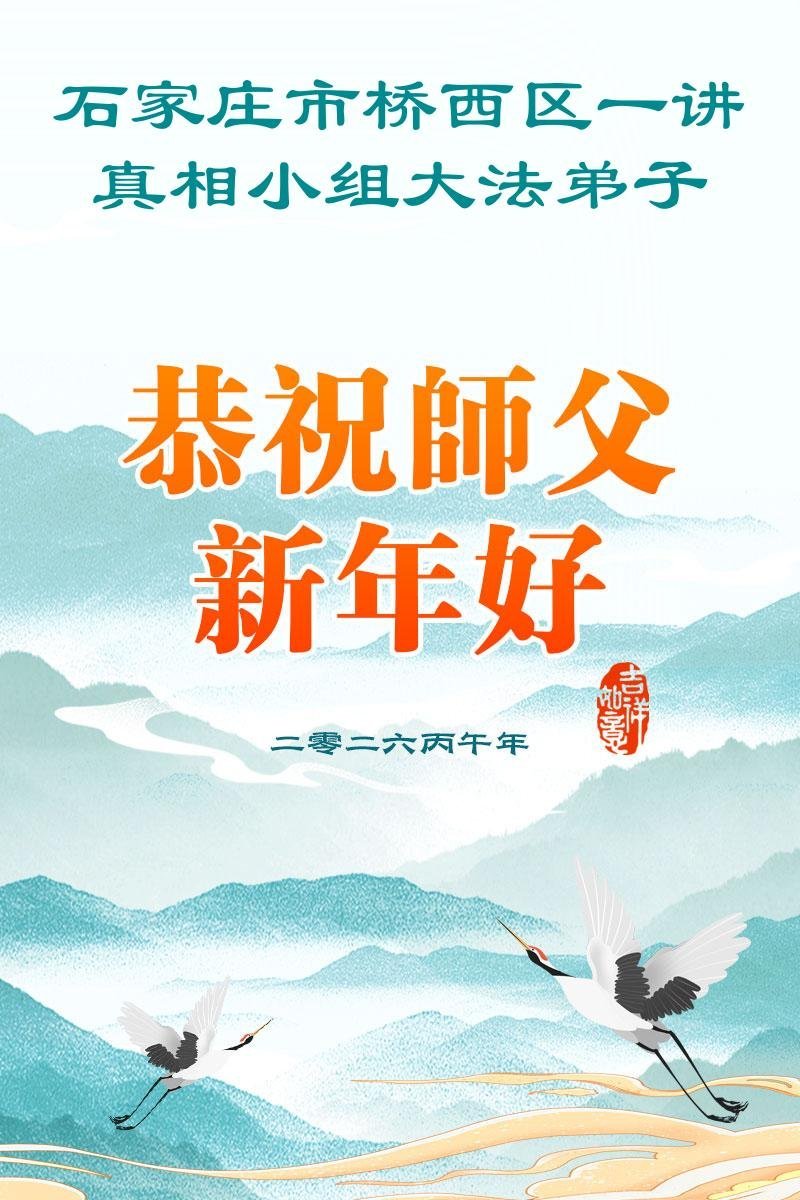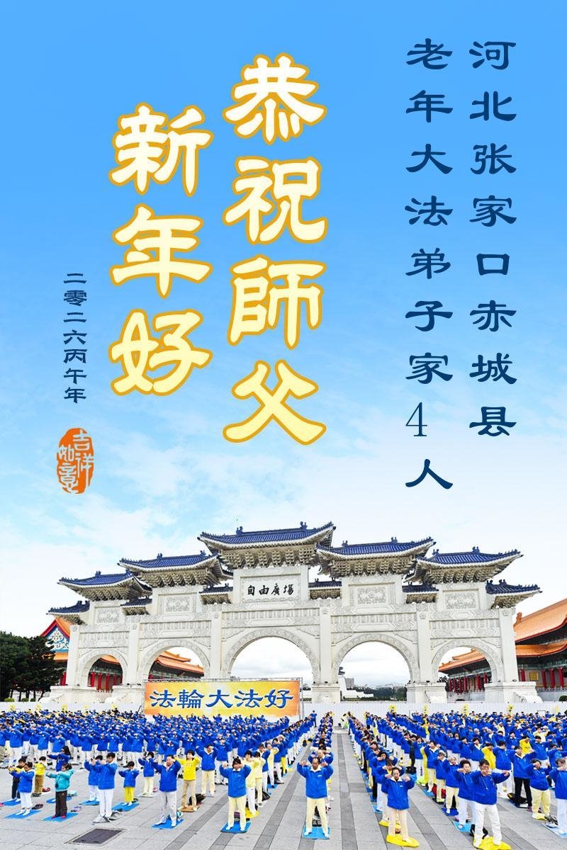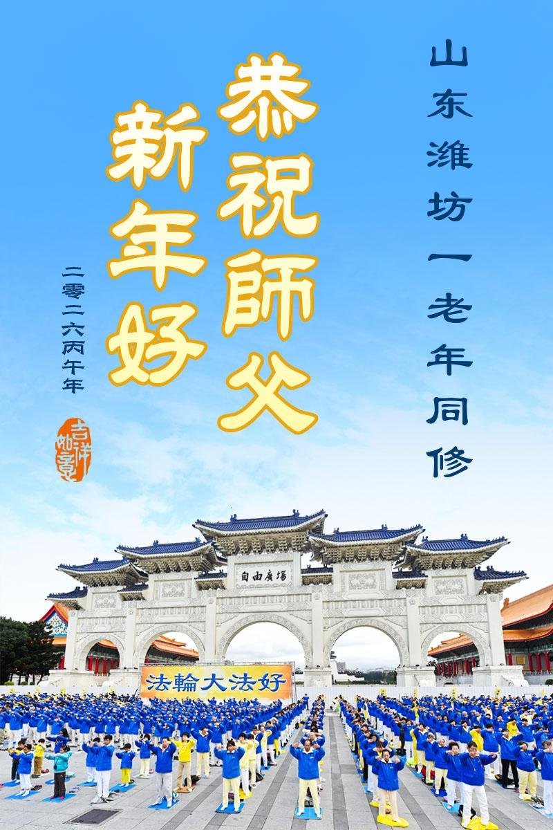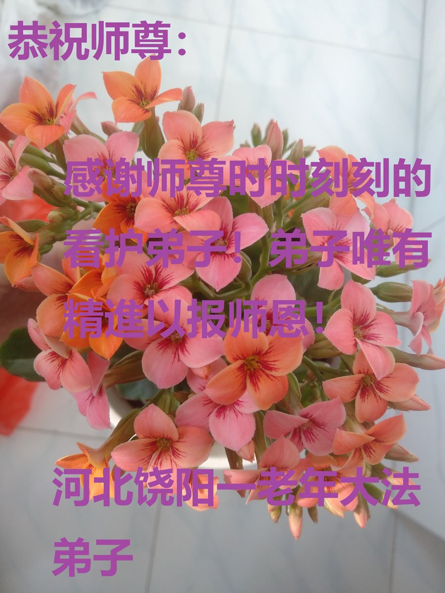 尊敬的李大师您好!您辛苦啦!我老伴修大法,我支持老伴修炼也受益。我得脑血栓时,是李大师救了我,我没有留下后遗症,后来您还几次帮我净化身体。我每天都诚心敬念“法轮大法好、真善忍好。”我更感谢李大师多次救了我的命!我现在八十多岁了,身体很好,还能踩三轮车送老伴去比较远的地方学法。全是托李大师的福。在新年到来之际,我给李大师拜个早年!谢谢您的慈悲救度,感恩李大师救命之恩!