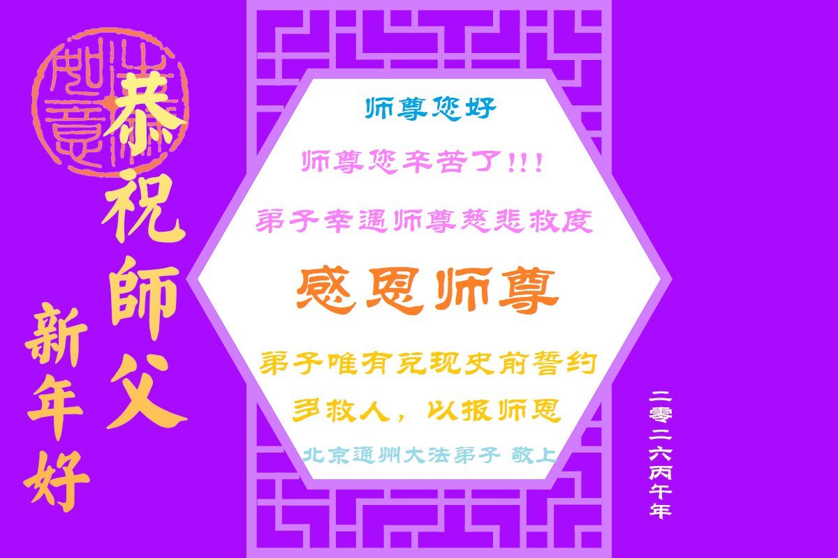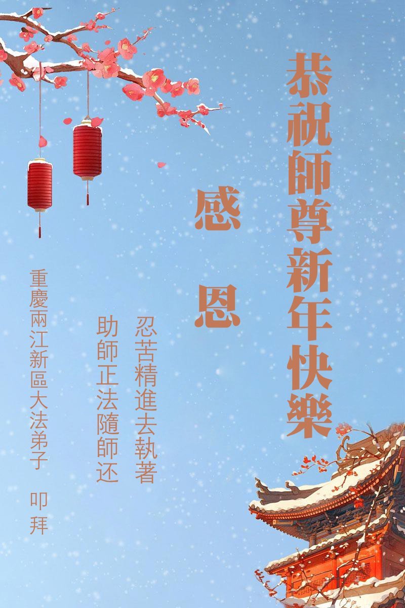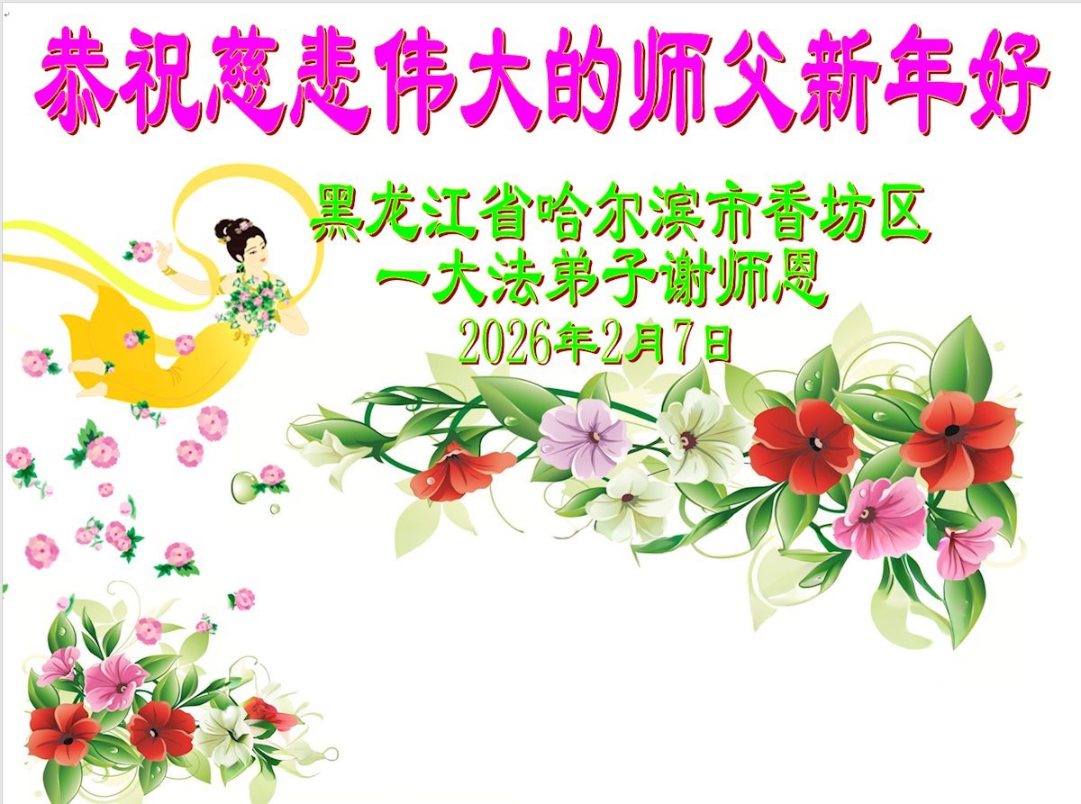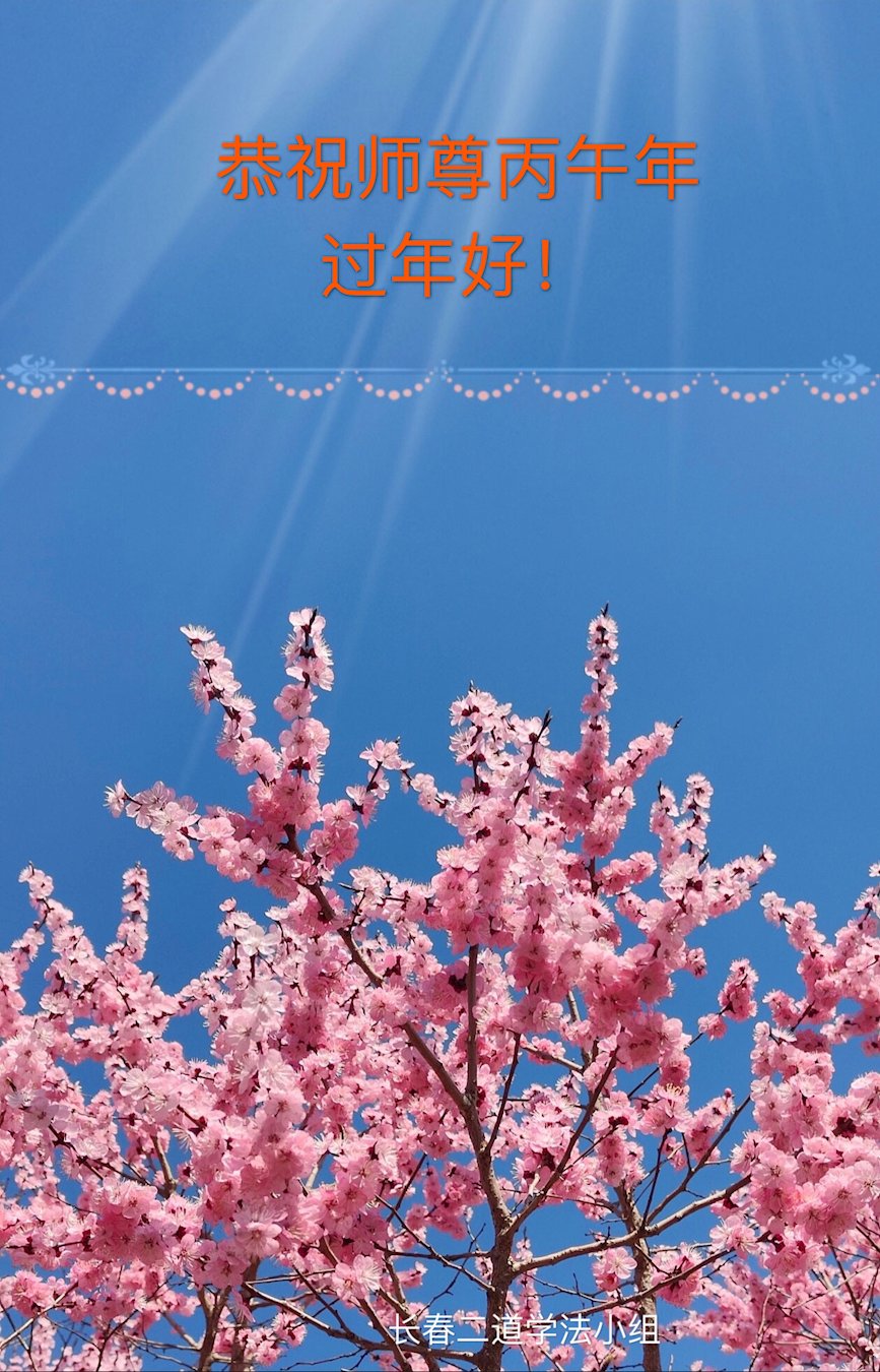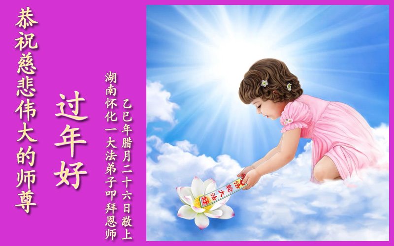 恭祝大法师父新年快乐!谢谢您洪传宇宙大法,我念“法轮大法好!真善忍好!”我的眼睛就不疼了。