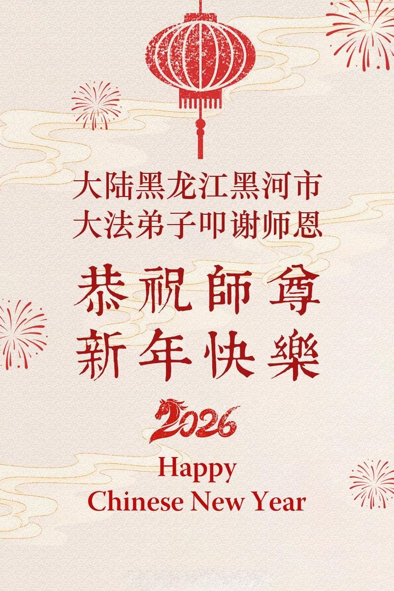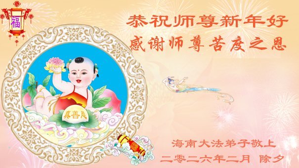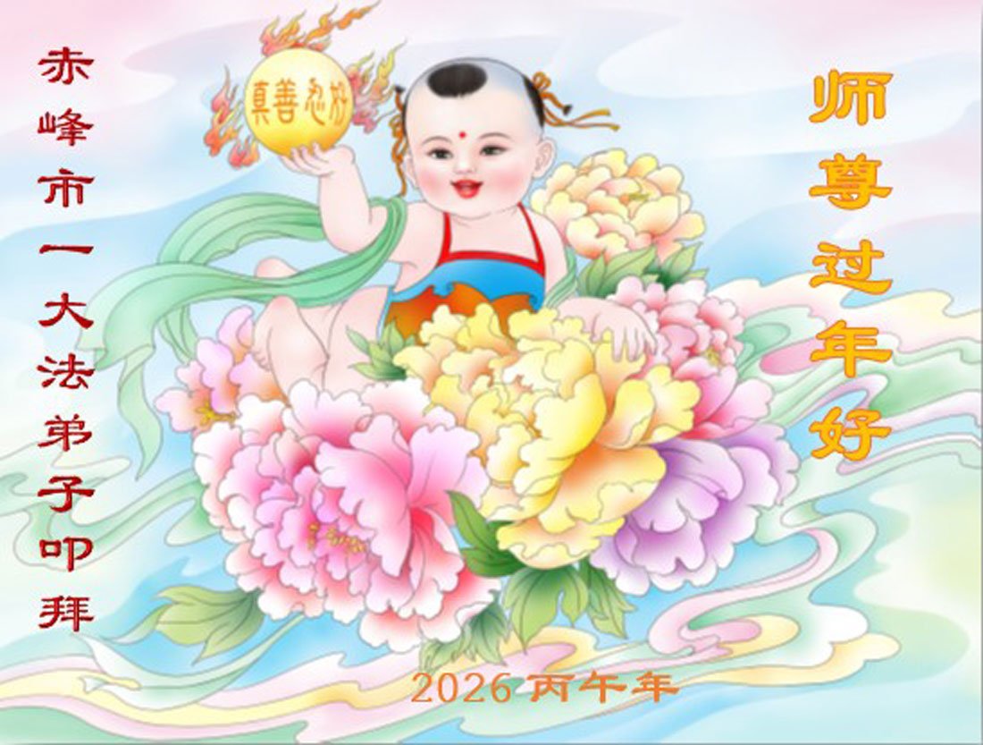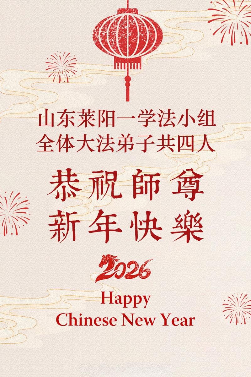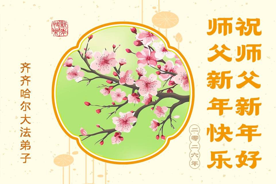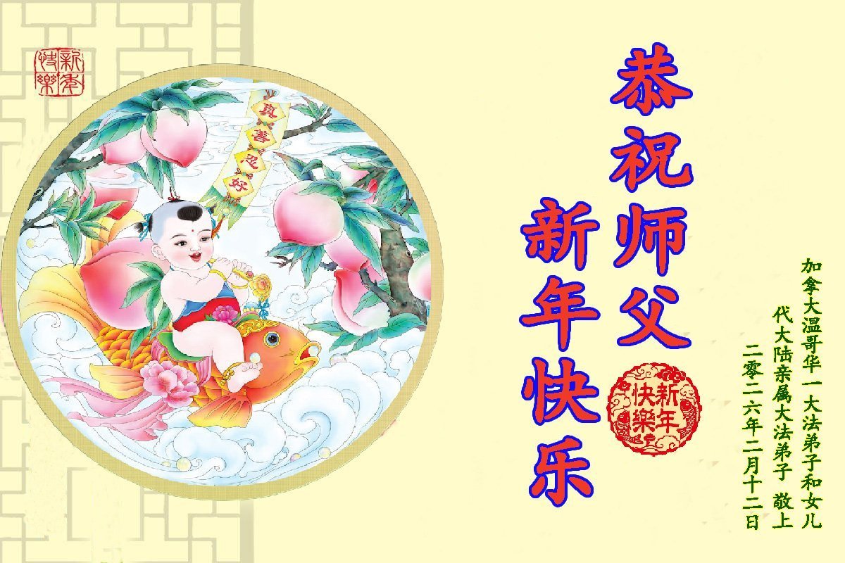 恭祝大法师父新年快乐!谢谢您洪传宇宙大法,我念“法轮大法好!真善忍好!”我的眼睛就不疼了。