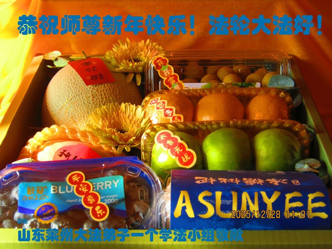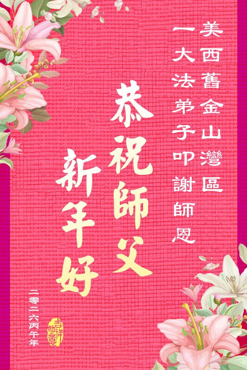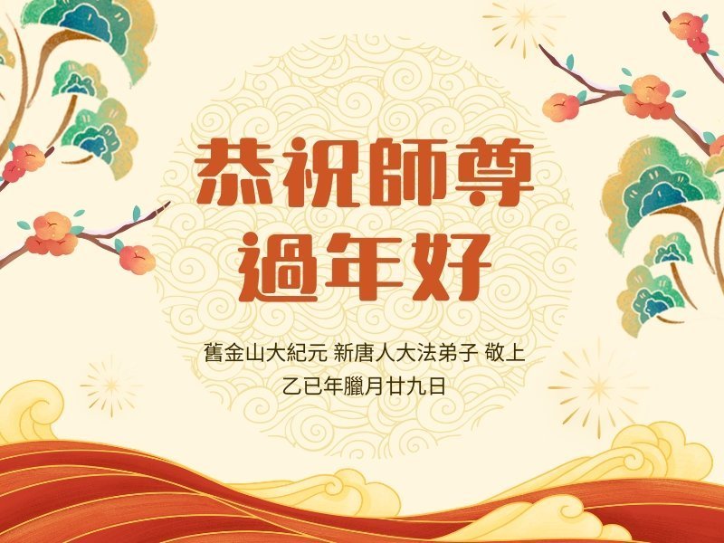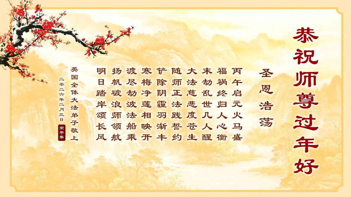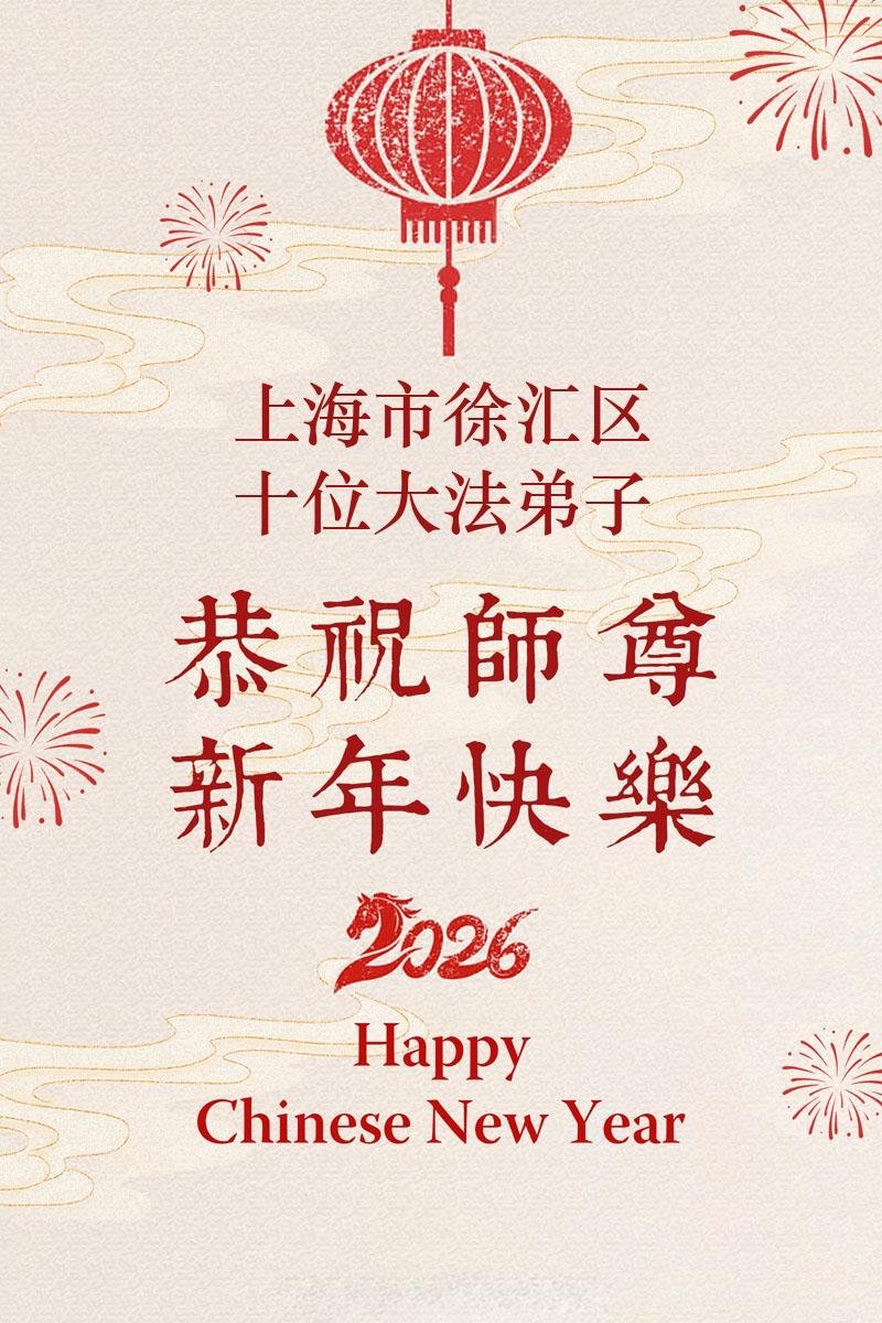恭祝大法师父新年快乐!谢谢您洪传宇宙大法,我念“法轮大法好!真善忍好!”我的眼睛就不疼了。