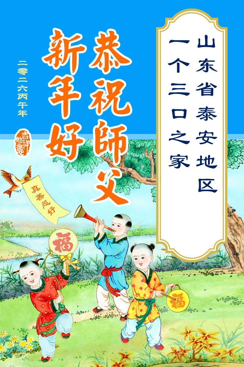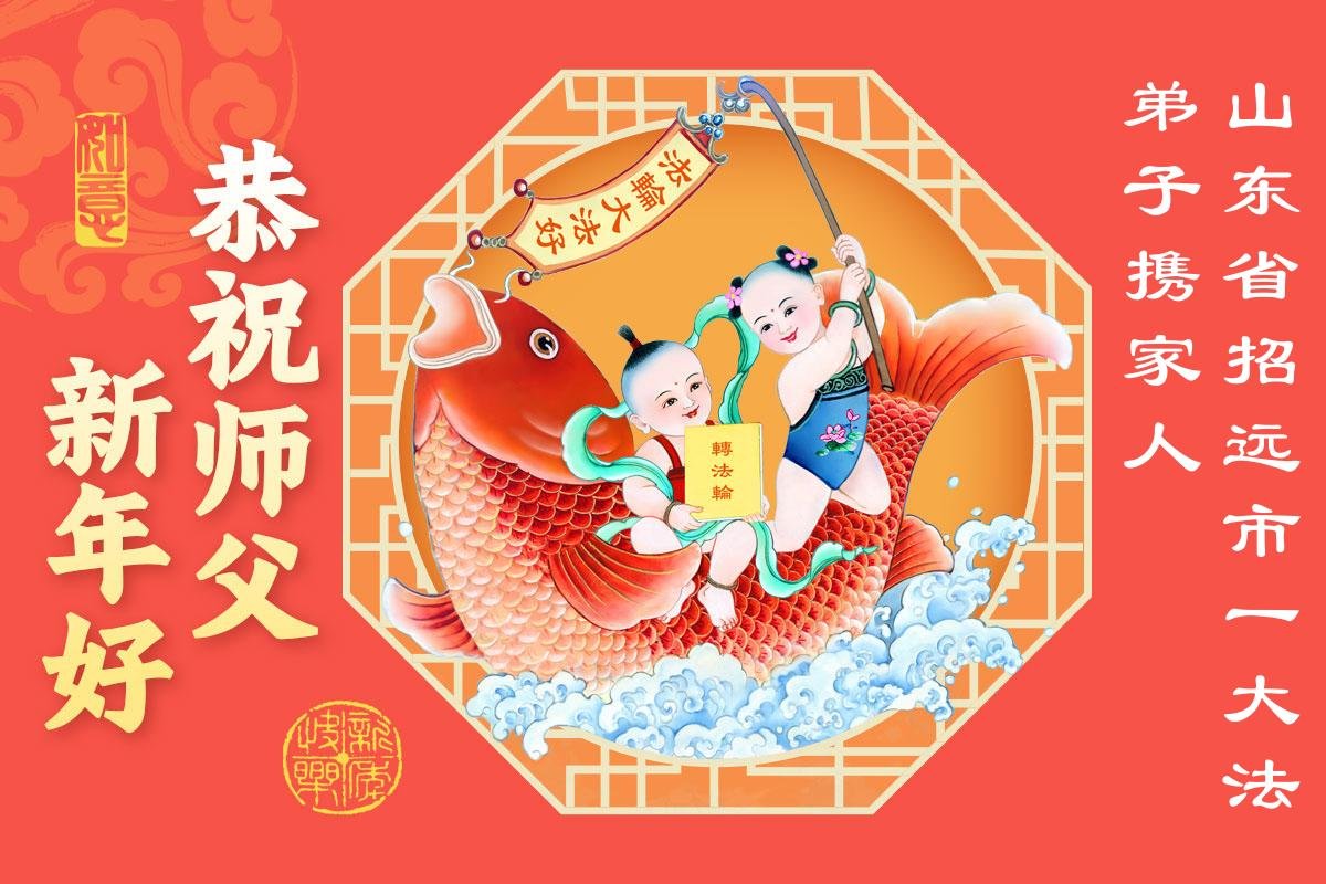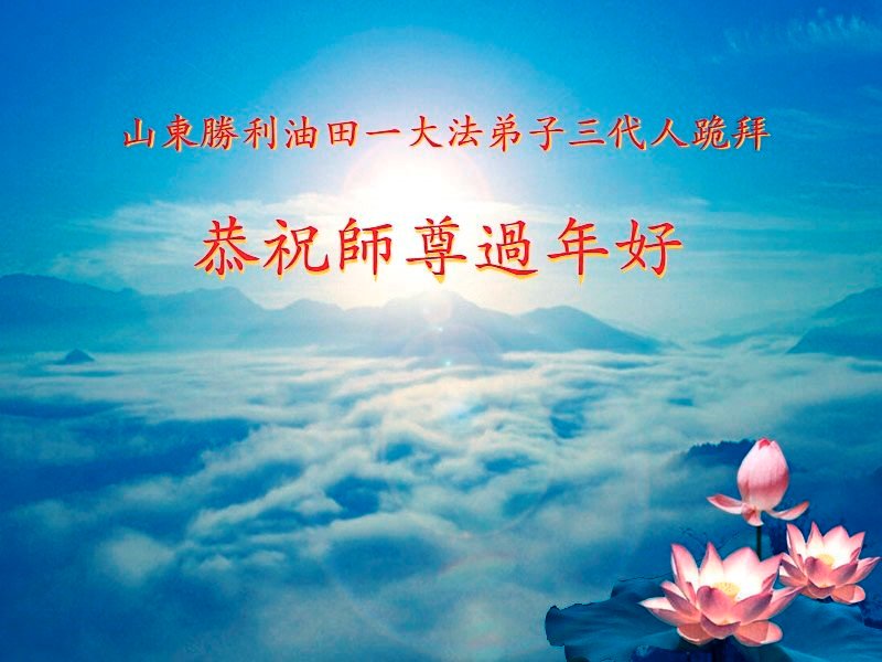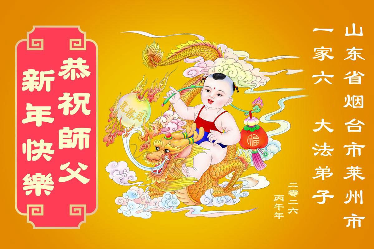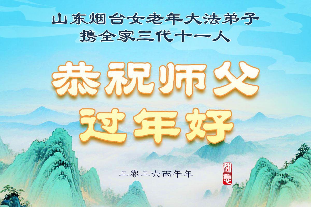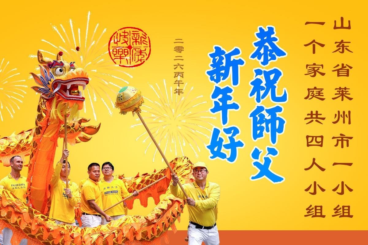山东省招远市一企业青年职工携全家给大法师父拜年!
