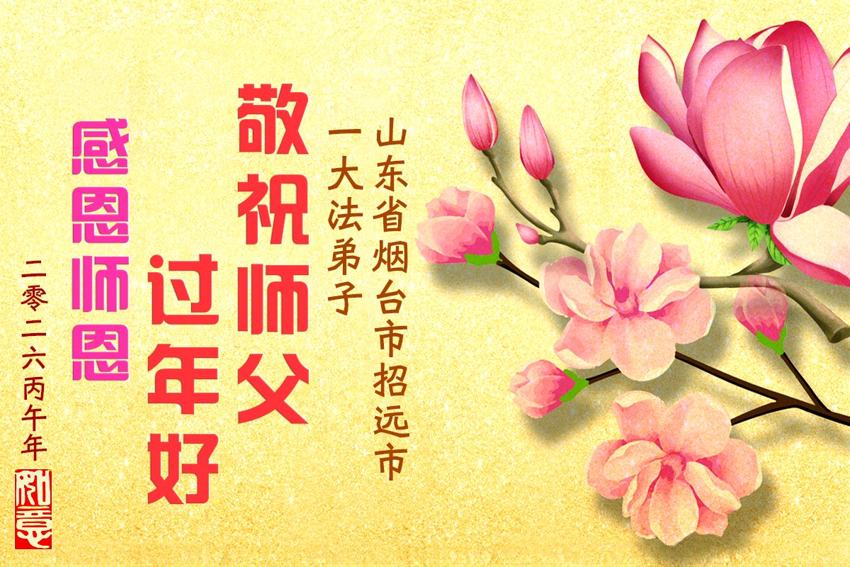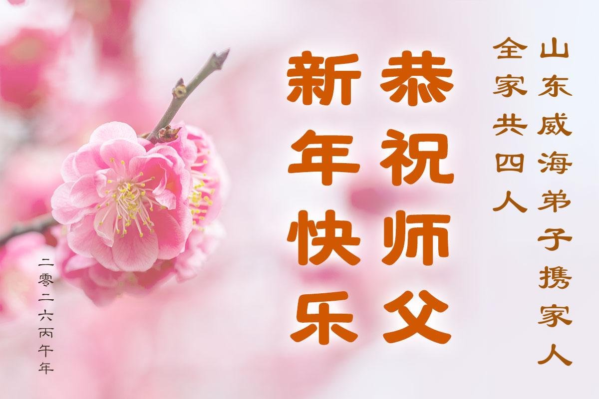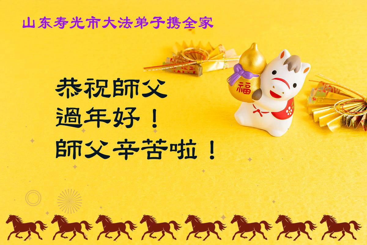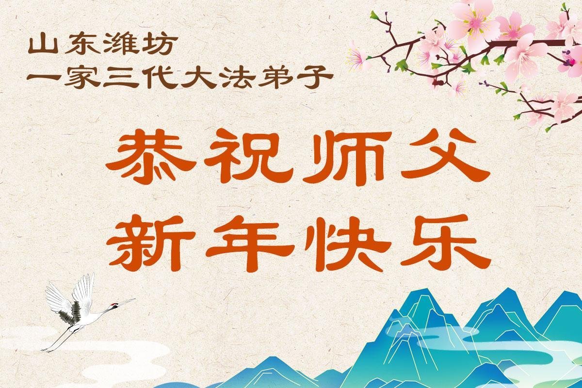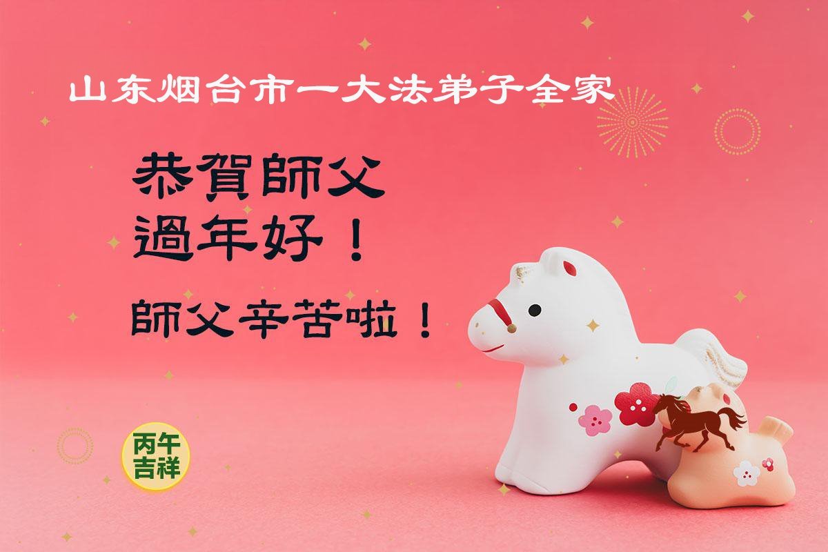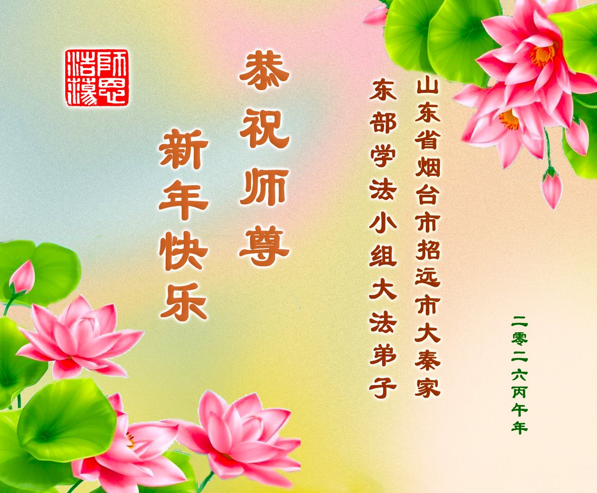山东省招远市一企业青年职工携全家给大法师父拜年!