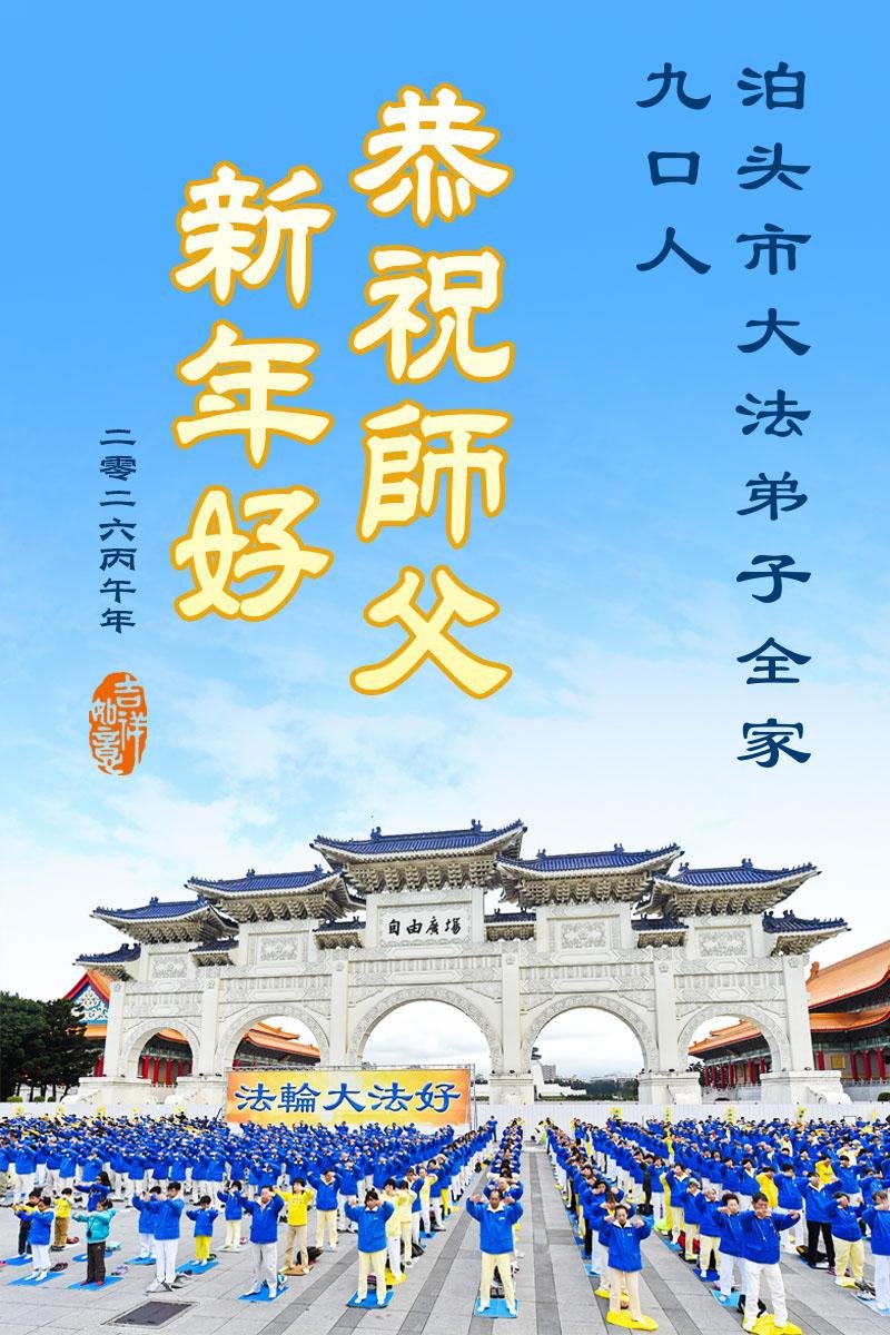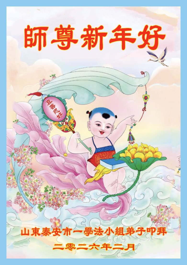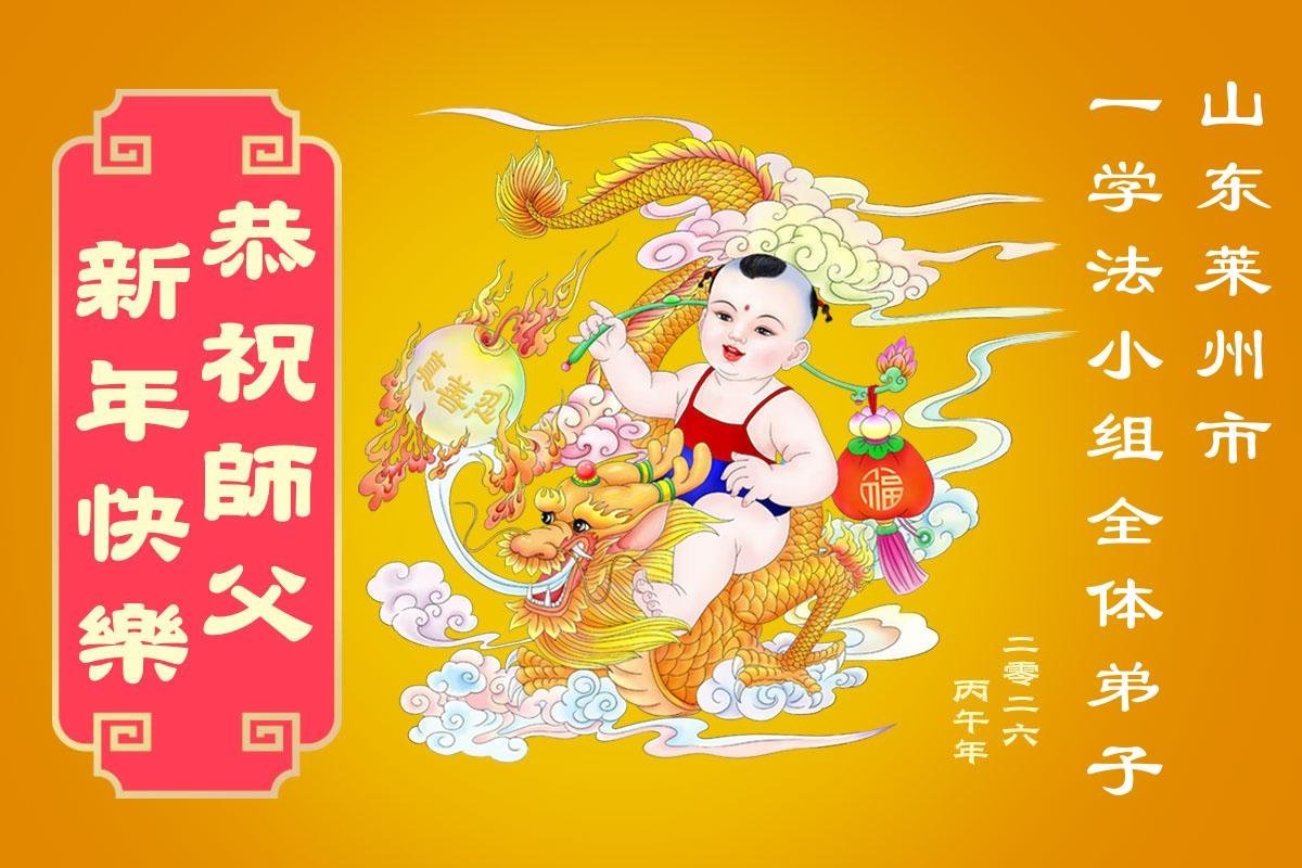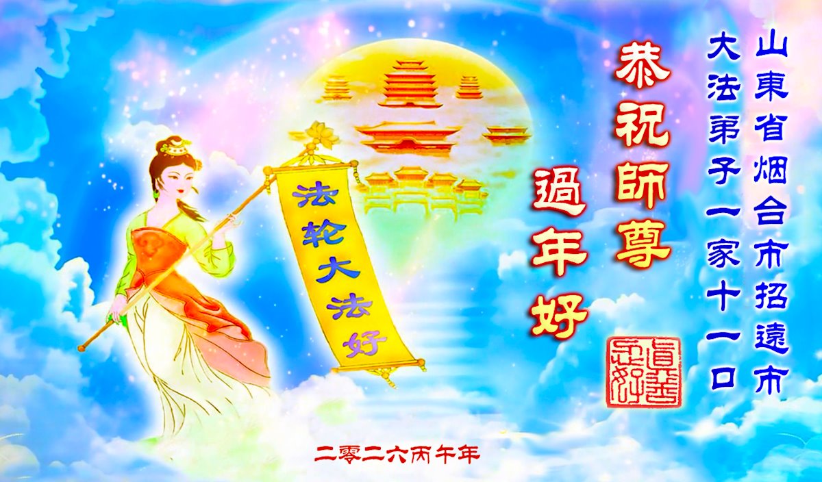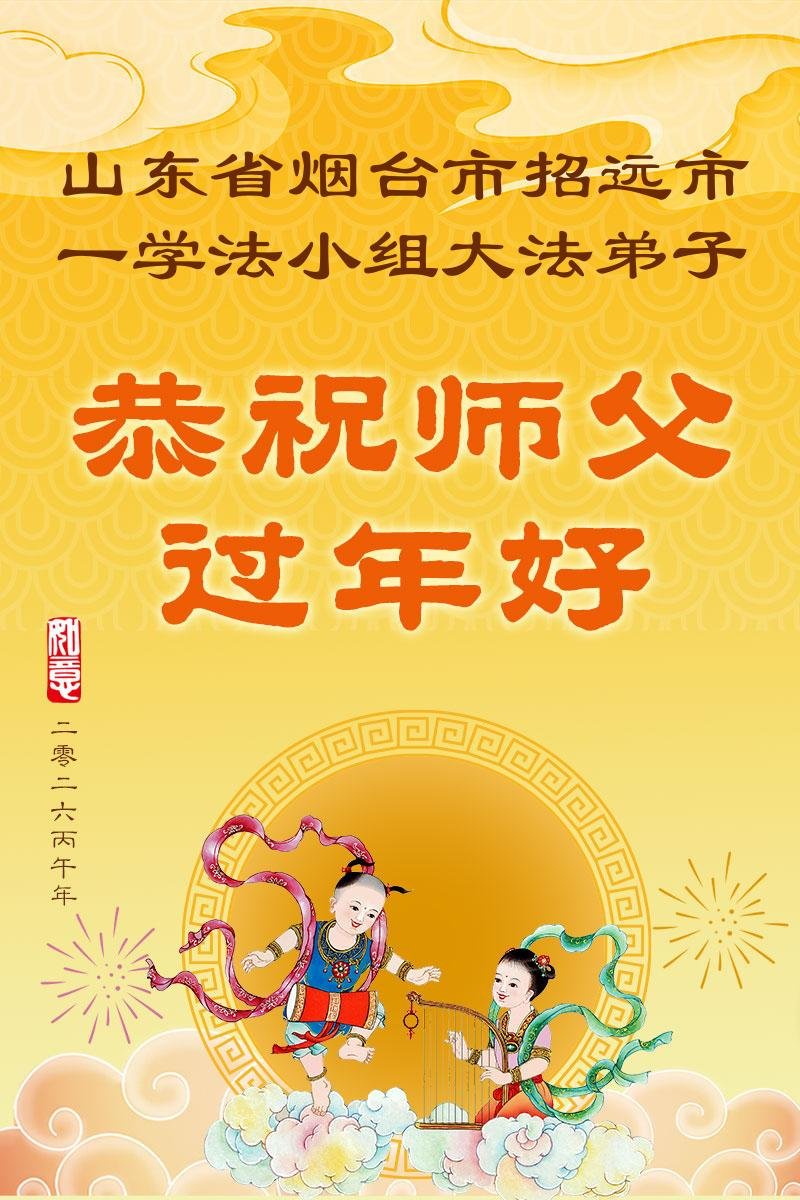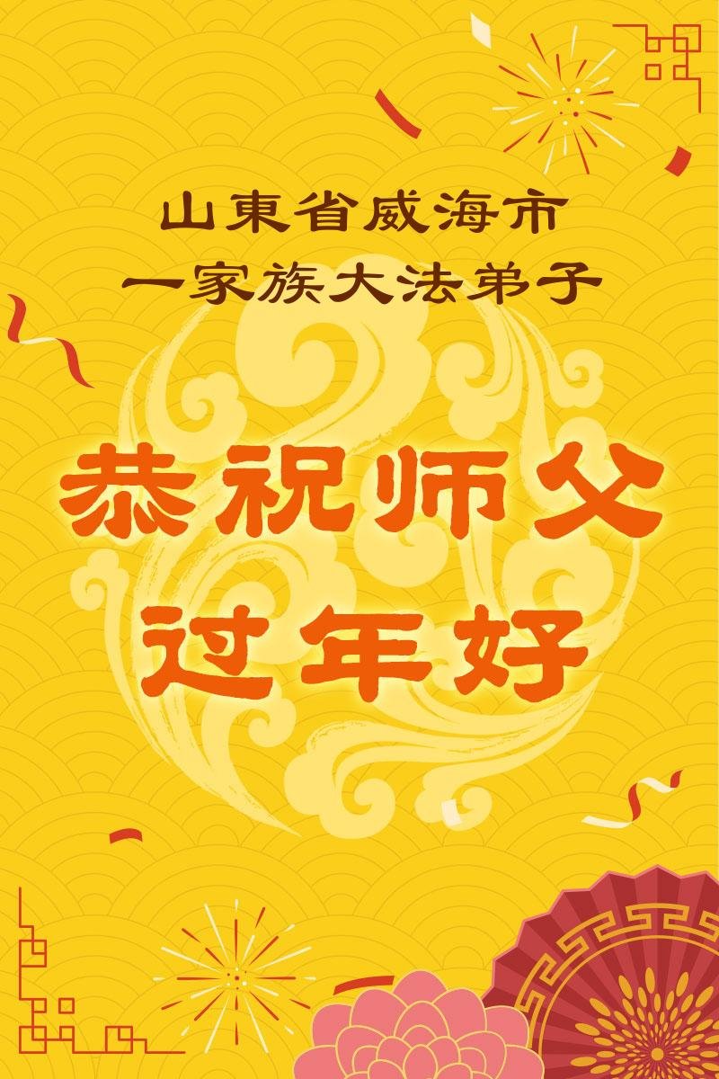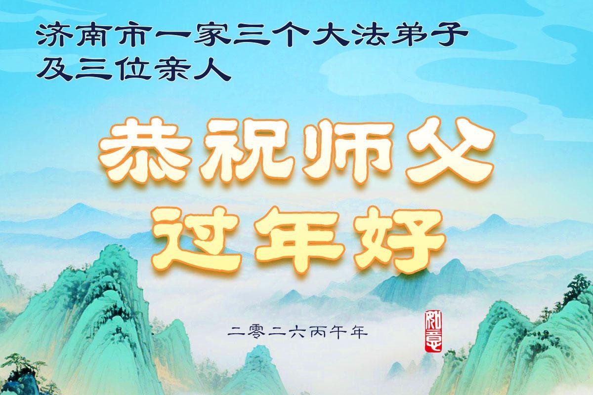 山东省招远市一企业青年职工携全家给大法师父拜年!