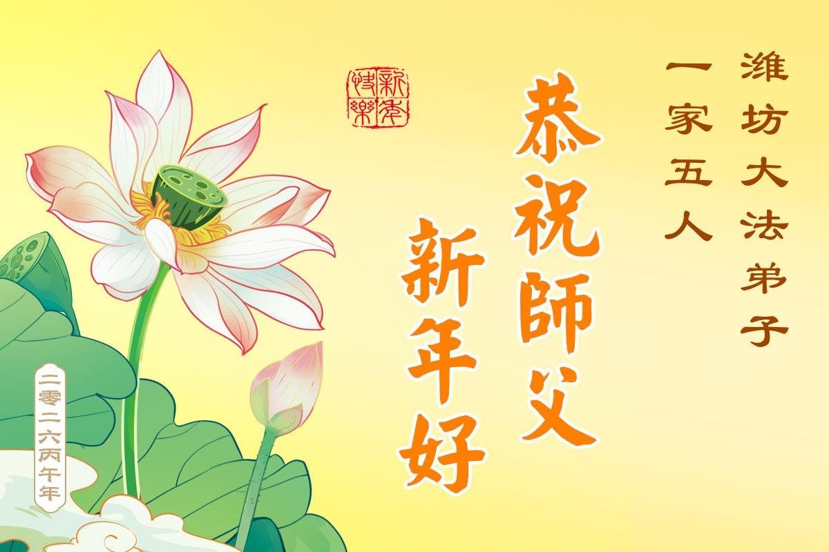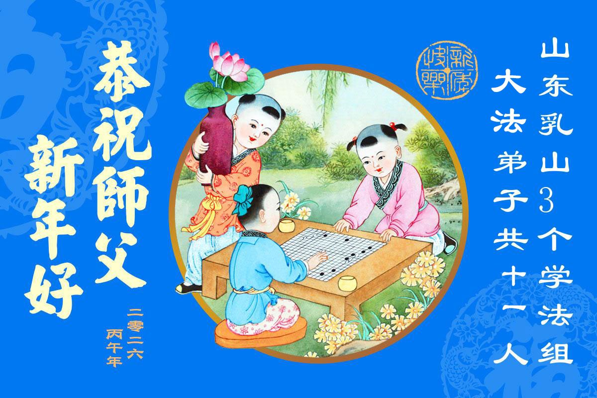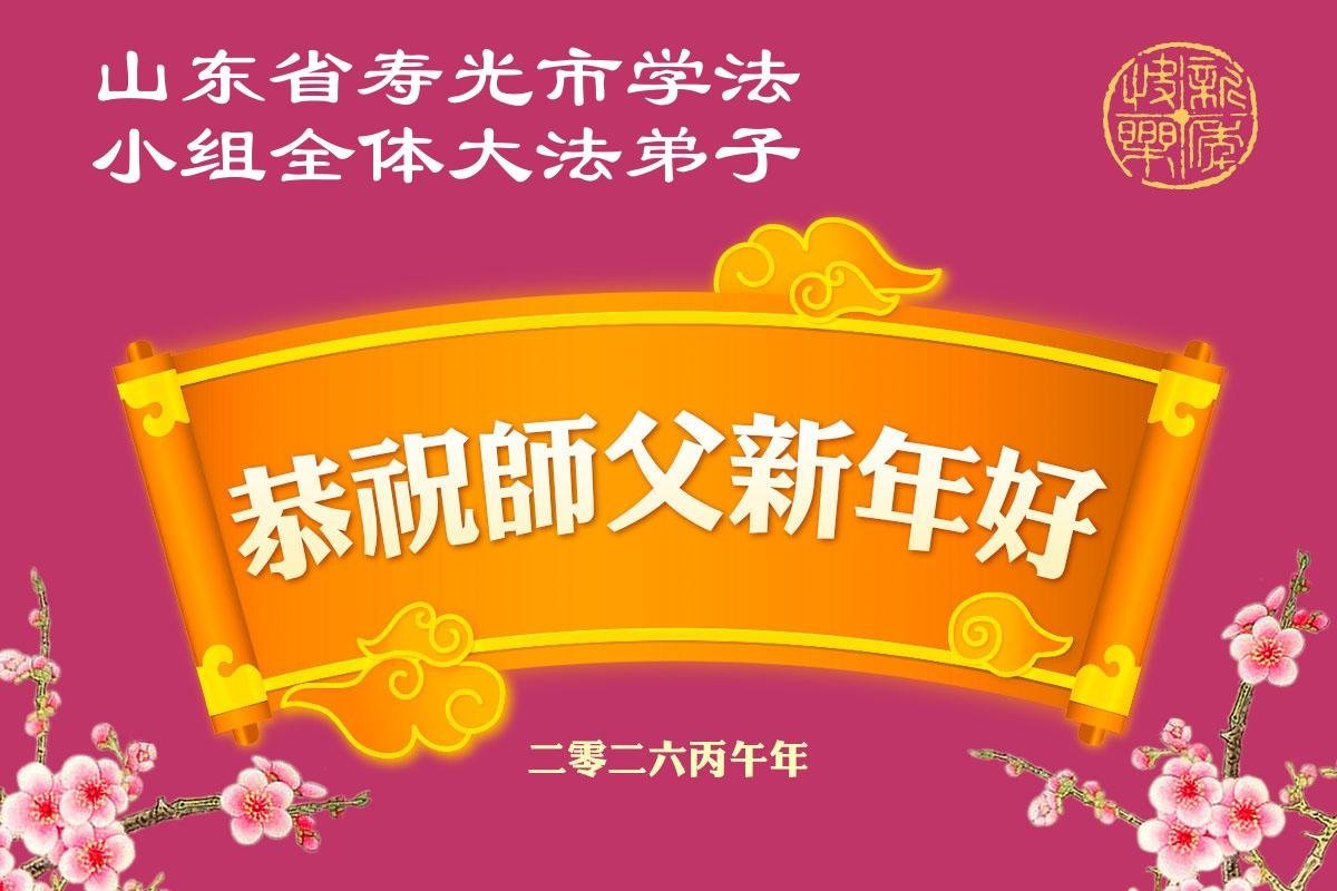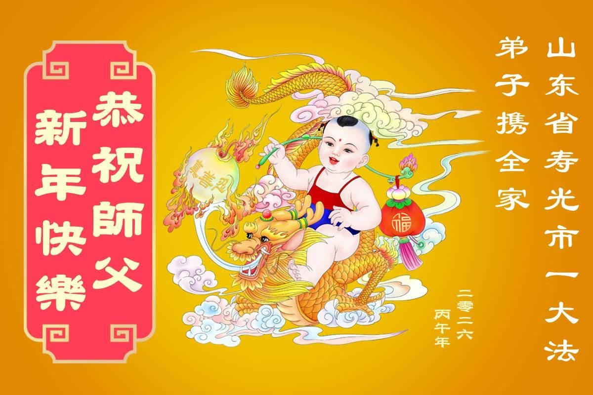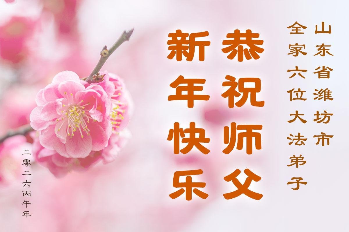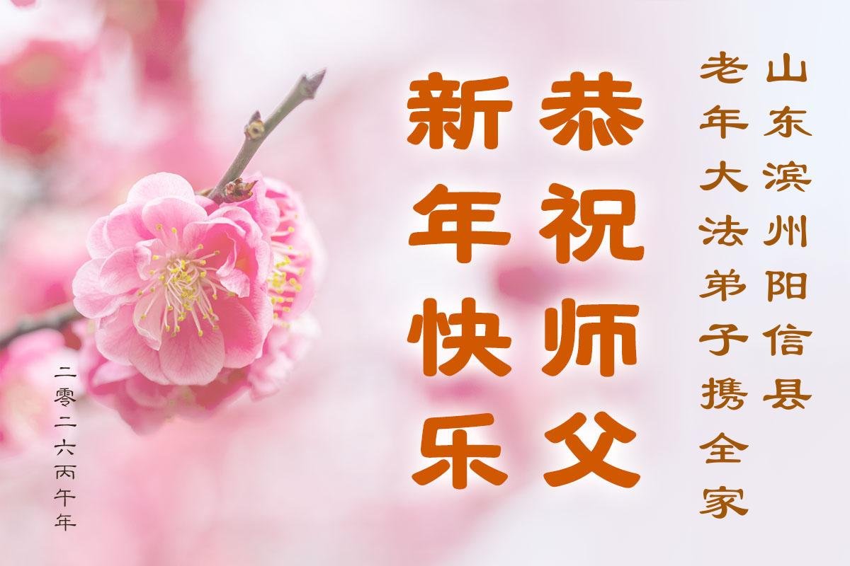 山东省招远市一企业青年职工携全家给大法师父拜年!