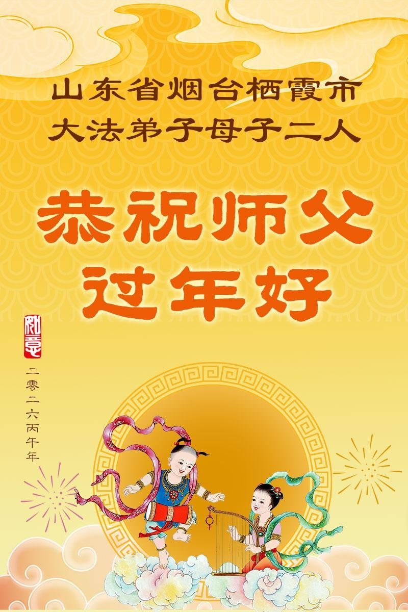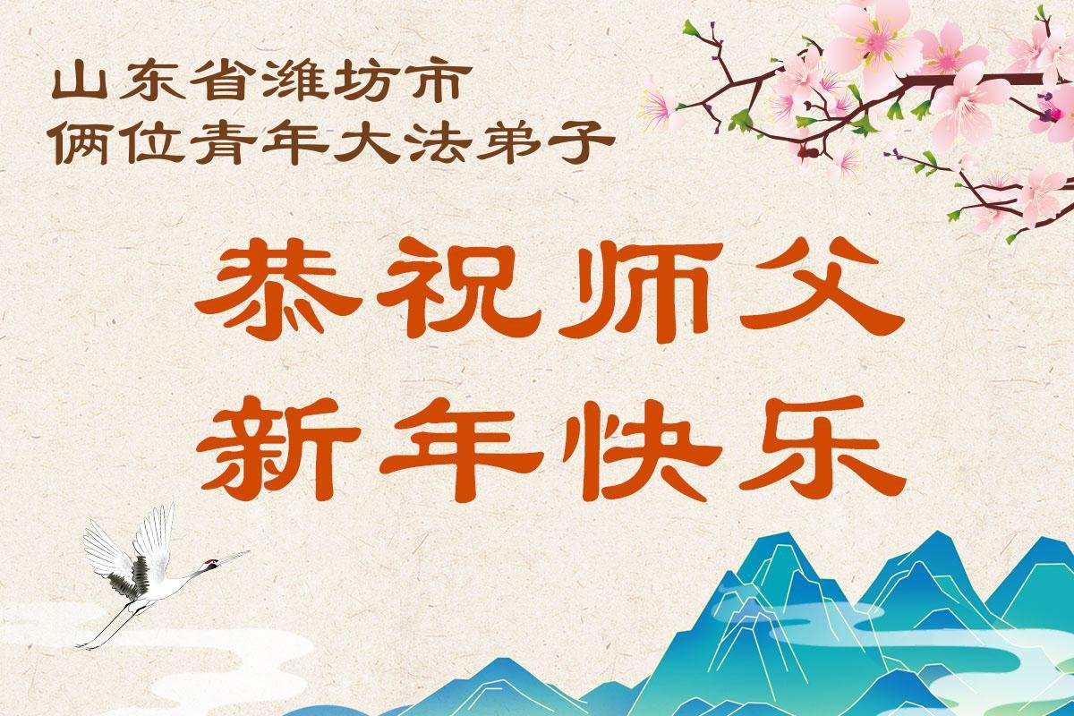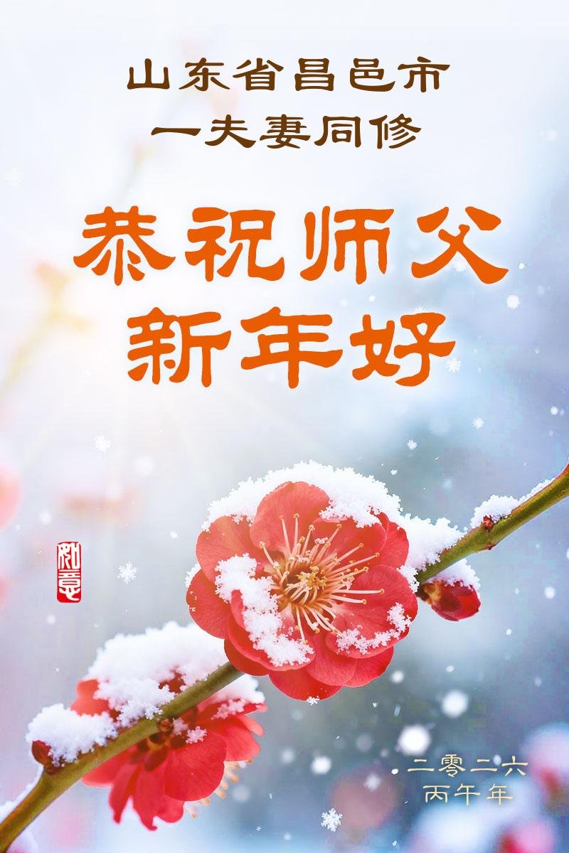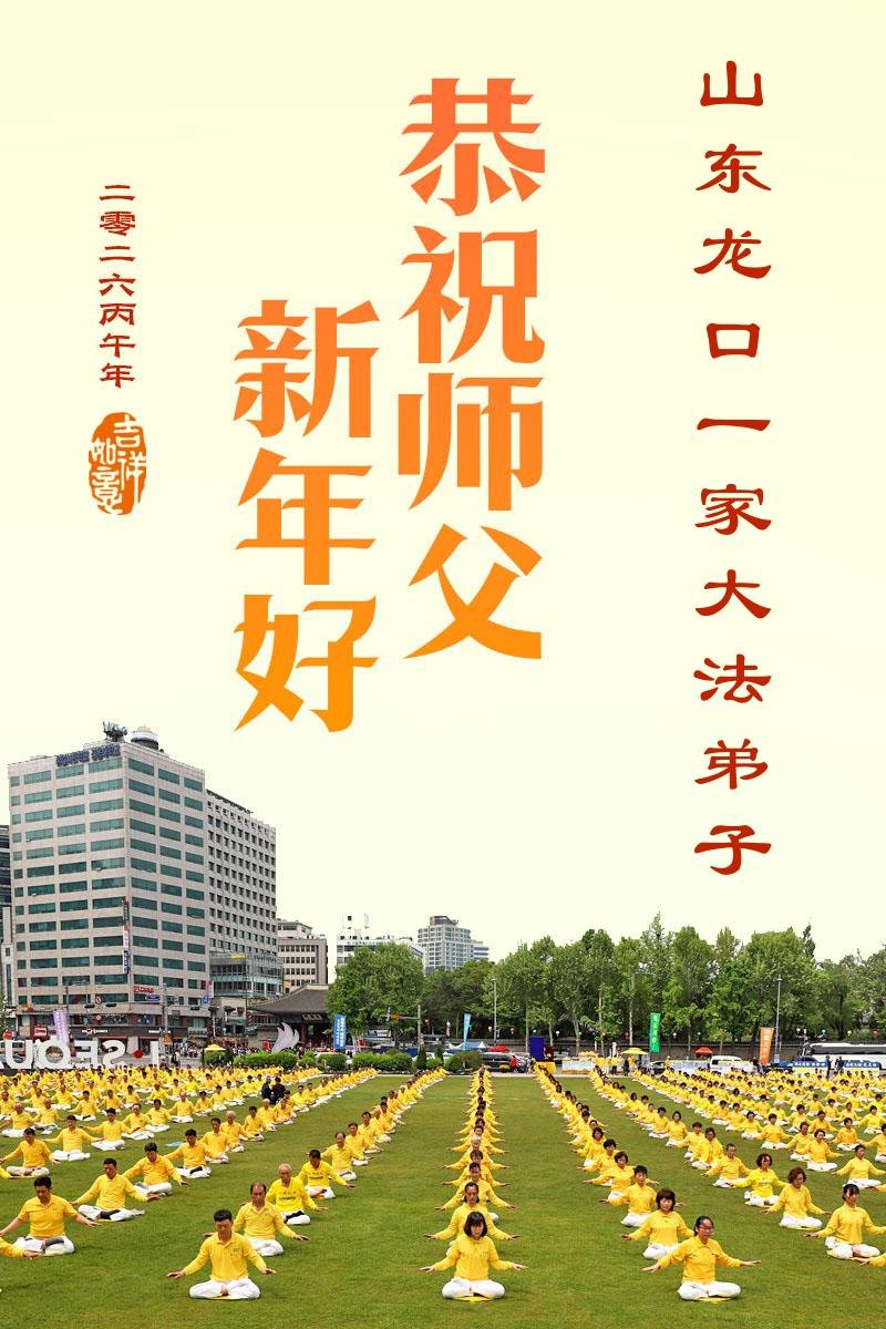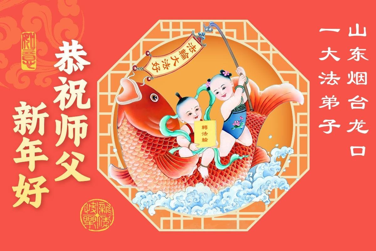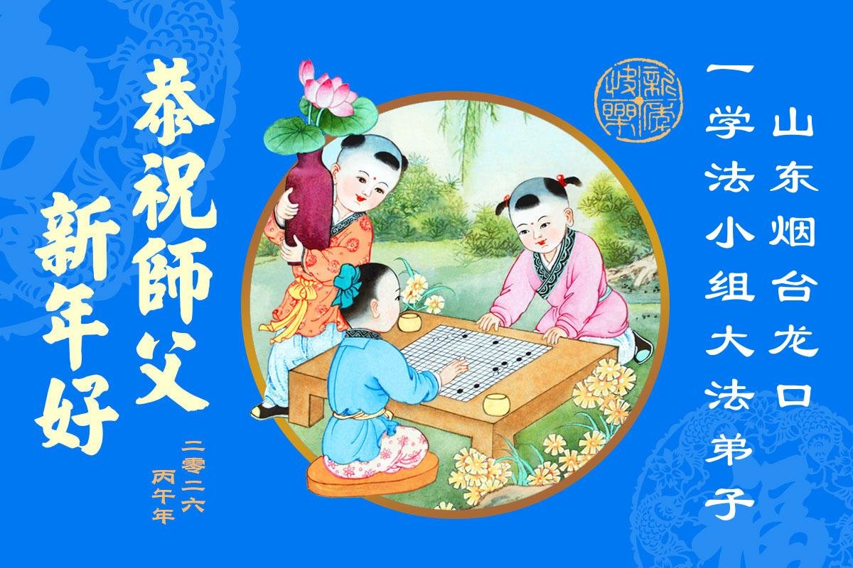 山东省招远市一企业青年职工携全家给大法师父拜年!