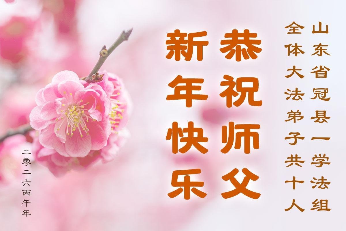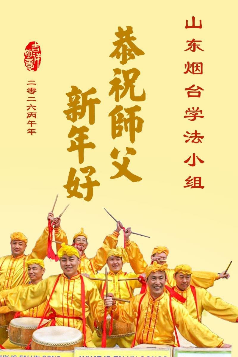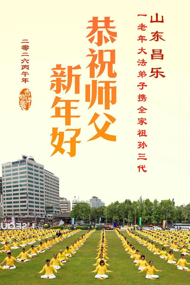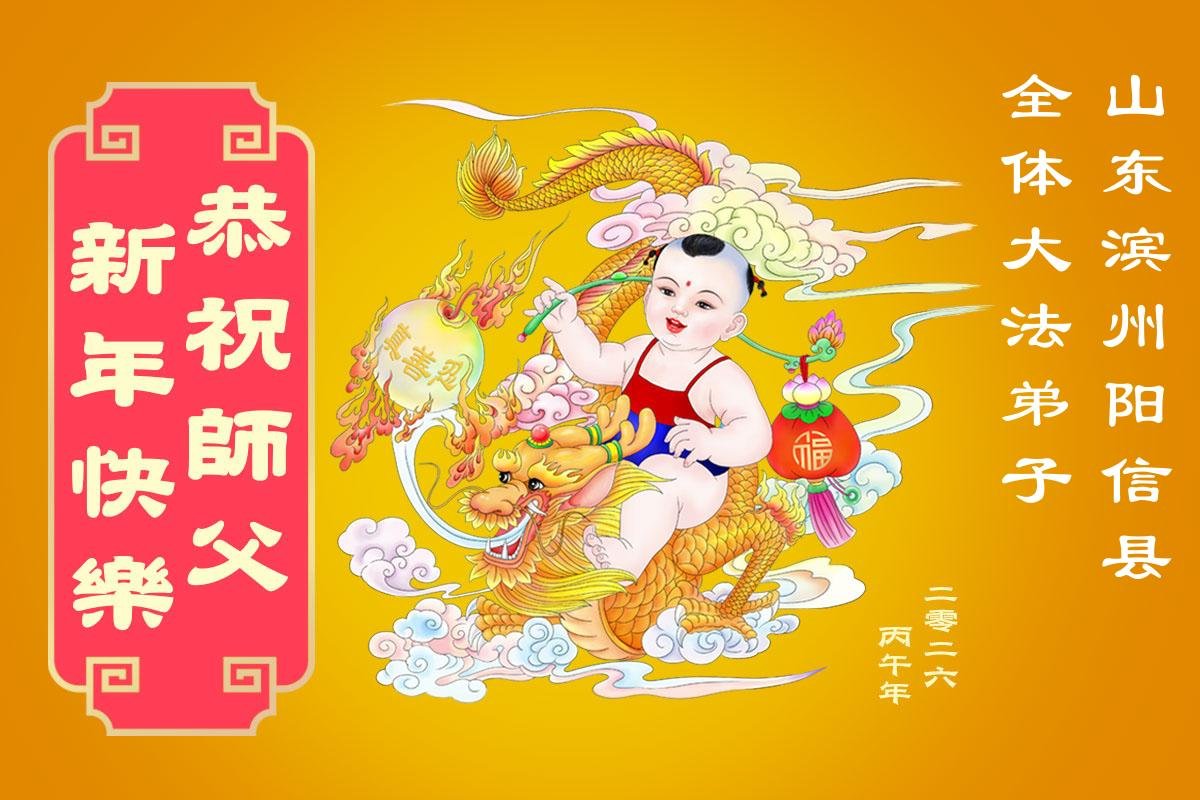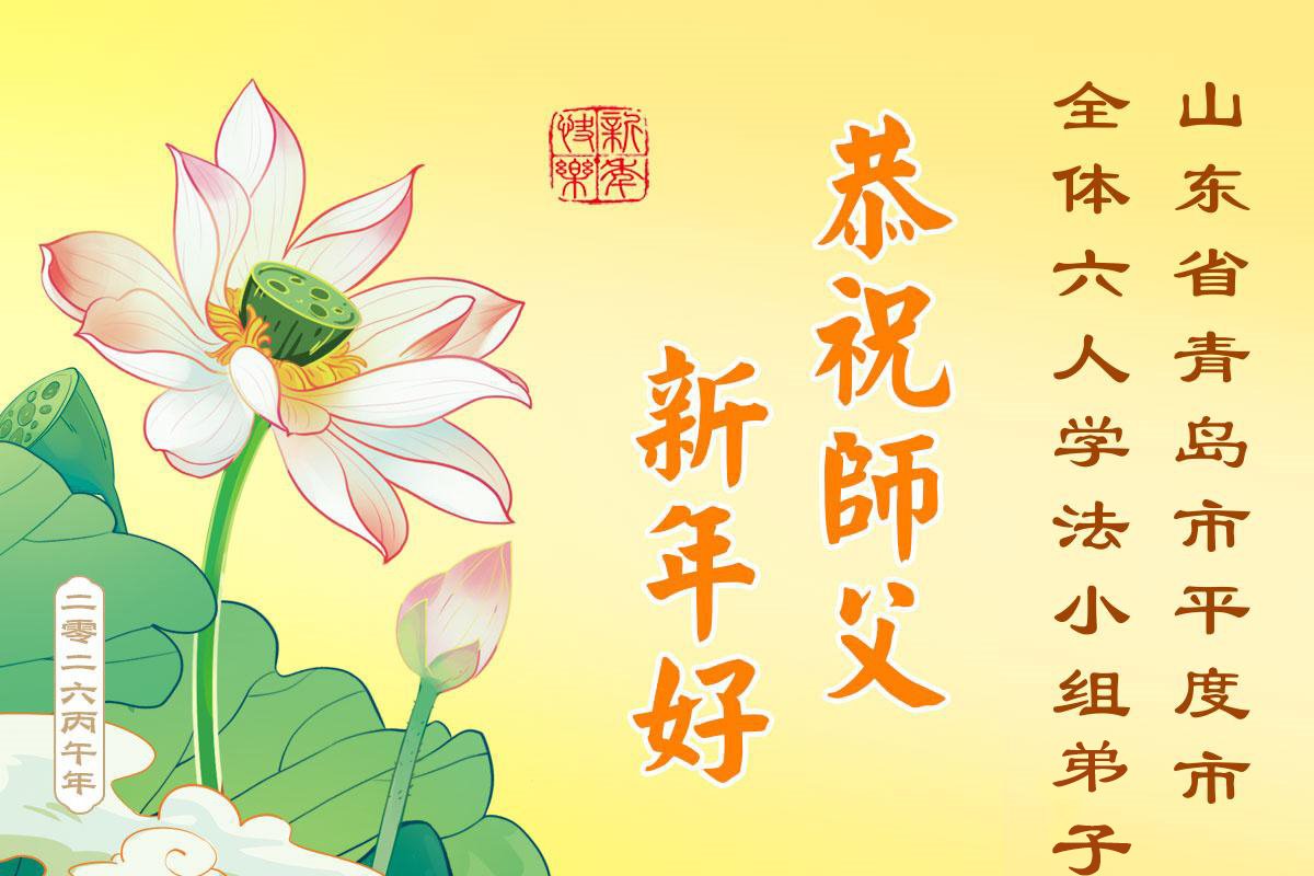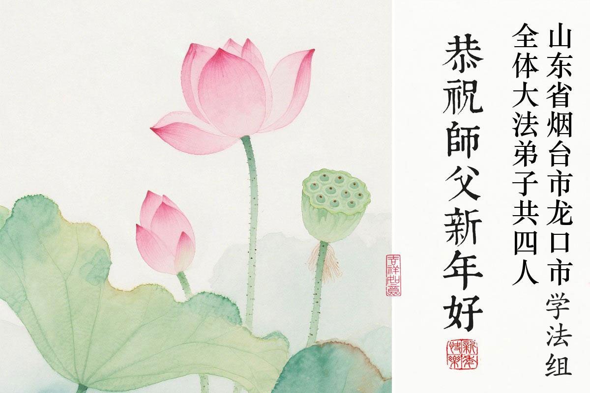 山东省招远市一企业青年职工携全家给大法师父拜年!