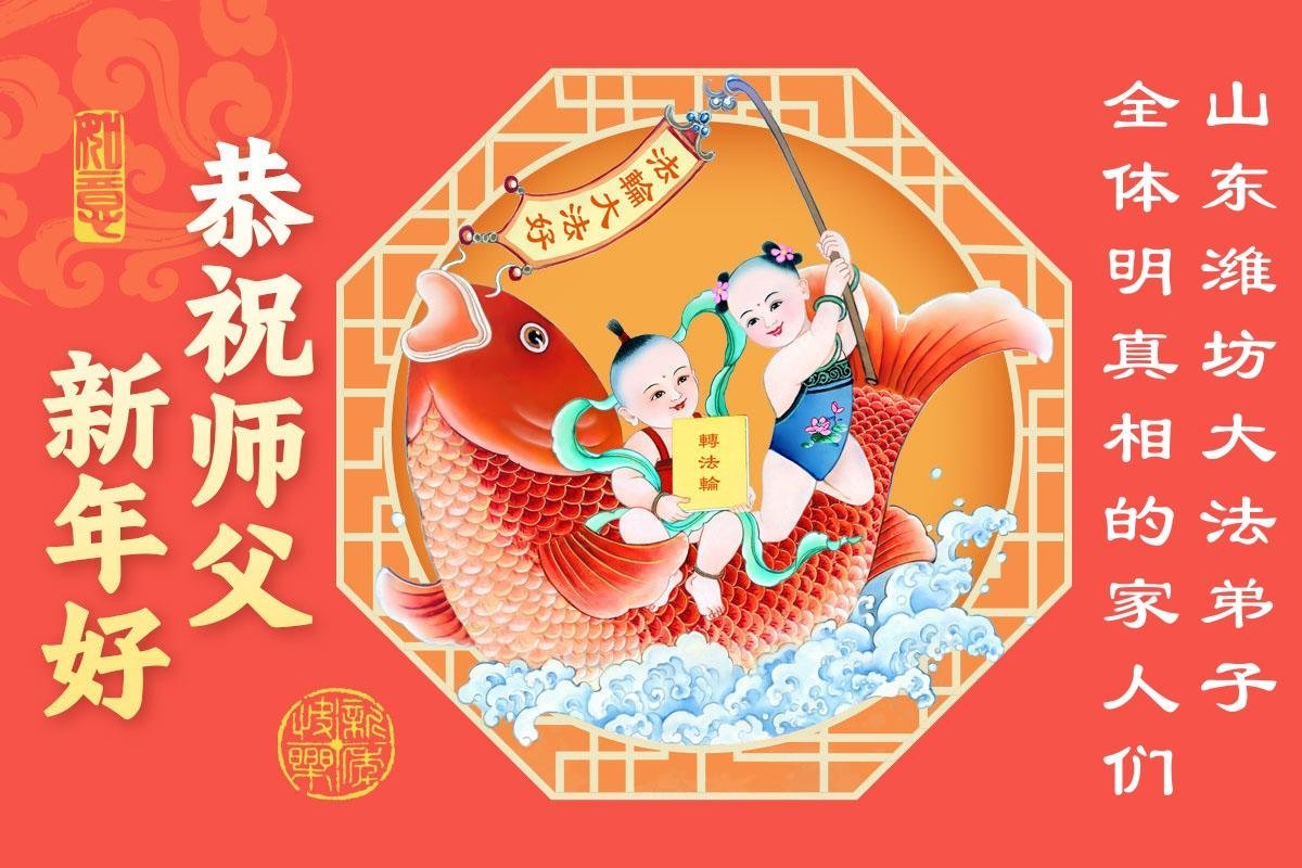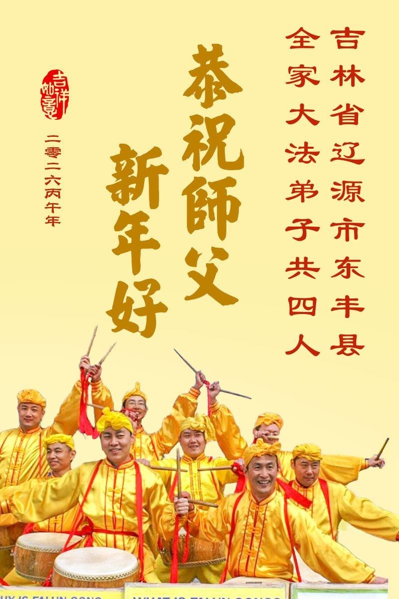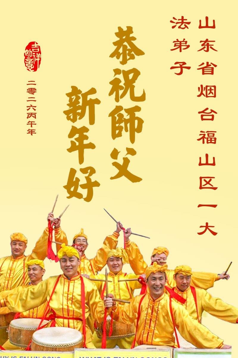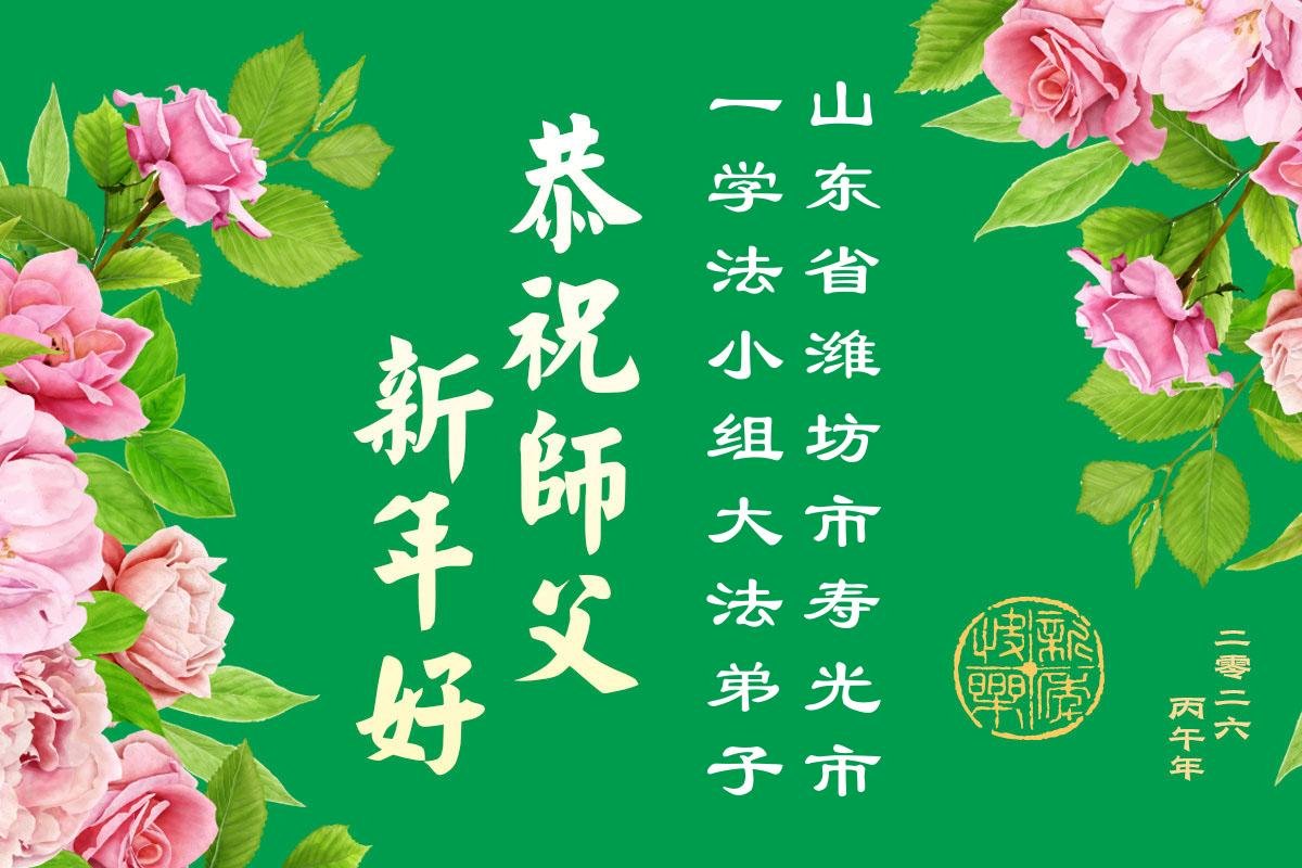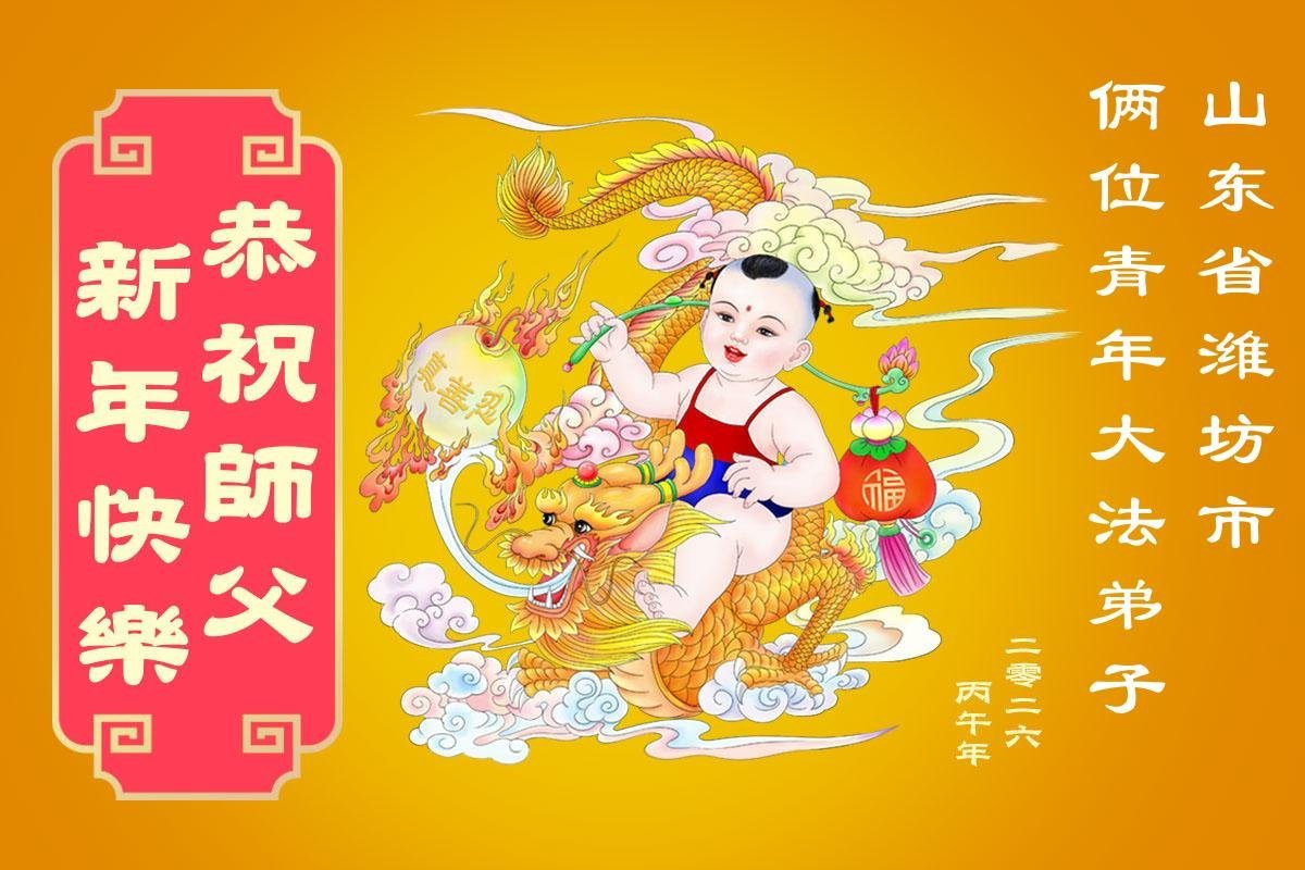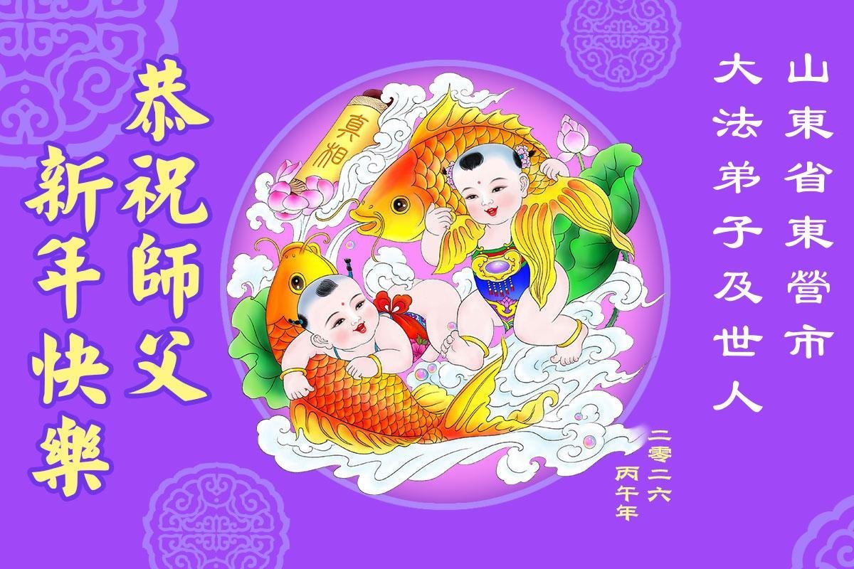 山东省招远市一企业青年职工携全家给大法师父拜年!