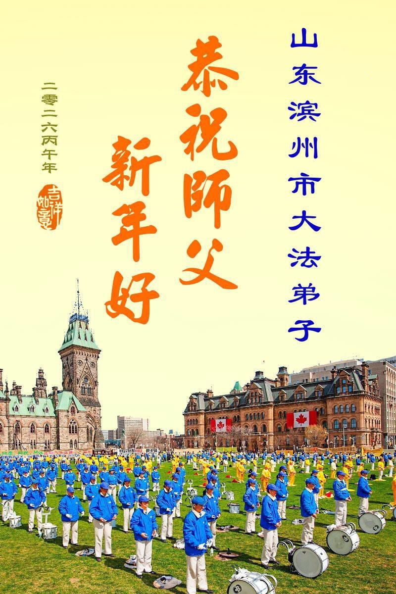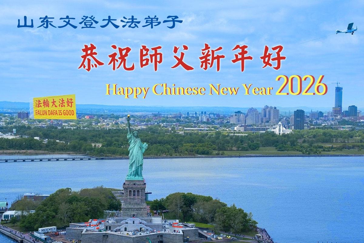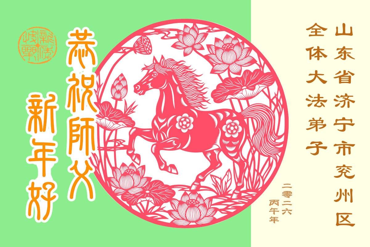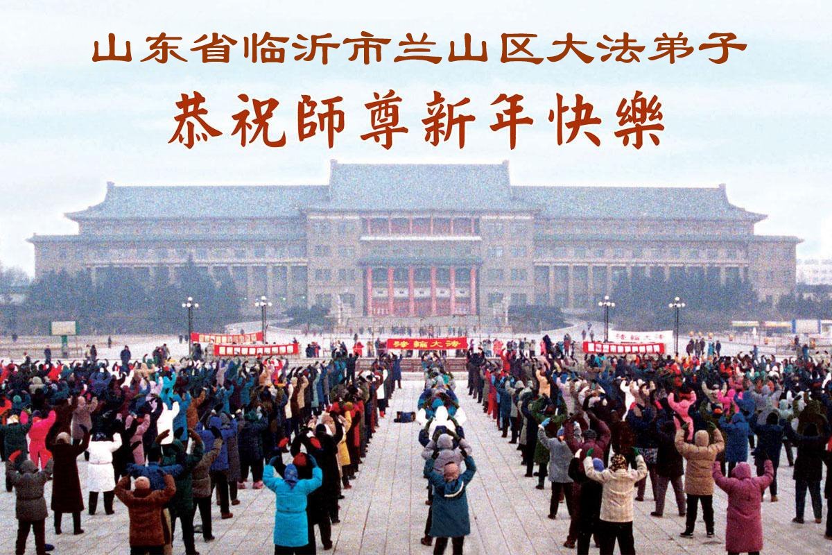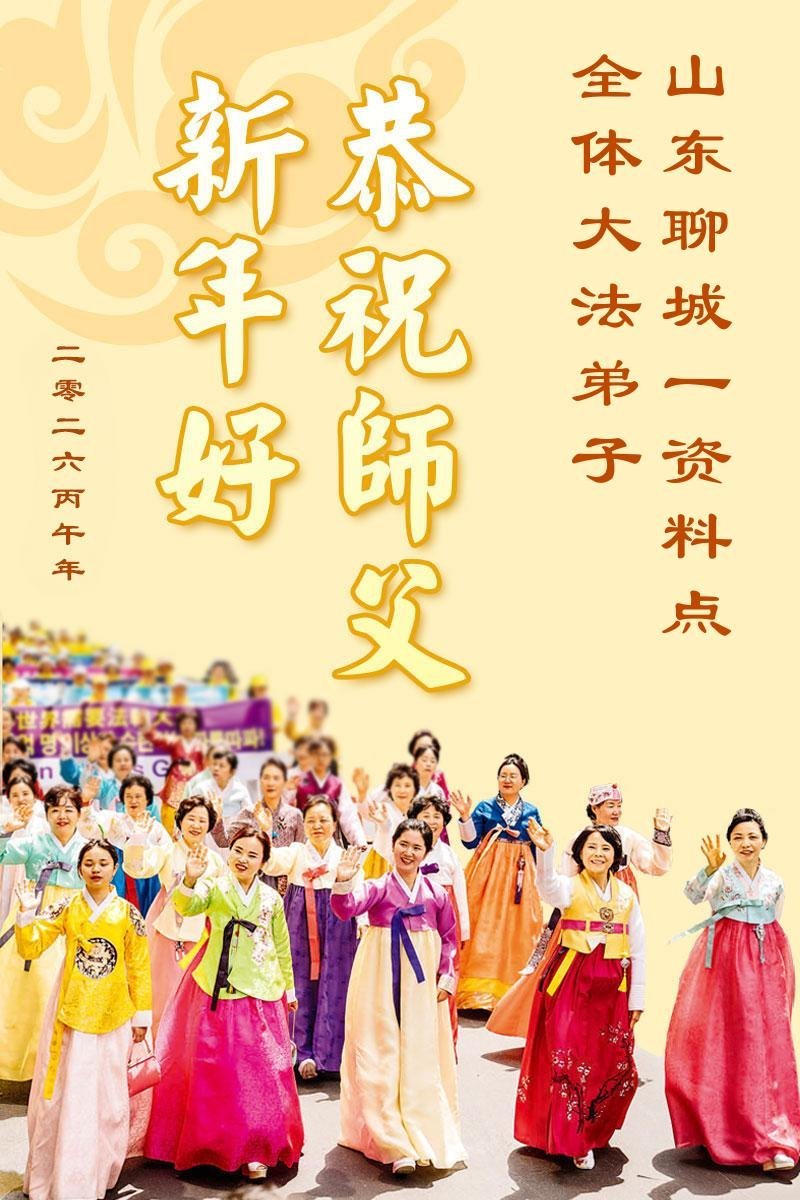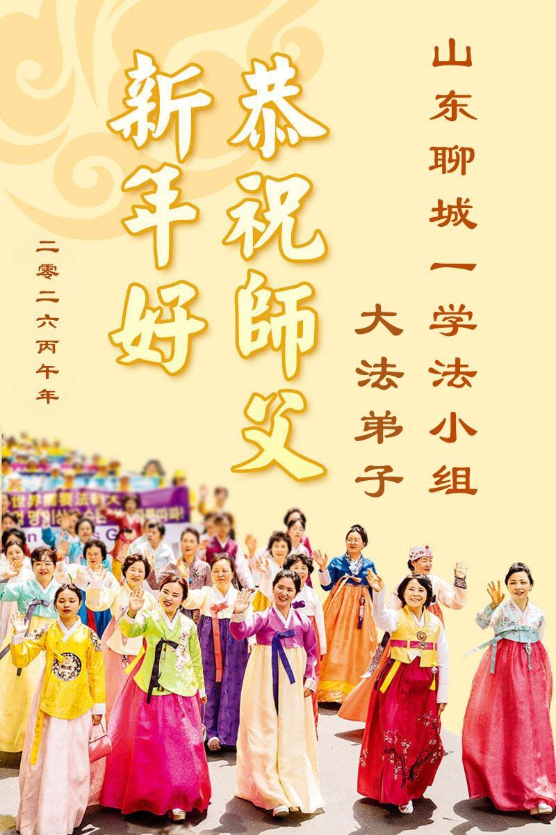 山东省招远市一企业青年职工携全家给大法师父拜年!