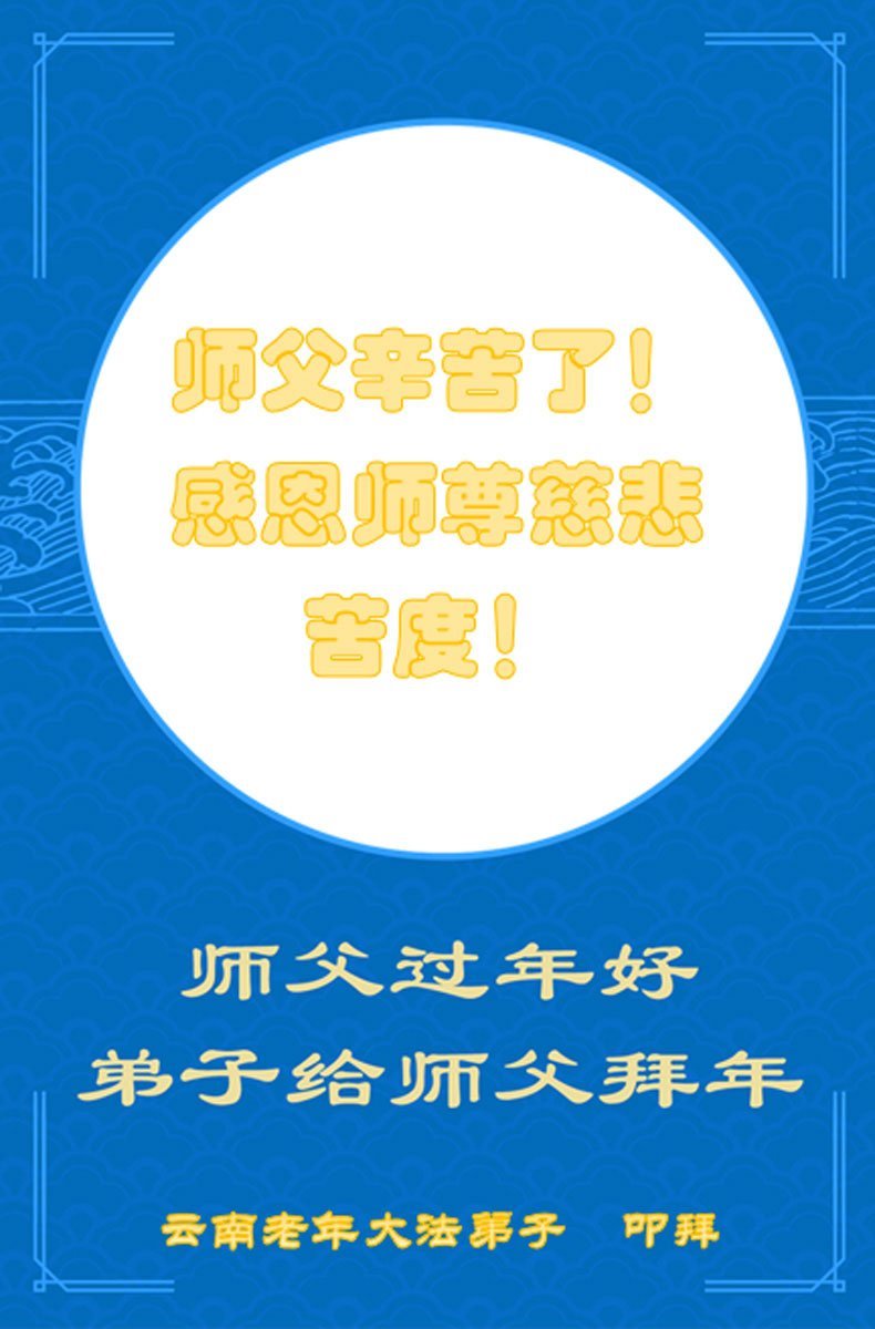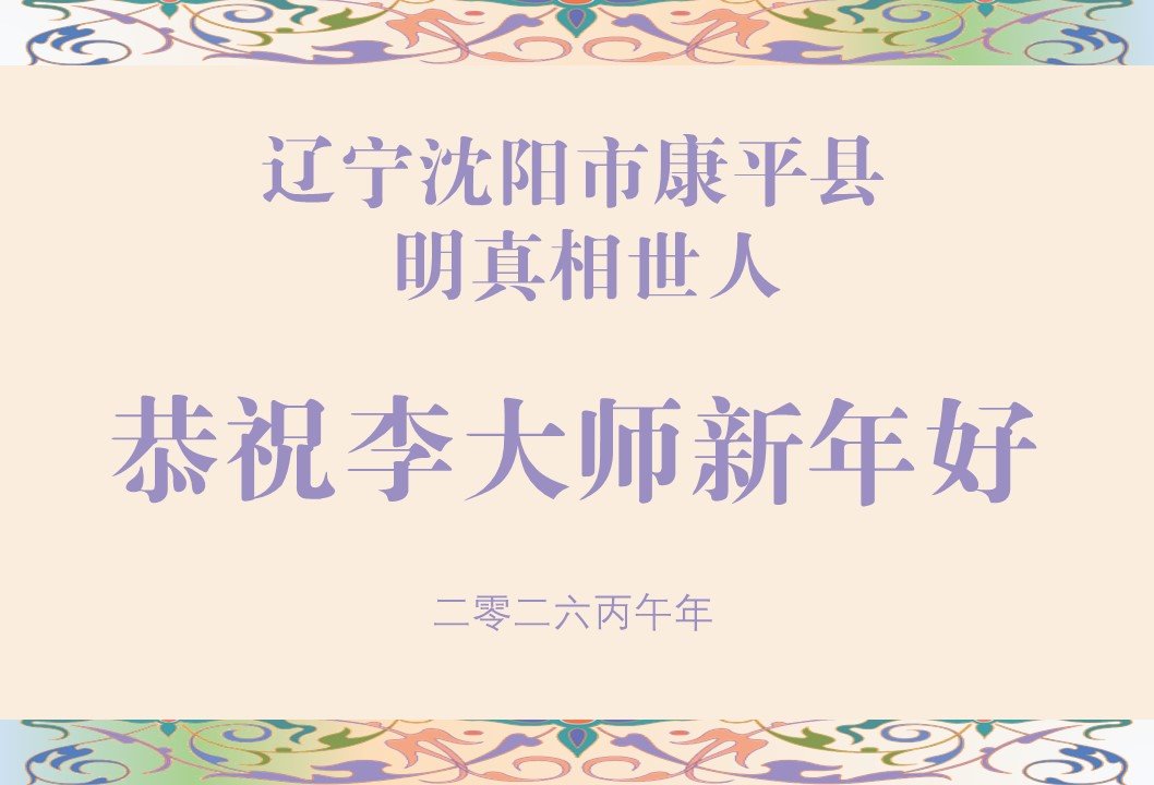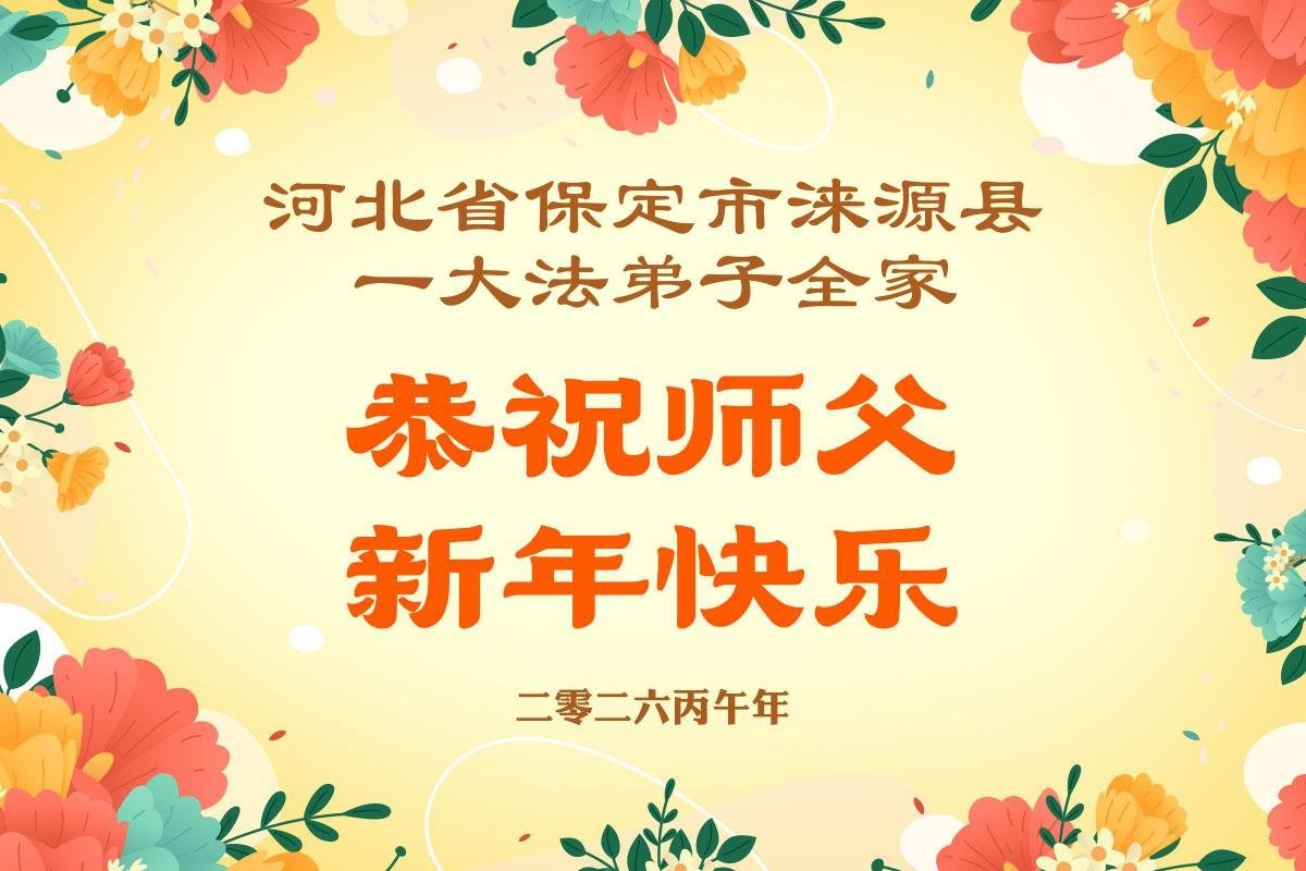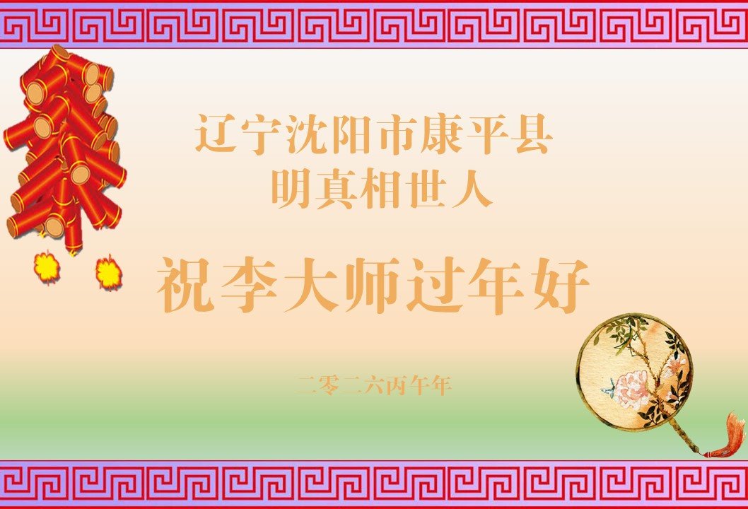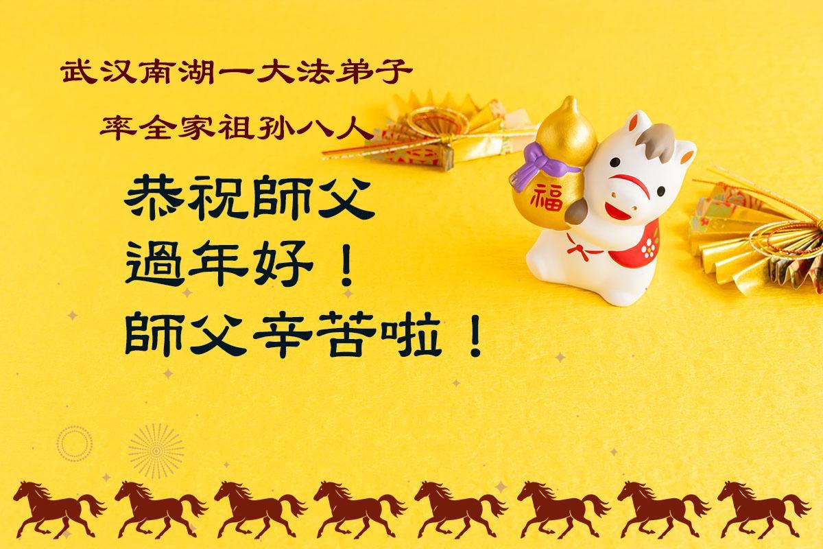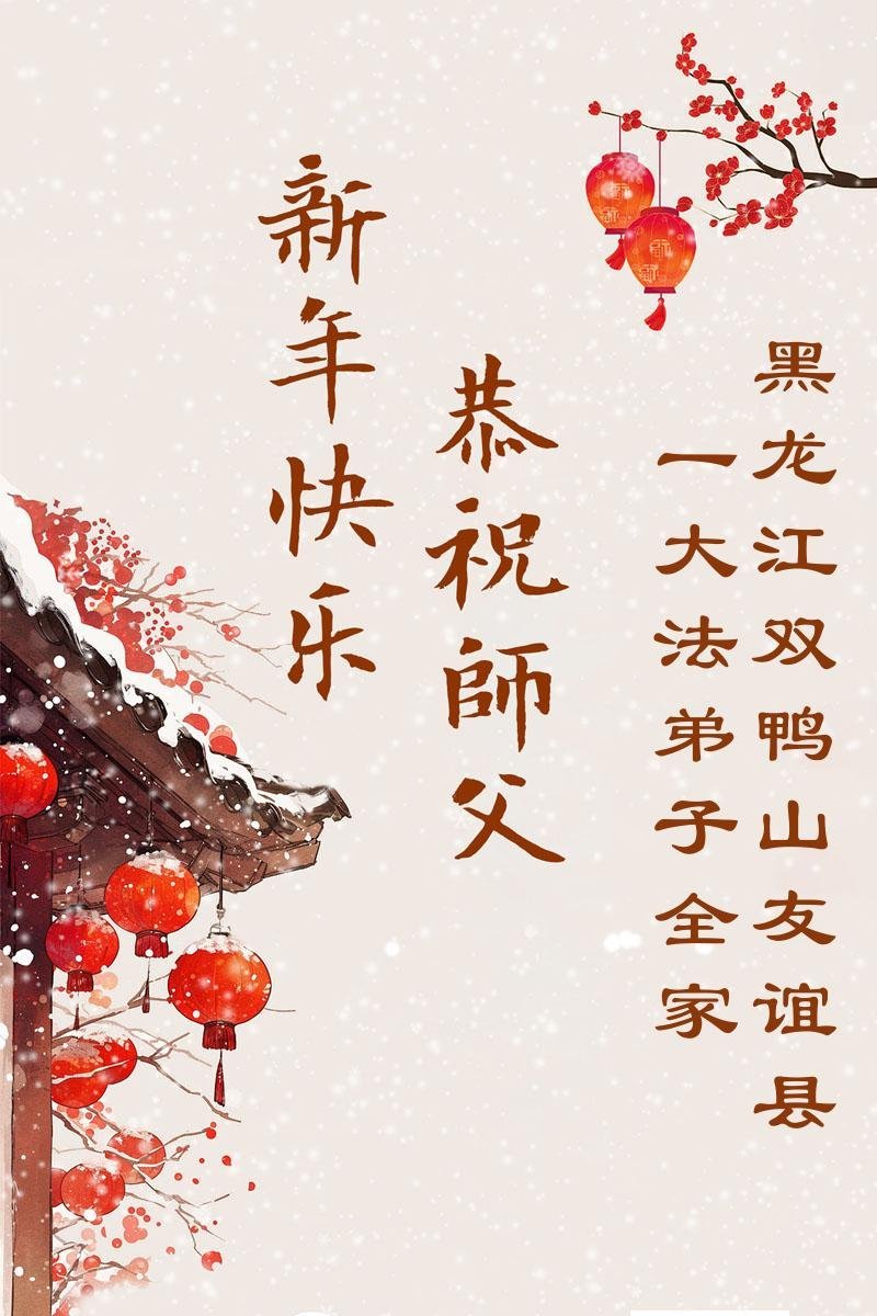 尊敬的李大师您好,您辛苦啦!在新年到来之际,我们一家给李大师拜个早年,祝李大师新年快乐!谢谢您的慈悲救度!