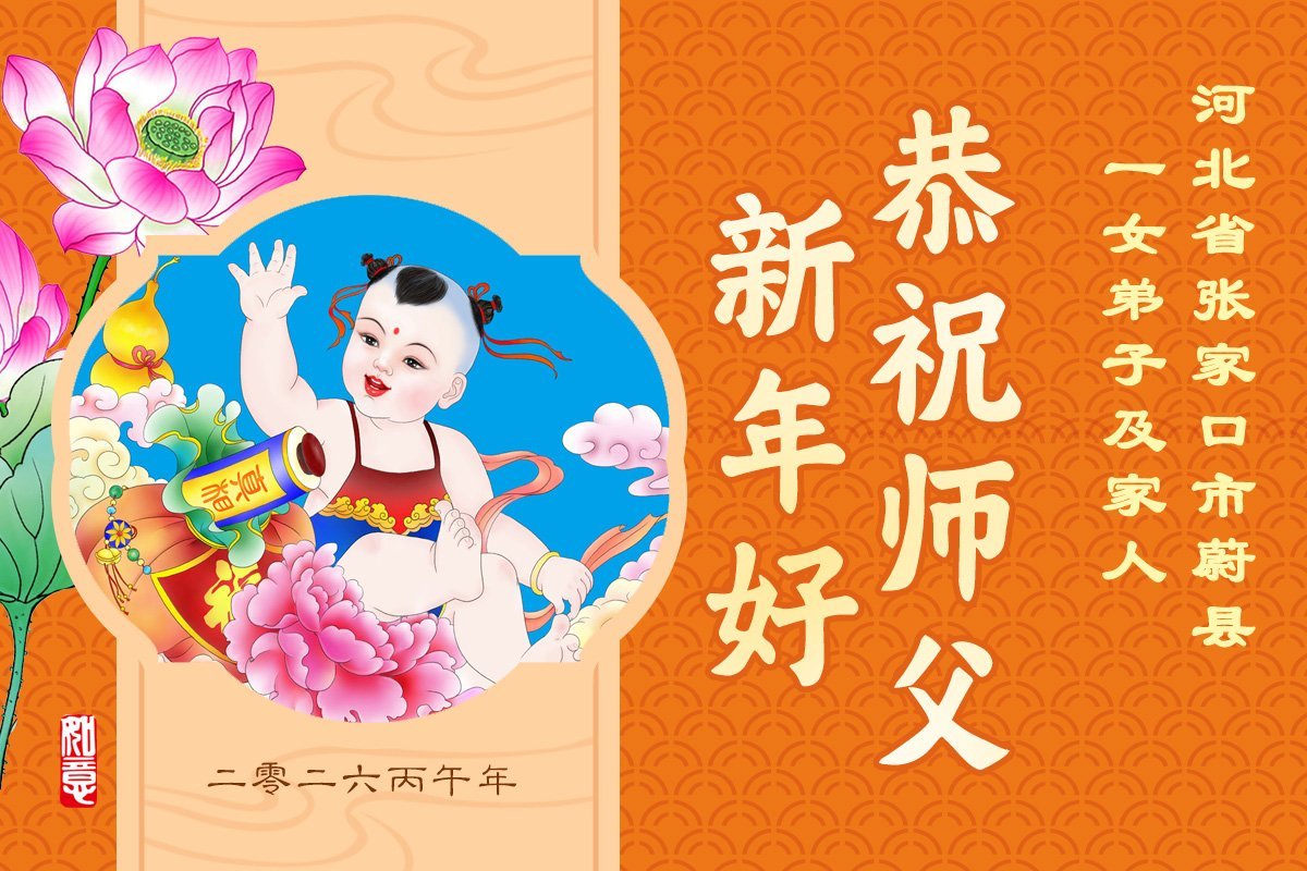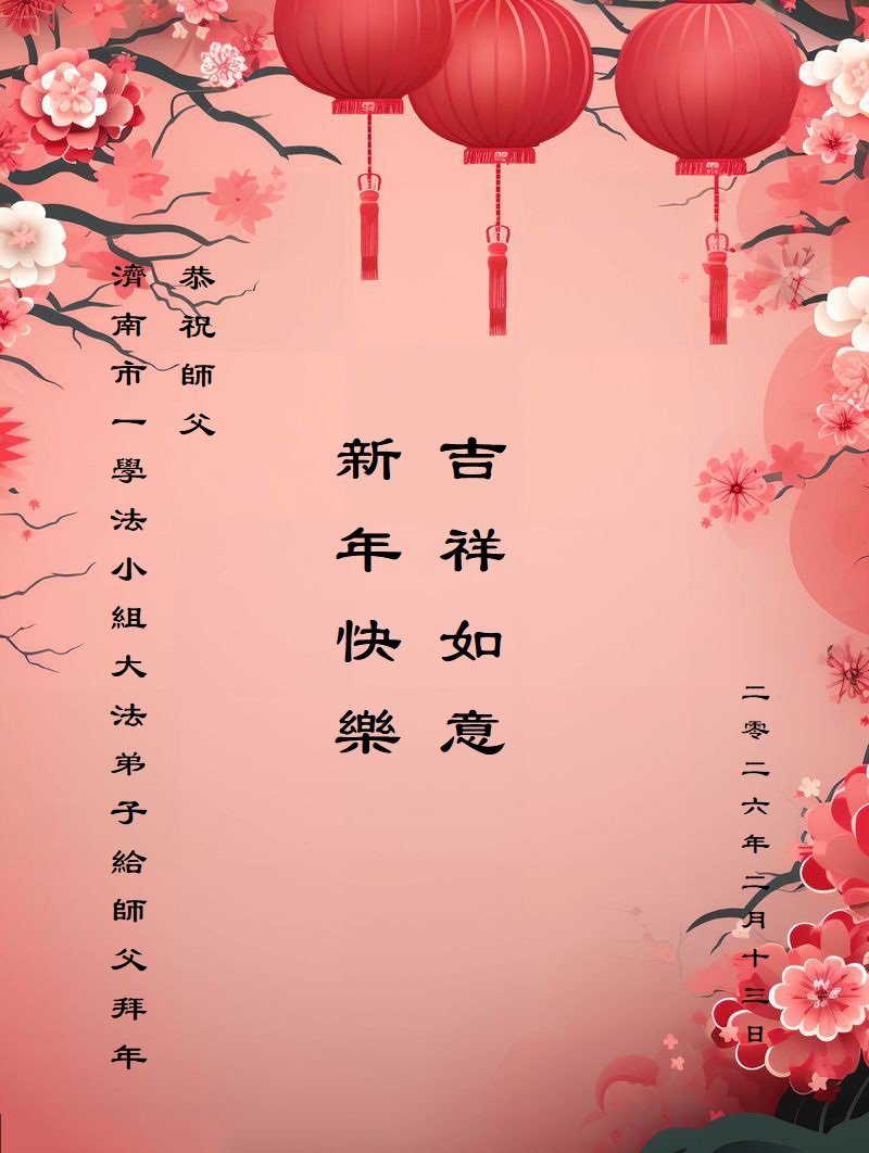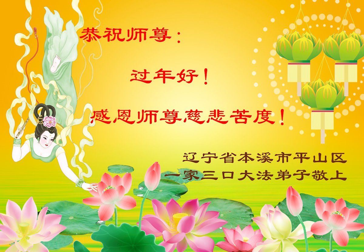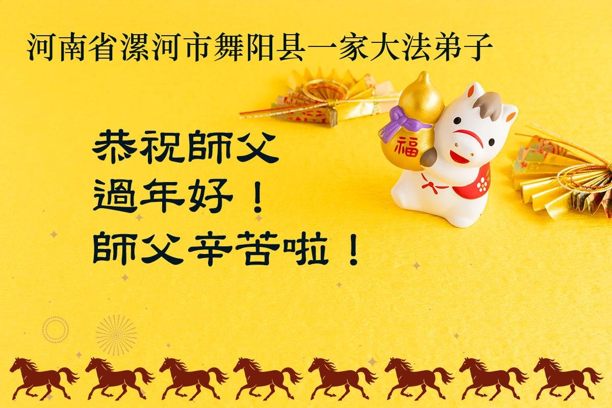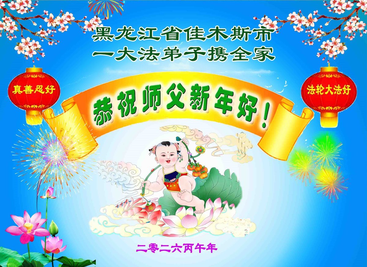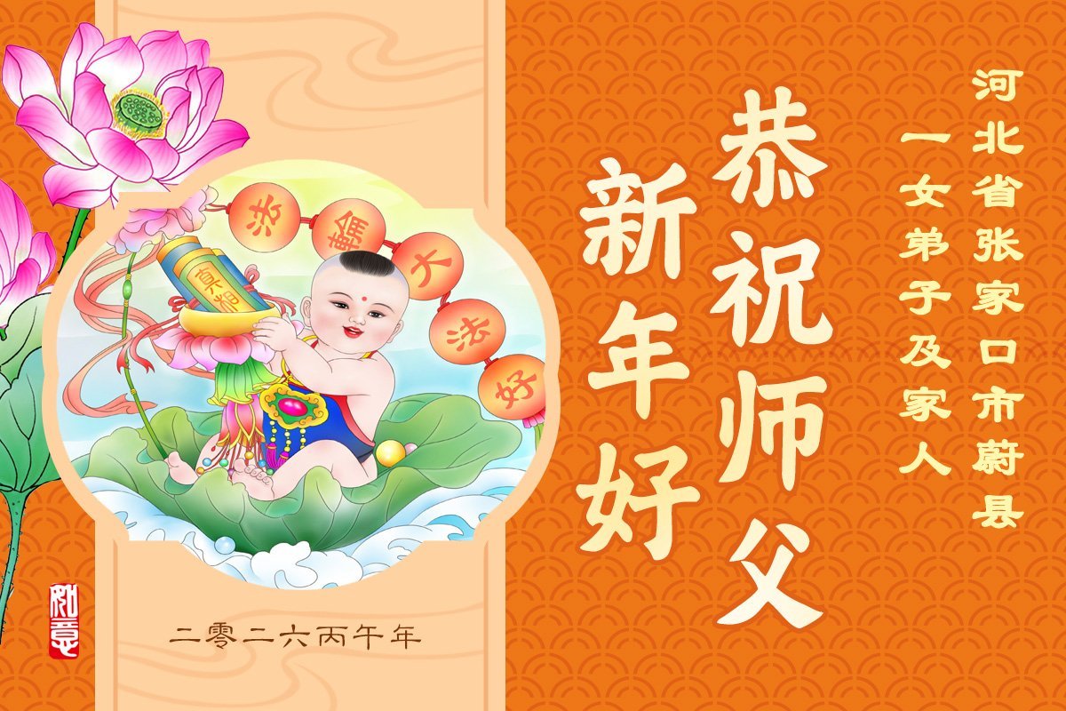尊敬的李大师您好,您辛苦啦!在新年到来之际,我们一家给李大师拜个早年,祝李大师新年快乐!谢谢您的慈悲救度!