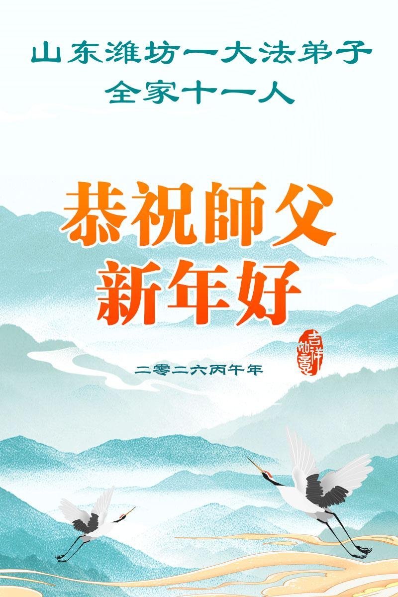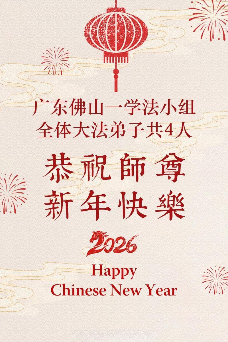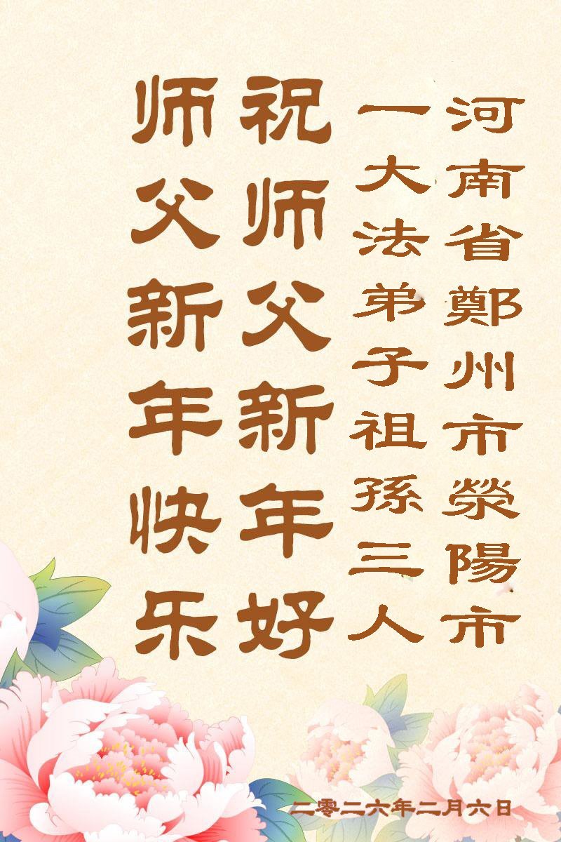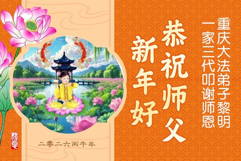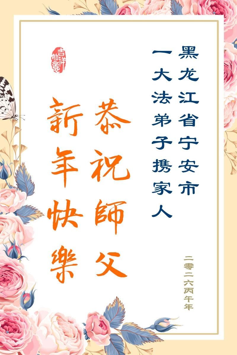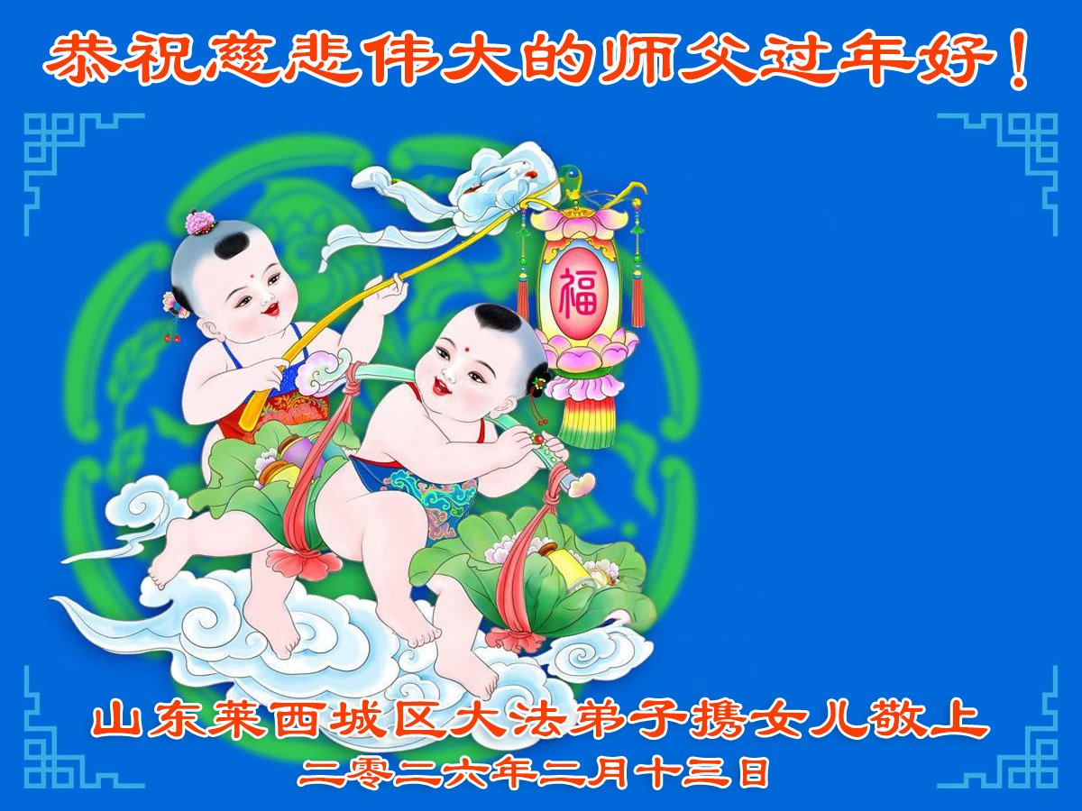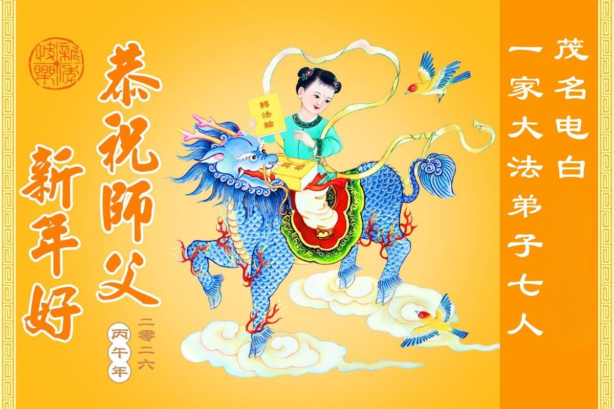 尊敬的李大师您好,您辛苦啦!在新年到来之际,我们一家给李大师拜个早年,祝李大师新年快乐!谢谢您的慈悲救度!